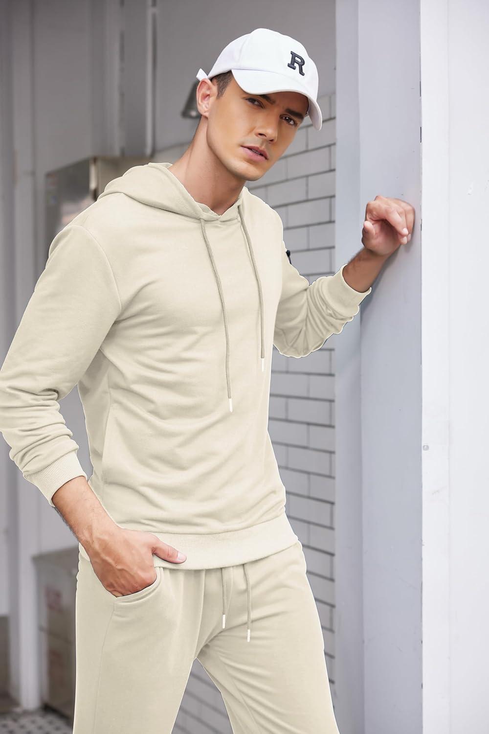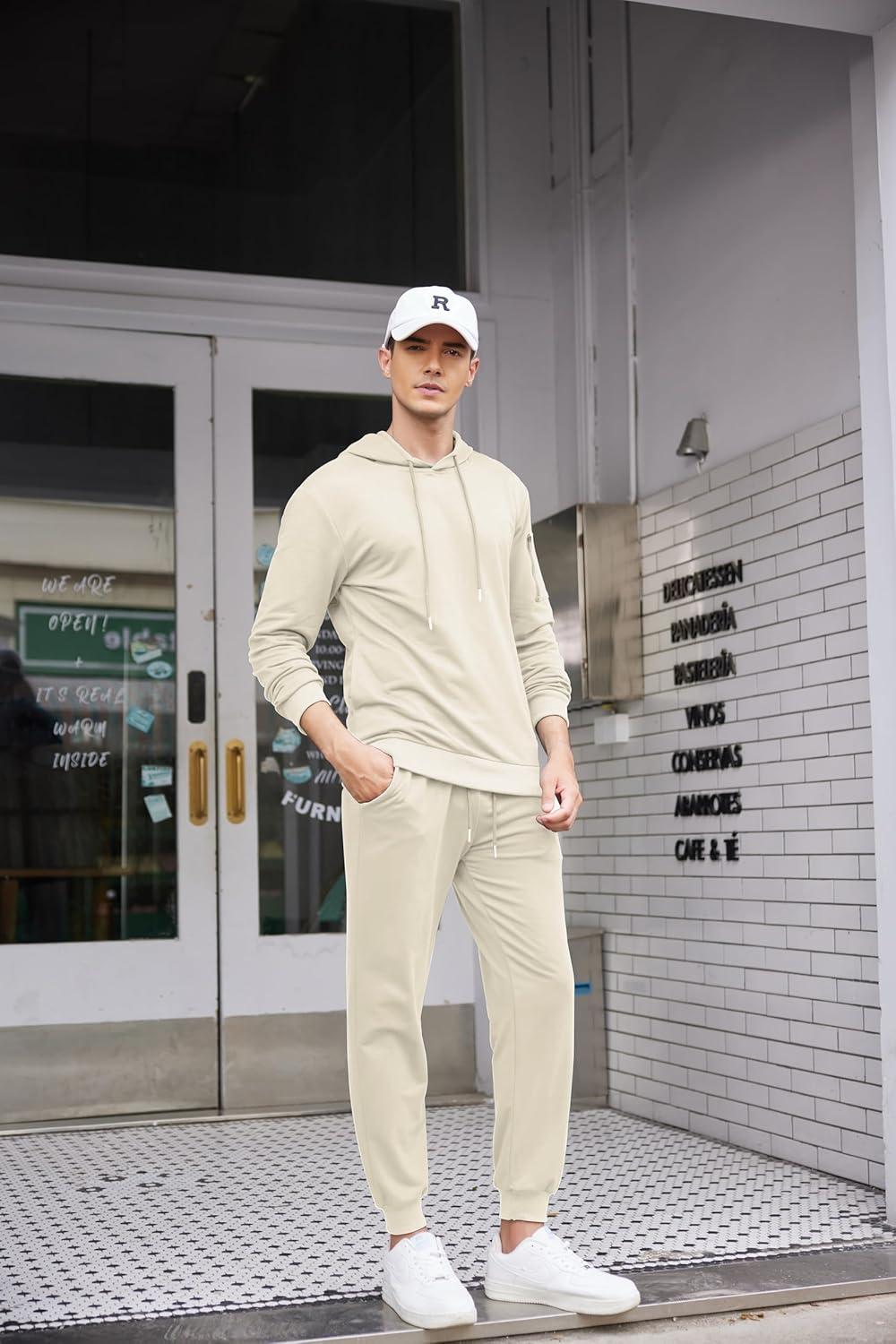 COOFANDY Men’s Tracksuit 2 Piece Hooded Athletic Sweatsuits Casual Running Jogging Sport Suit Sets(Beige)