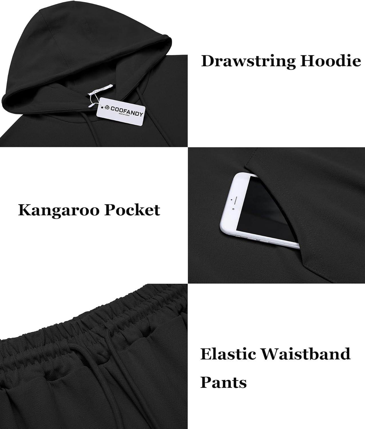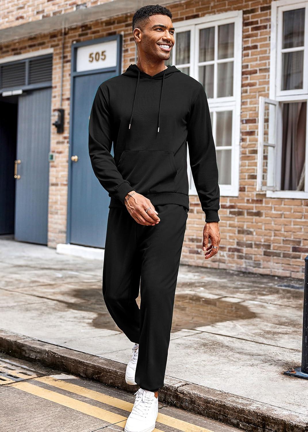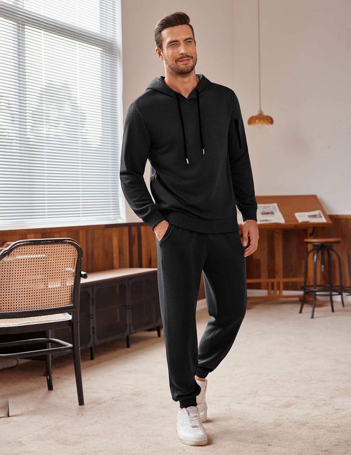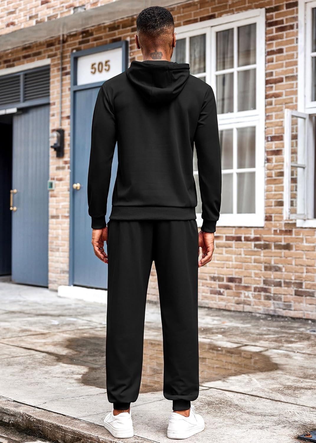 COOFANDY Men’s Tracksuit 2 Piece Hoodie Athletic Sweatsuits Casual Jogging Suit Sets(Black)