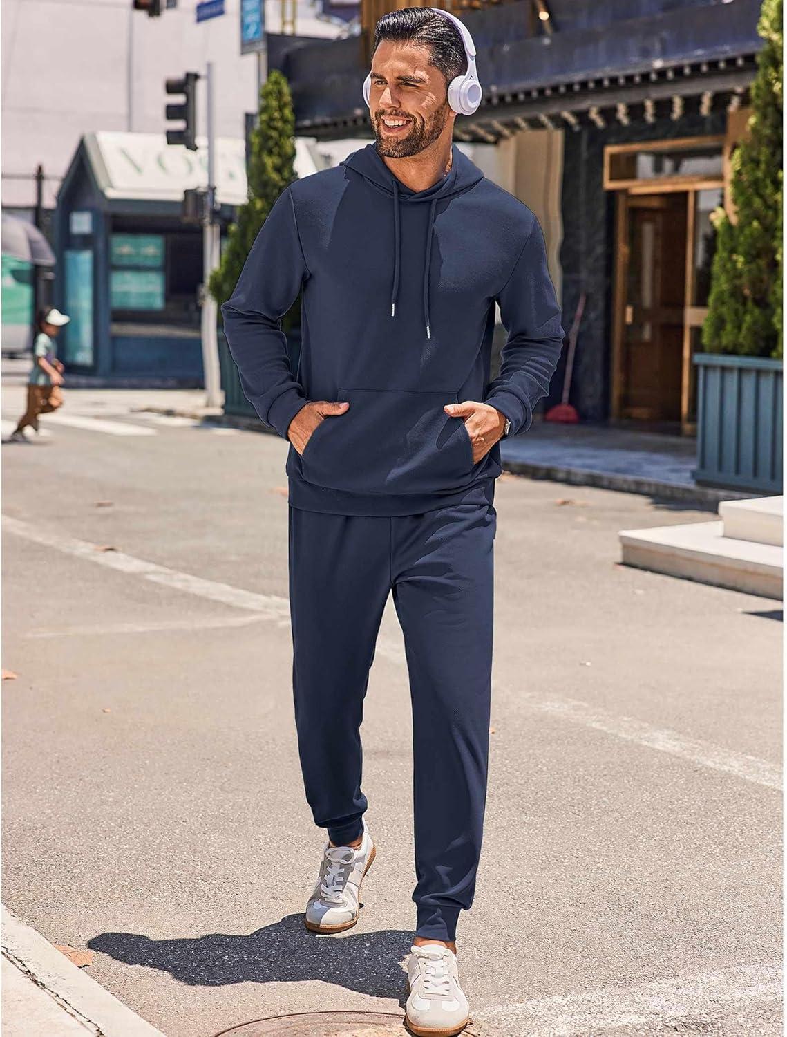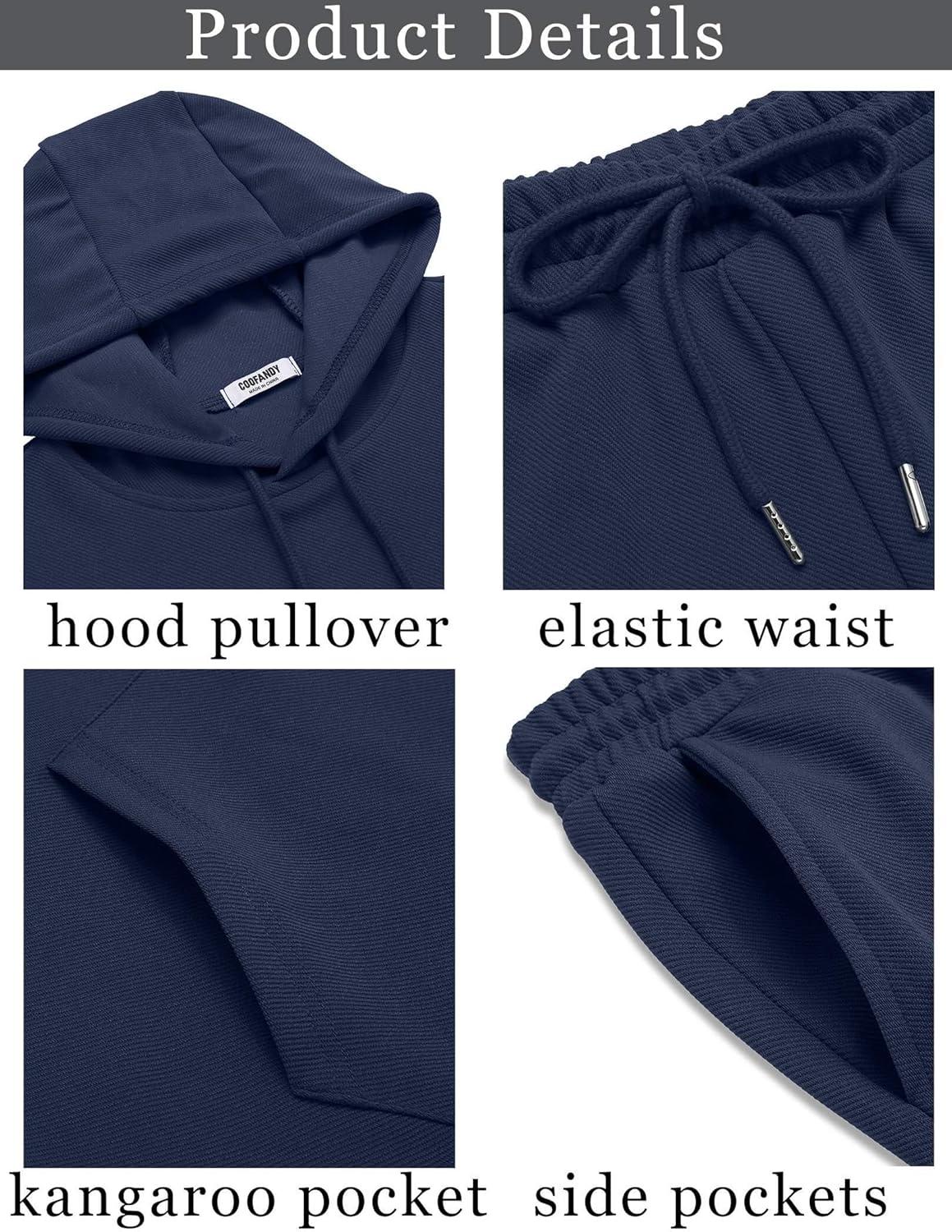 COOFANDY Men’s Tracksuit 2 Piece Hooded Athletic Sweatsuits Casual Running Jogging Sport Suit Sets(Navy Blue)