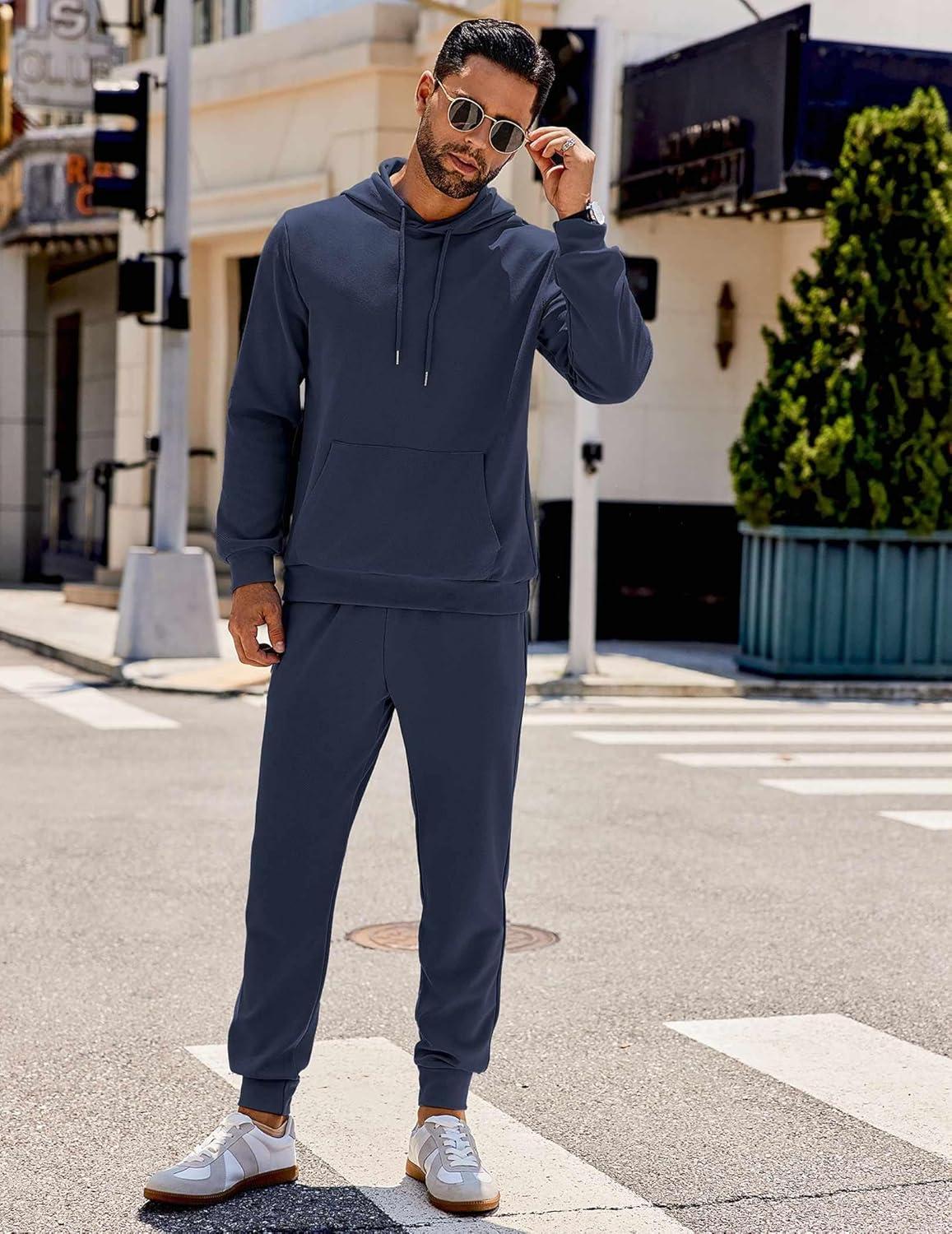 COOFANDY Men’s Tracksuit 2 Piece Hooded Athletic Sweatsuits Casual Running Jogging Sport Suit Sets(Grey Blue)