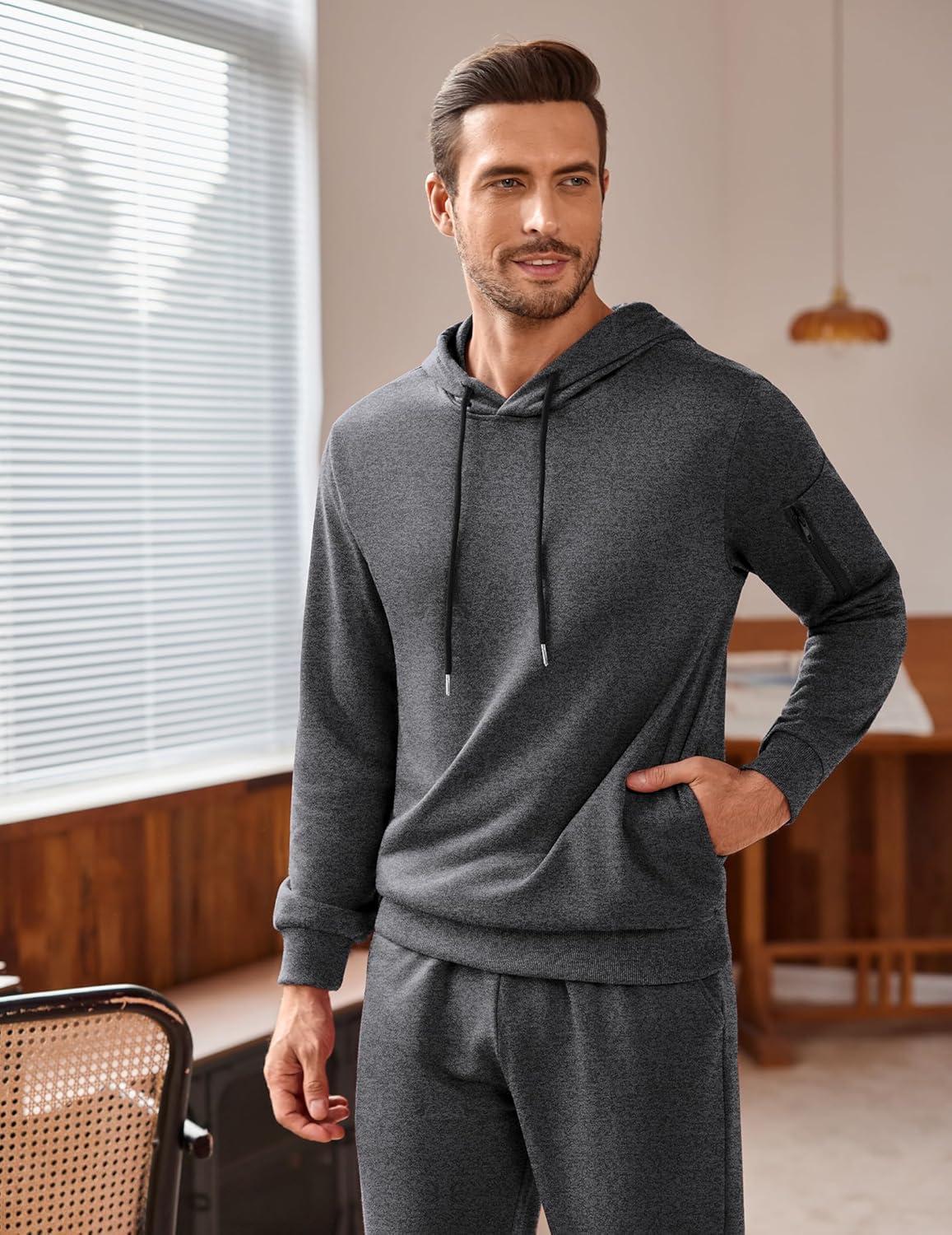 COOFANDY Men’s Tracksuit 2 Piece Hooded Athletic Sweatsuits Casual Running Jogging Sport Suit Sets(Grey Heather)