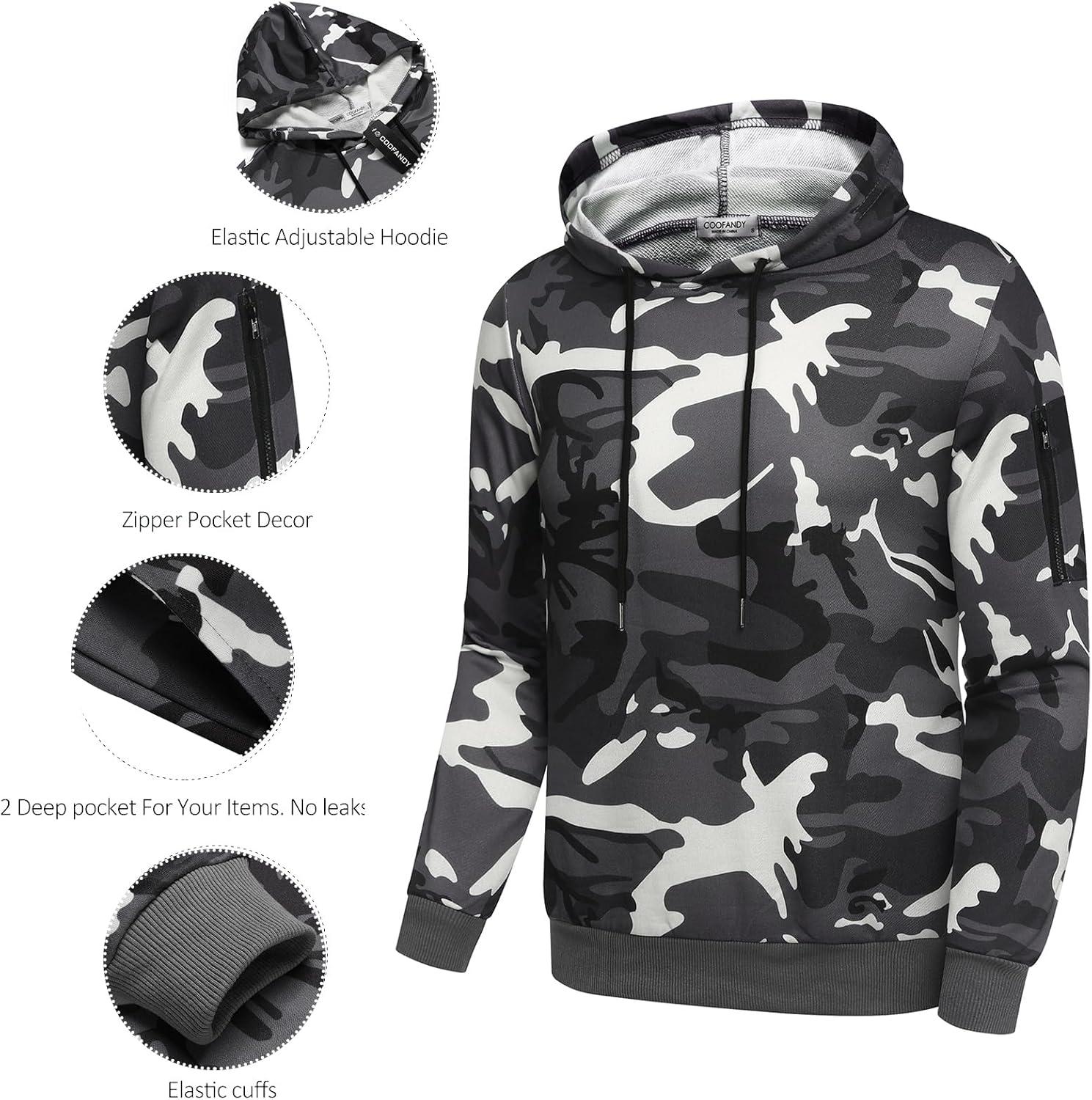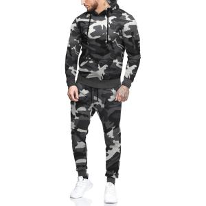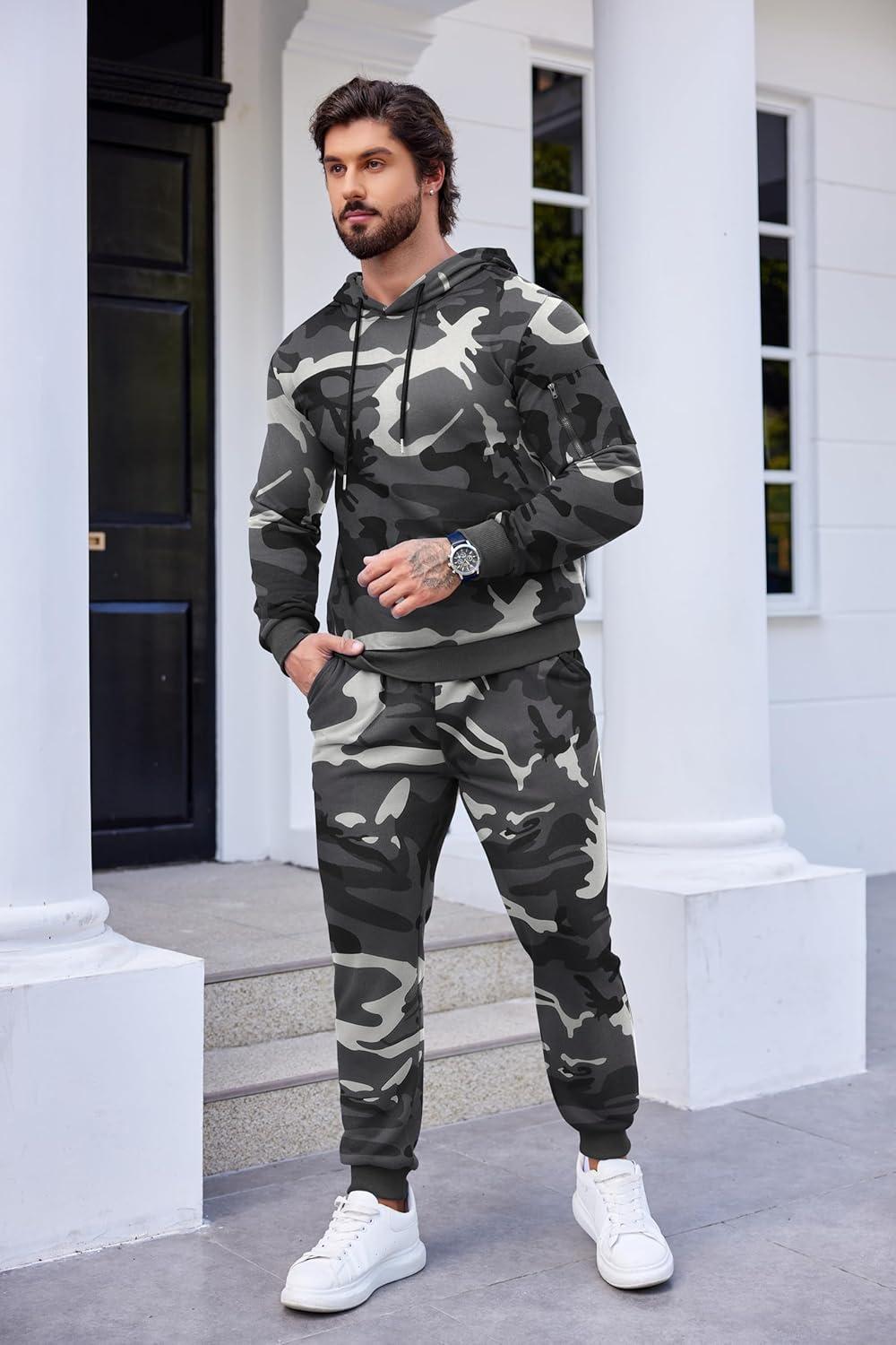 COOFANDY Men’s Tracksuit 2 Piece Hooded Athletic Sweatsuits Casual Running Jogging Sport Suit Sets(Grey Camo)