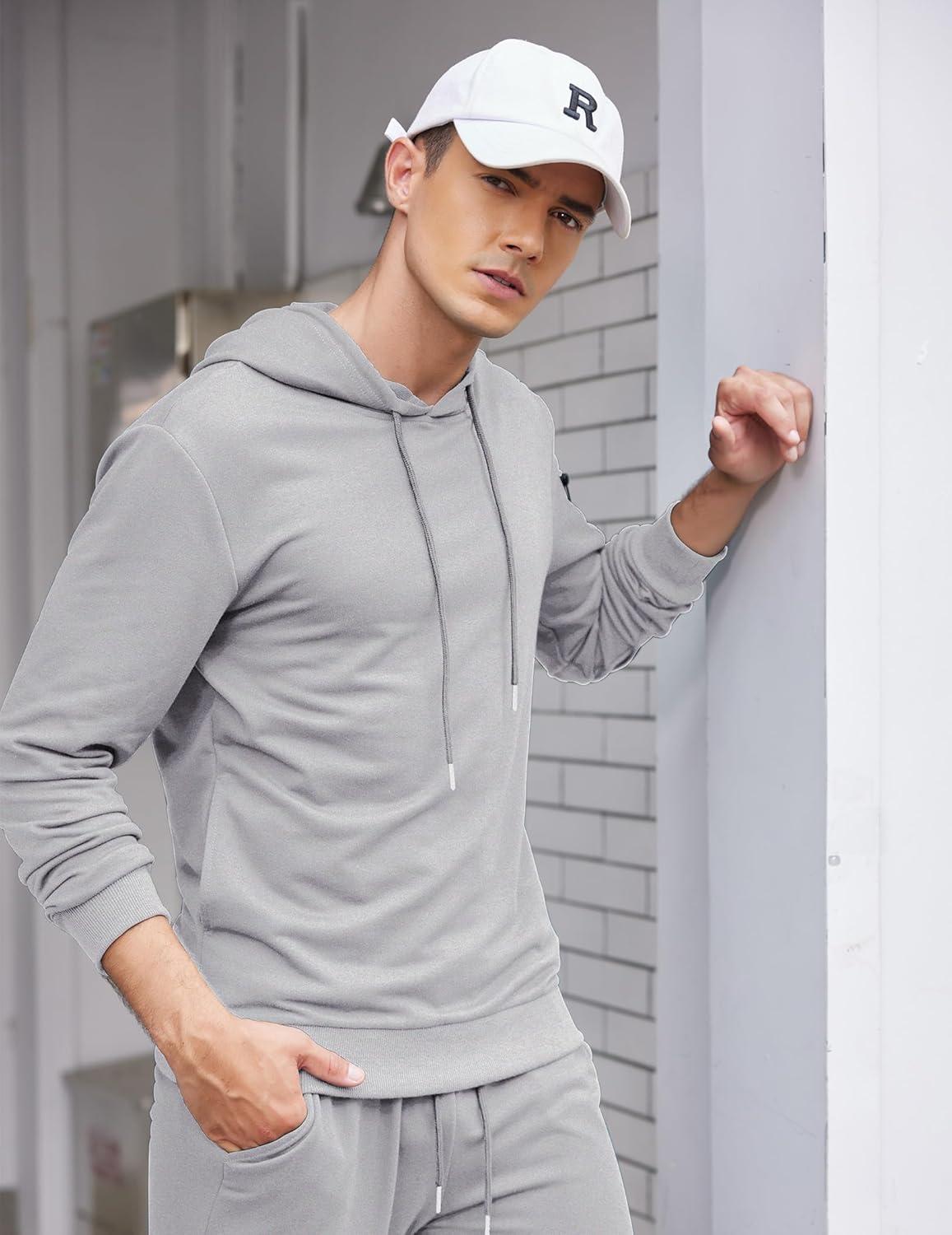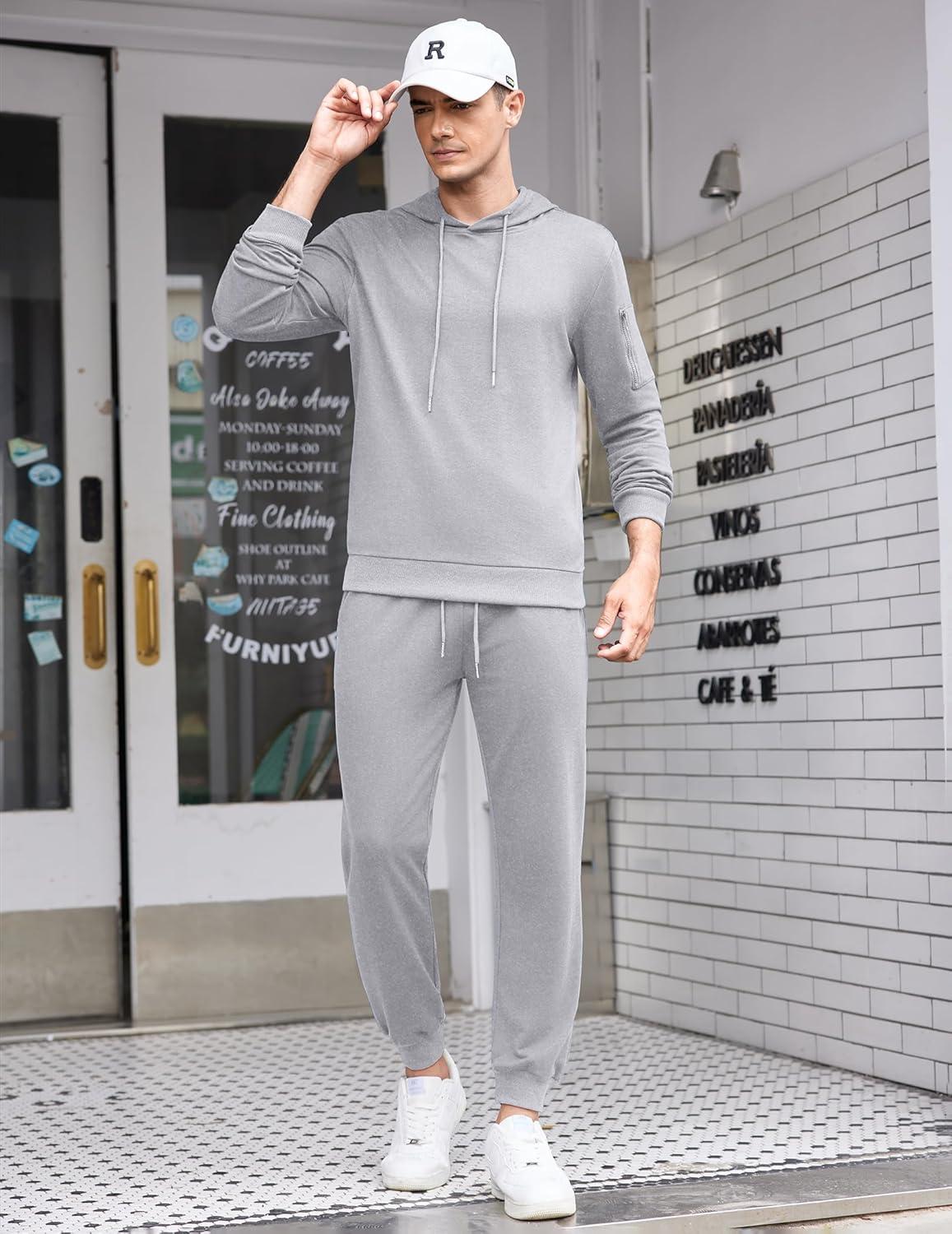 COOFANDY Men’s Tracksuit 2 Piece Hooded Athletic Sweatsuits Casual Running Jogging Sport Suit Sets(Light Grey)