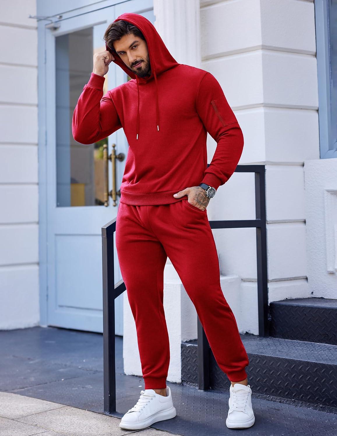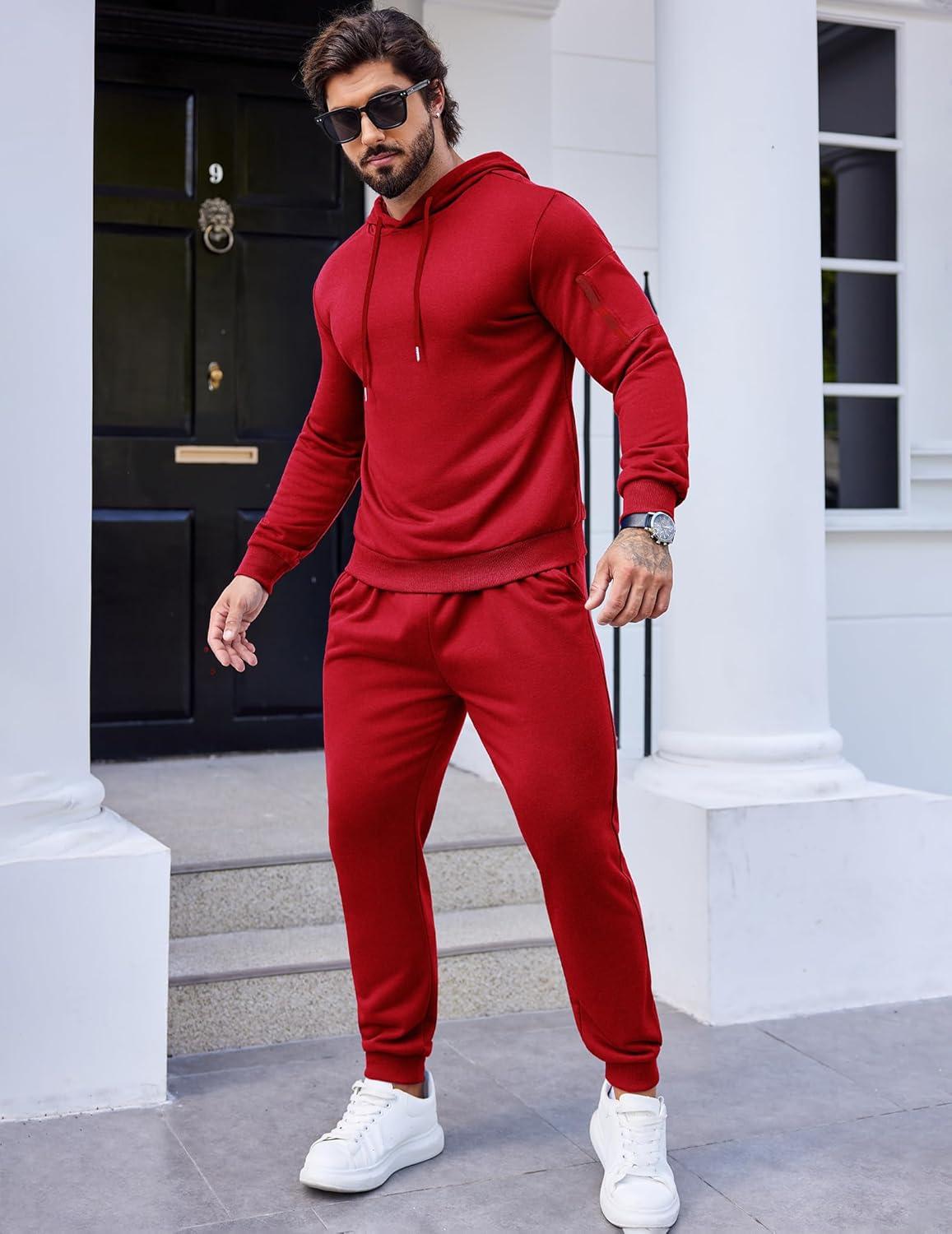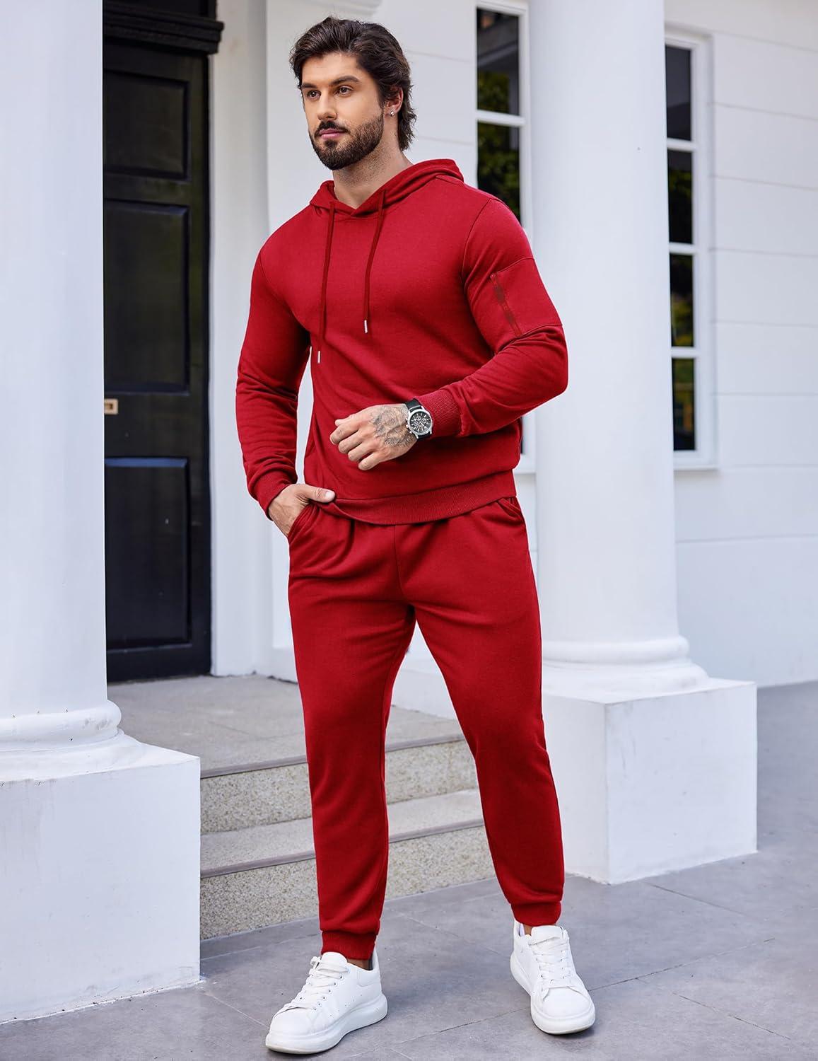 COOFANDY Men’s Tracksuit 2 Piece Hooded Athletic Sweatsuits Casual Running Jogging Sport Suit Sets(Red)
