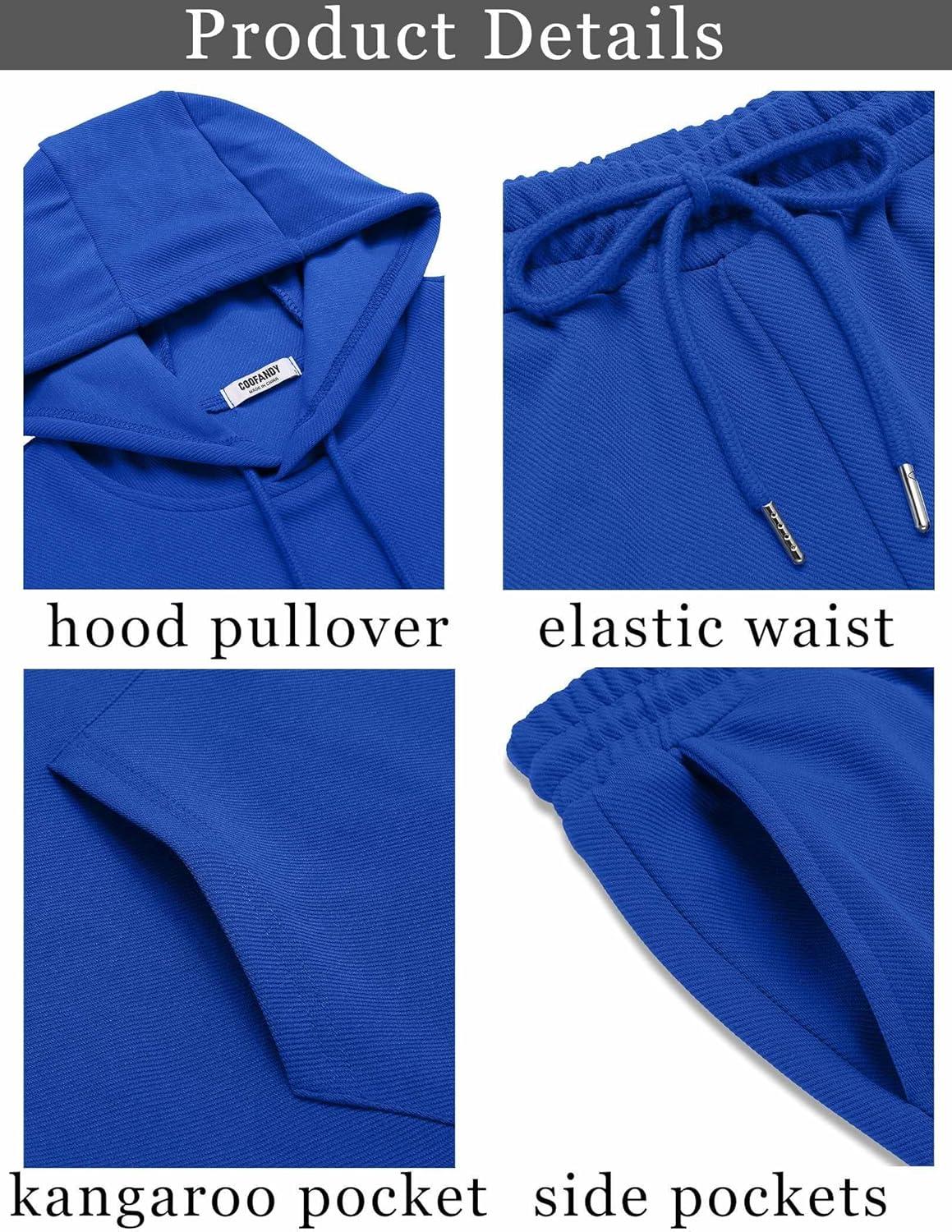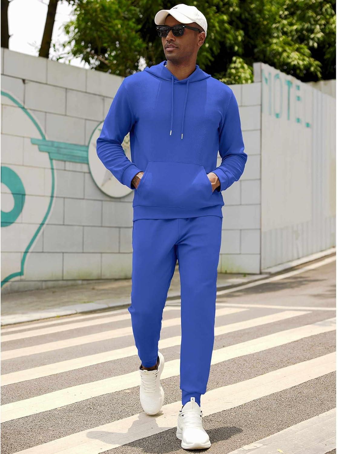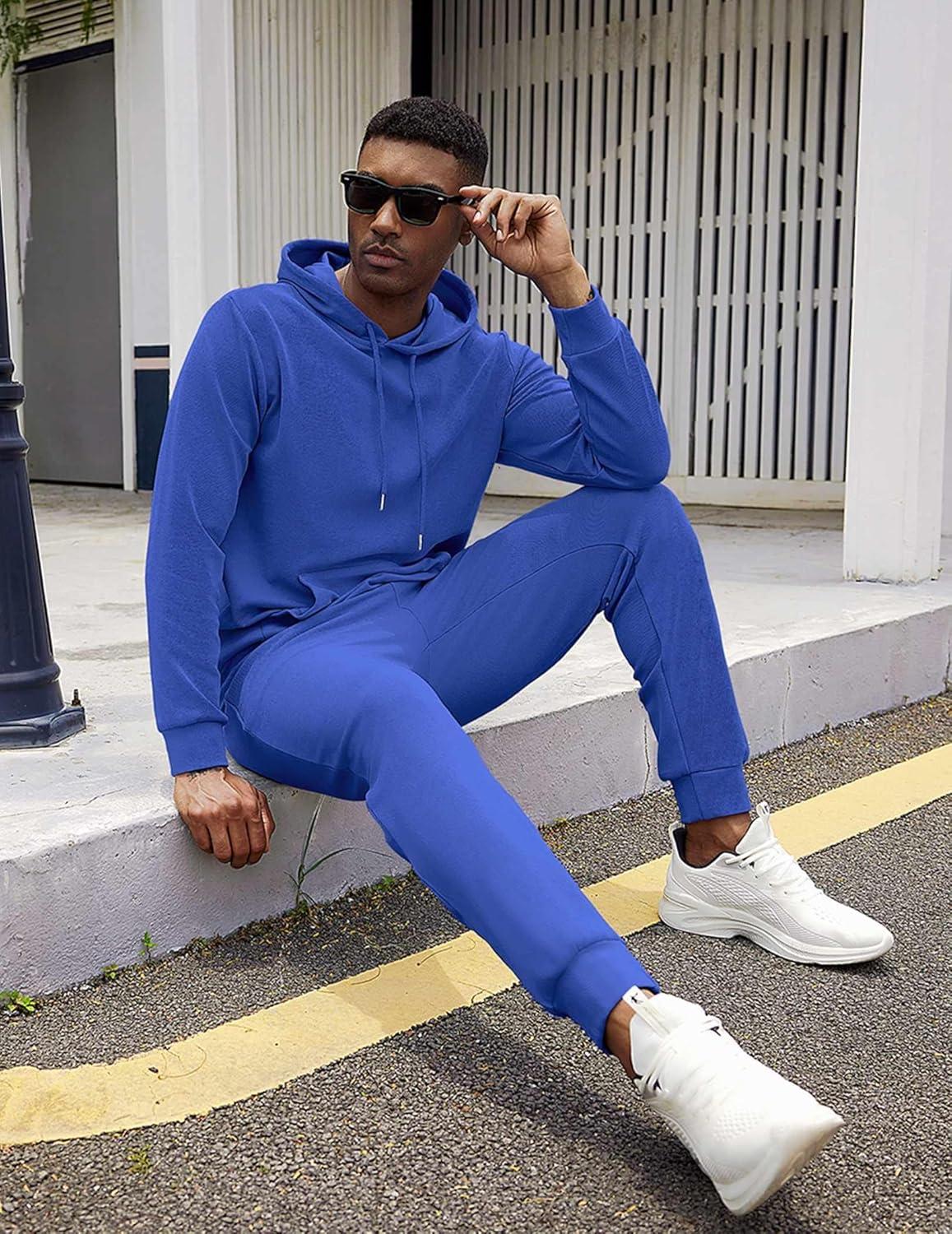 COOFANDY Men’s Tracksuit 2 Piece Hooded Athletic Sweatsuits Casual Running Jogging Sport Suit Sets(Royal Blue)