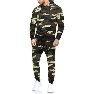 COOFANDY Men’s Tracksuit 2 Piece Hooded Athletic Sweatsuits Casual Running Jogging Sport Suit Sets(Green Camo)