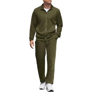 COOFANDY Mens 2 Piece Tracksuit Casual Sweatsuits Full Zip Track Suits Jogging Athletic Suit Sets(Army Green)