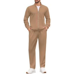COOFANDY Mens 2 Piece Tracksuit Casual Sweatsuits Full Zip Track Suits Jogging Athletic Suit Sets(Camel/Khaki/Tan)