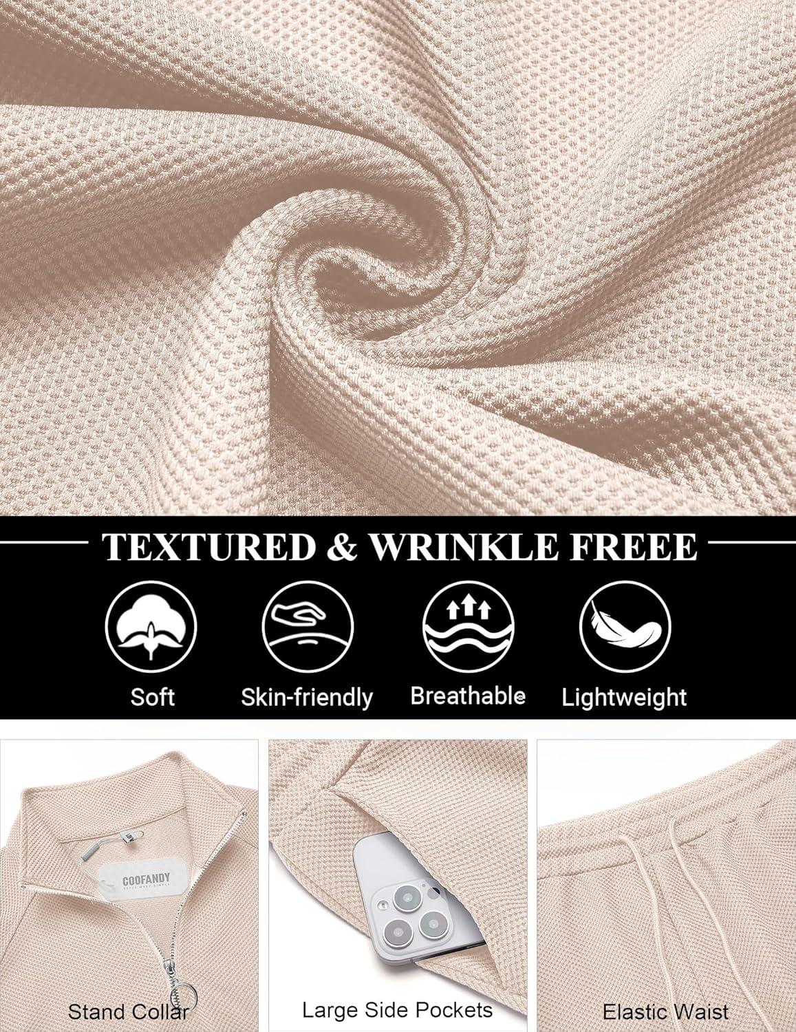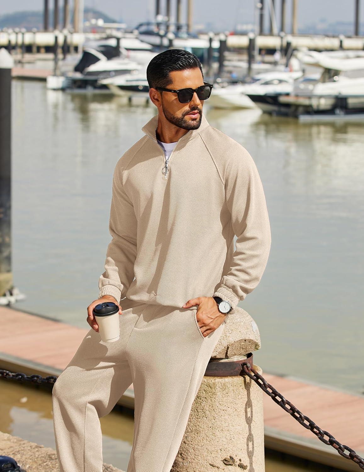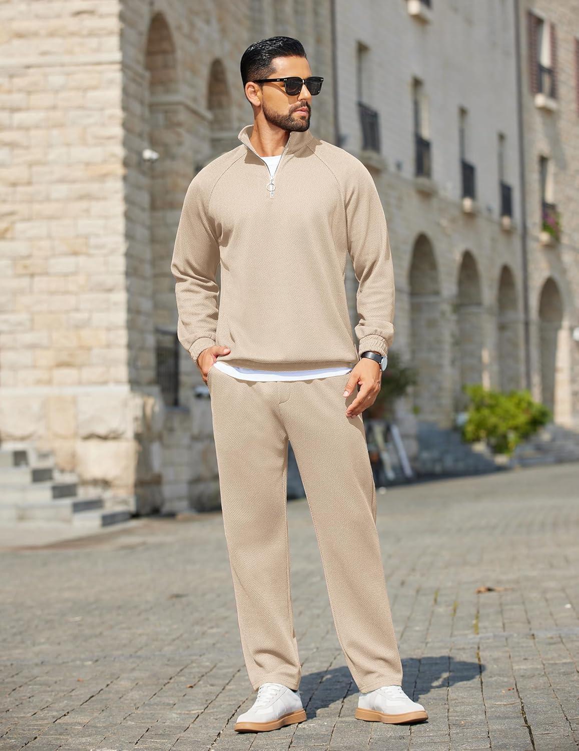 COOFANDY Men’s Tracksuit 2 Piece Relaxed Fit Half-zip Sweatsuits Athletic Running Jogging Suit Sets(Light Khaki)