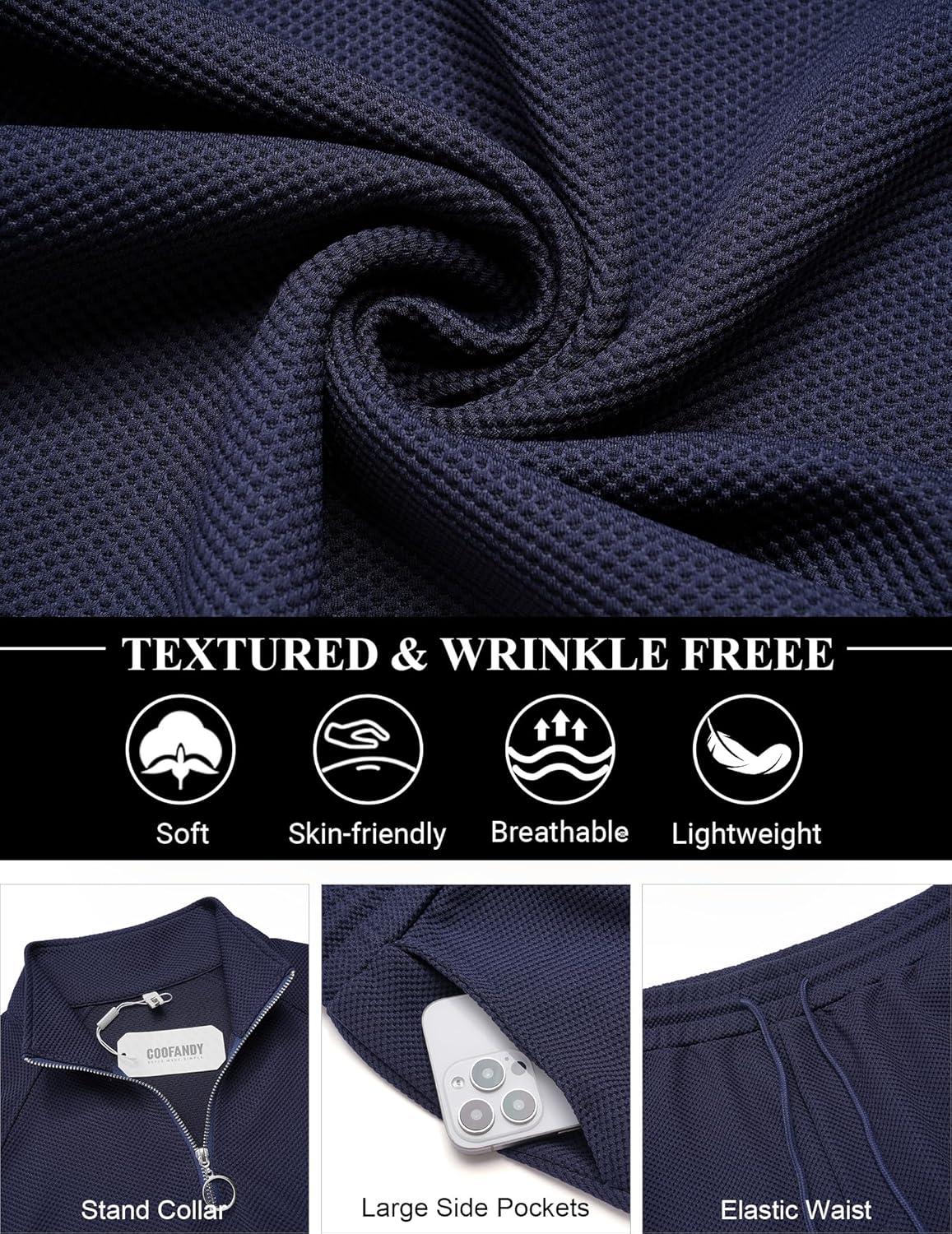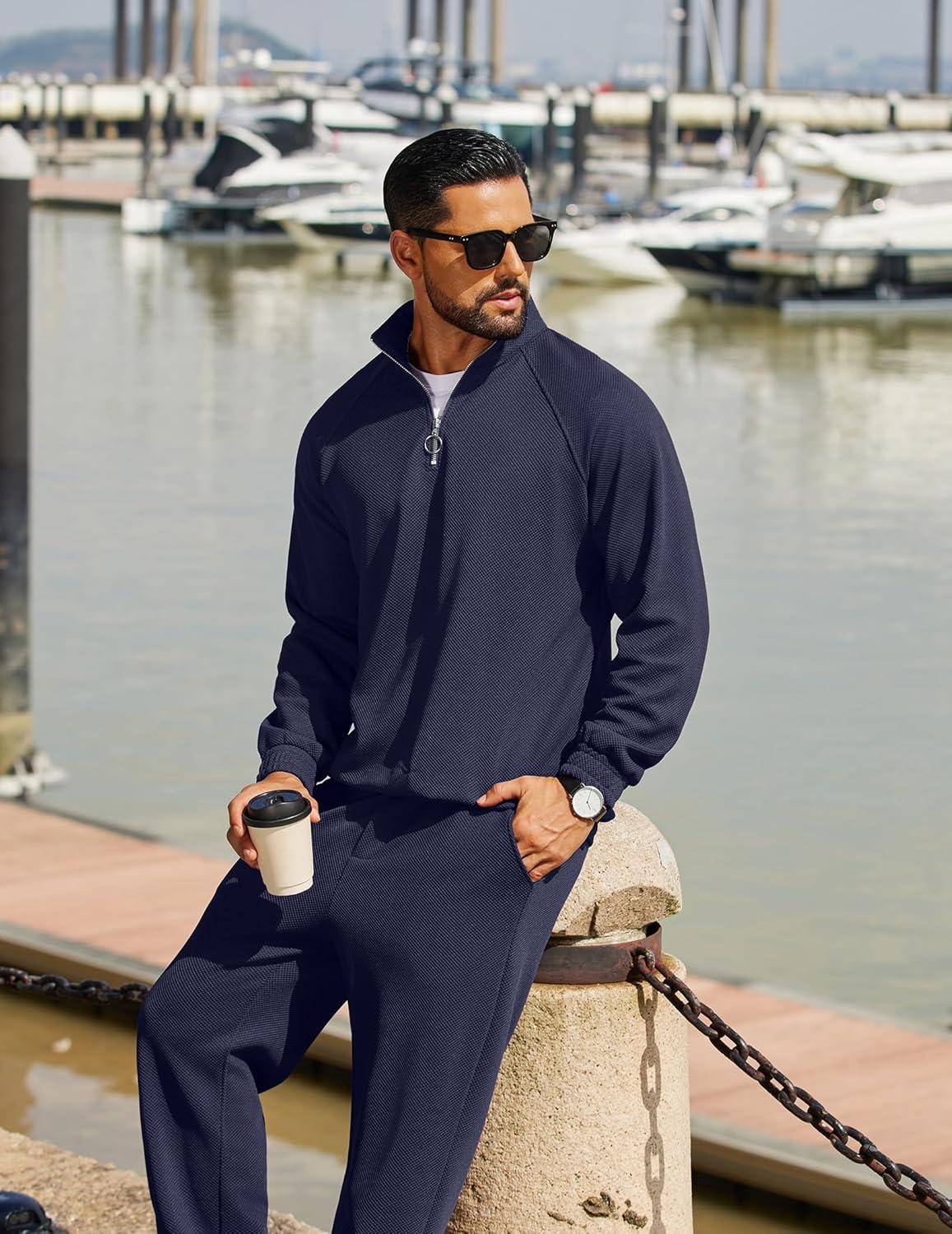 COOFANDY Men’s Tracksuit 2 Piece Relaxed Fit Half-zip Sweatsuits Athletic Running Jogging Suit Sets(Navy Blue)
