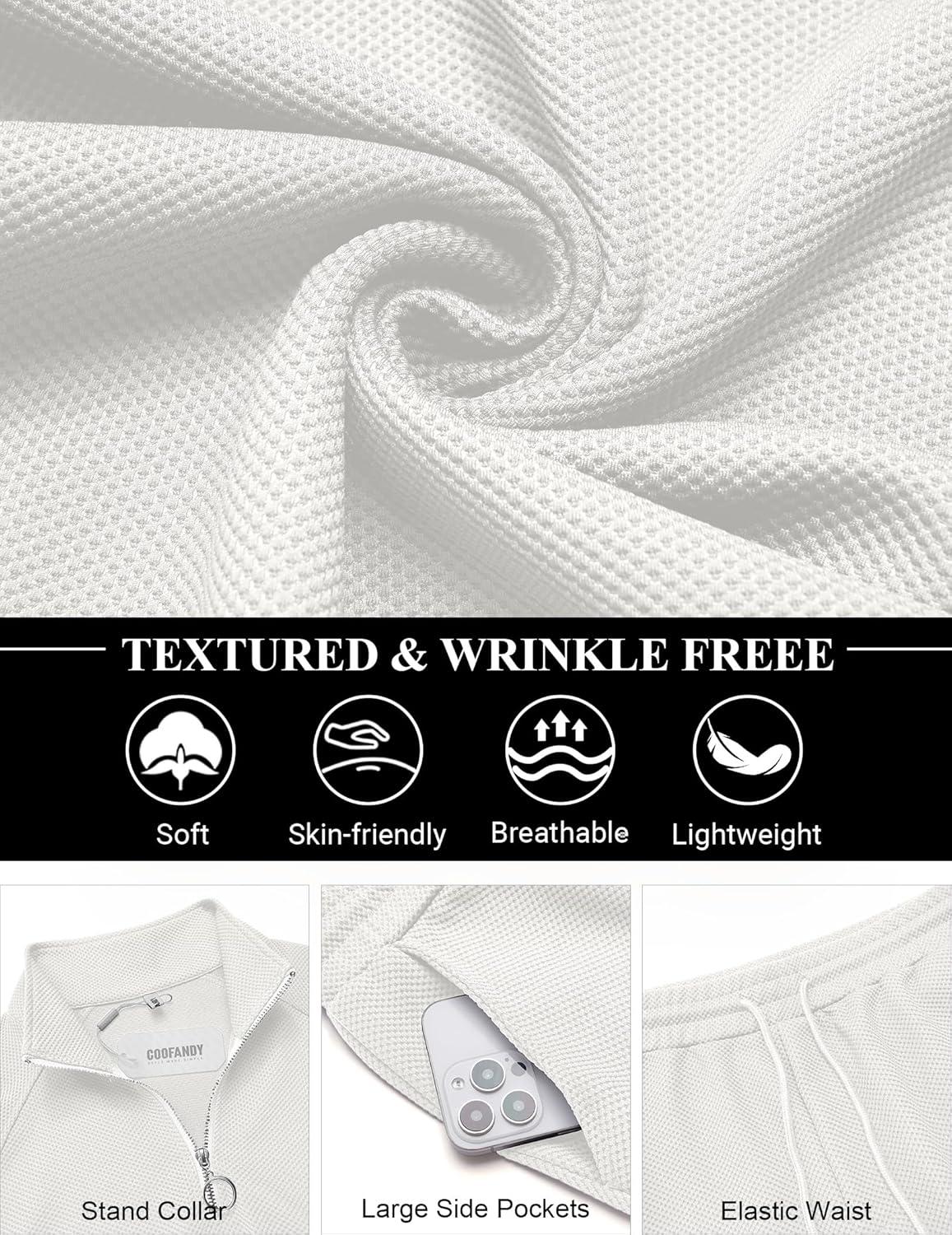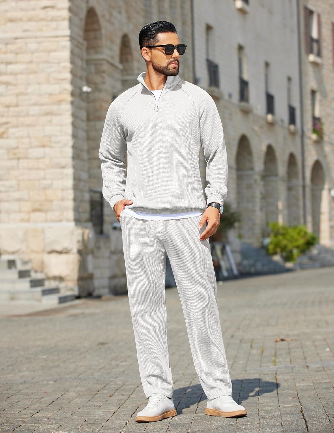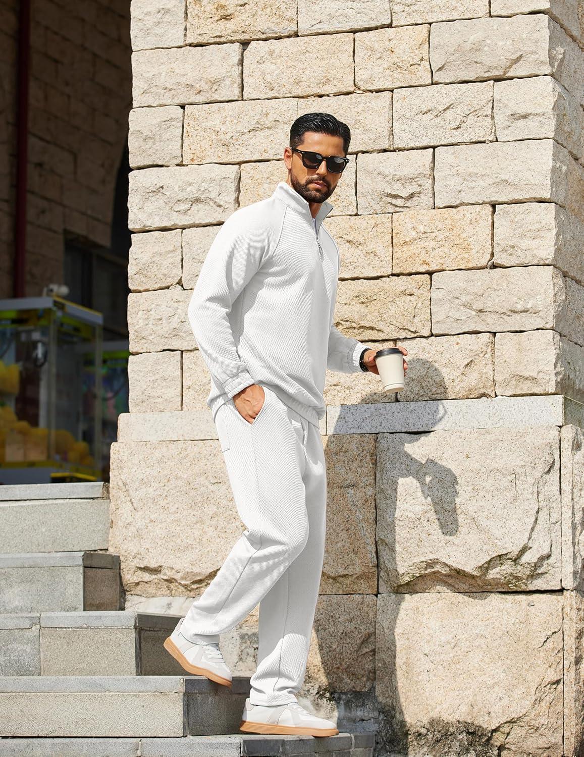 COOFANDY Men’s Tracksuit 2 Piece Relaxed Fit Half-zip Sweatsuits Athletic Running Jogging Suit Sets(White)