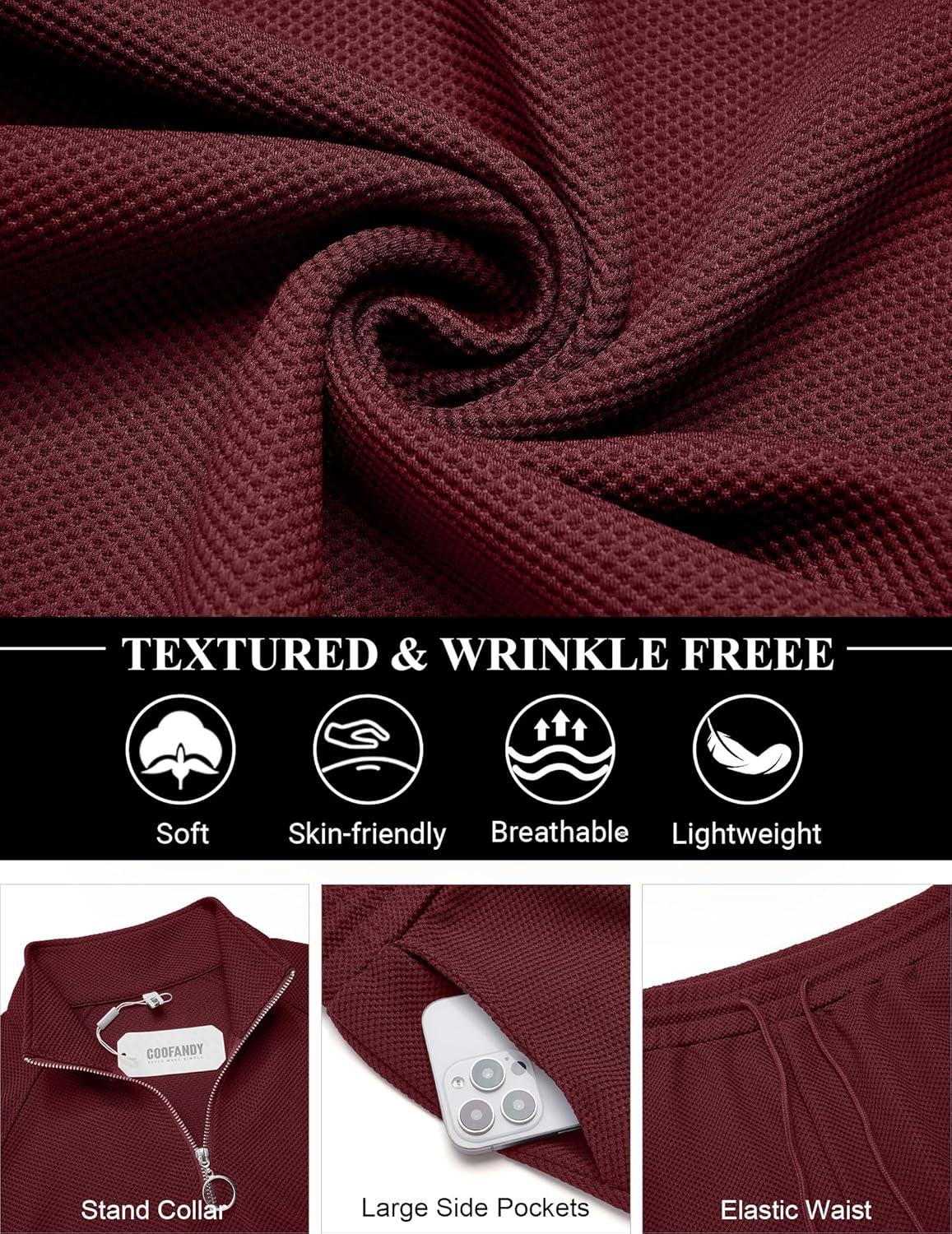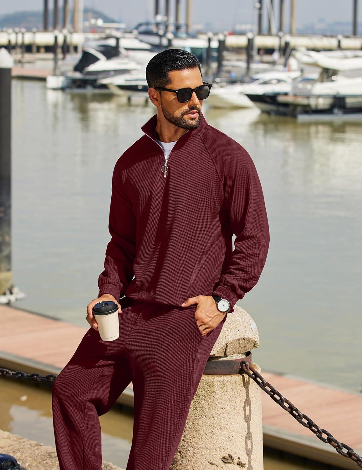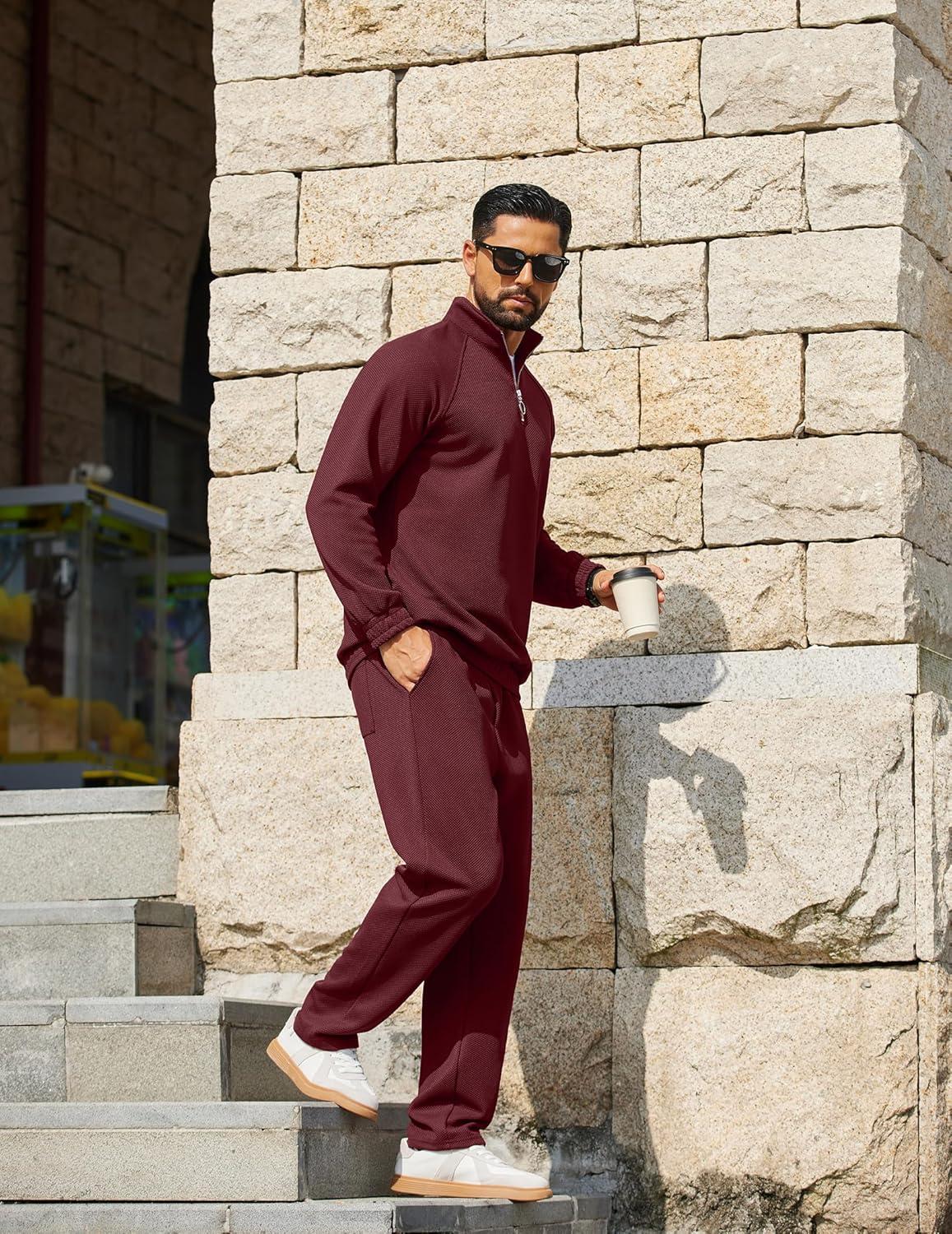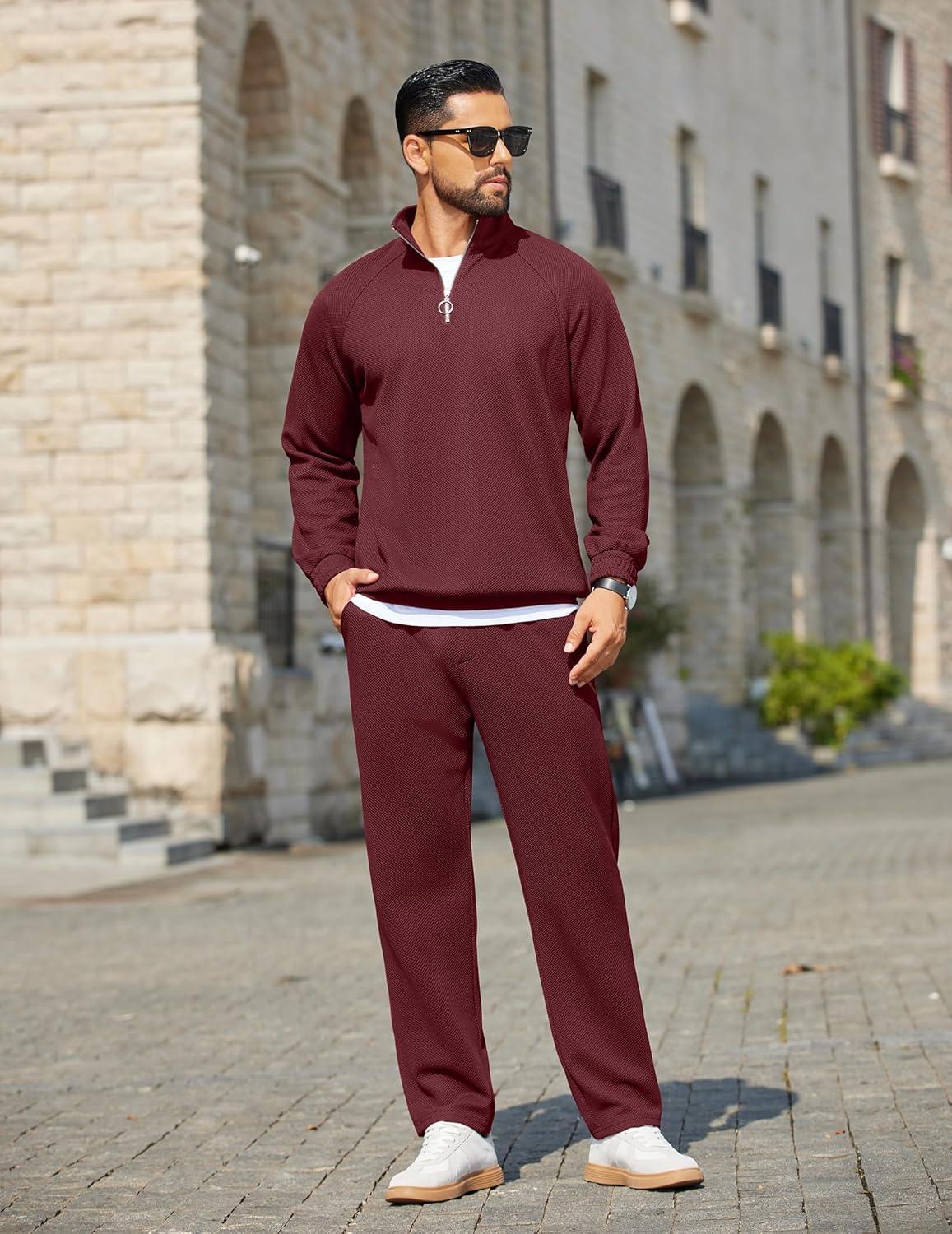 COOFANDY Men’s Tracksuit 2 Piece Relaxed Fit Half-zip Sweatsuits Athletic Running Jogging Suit Sets(Wine Red)