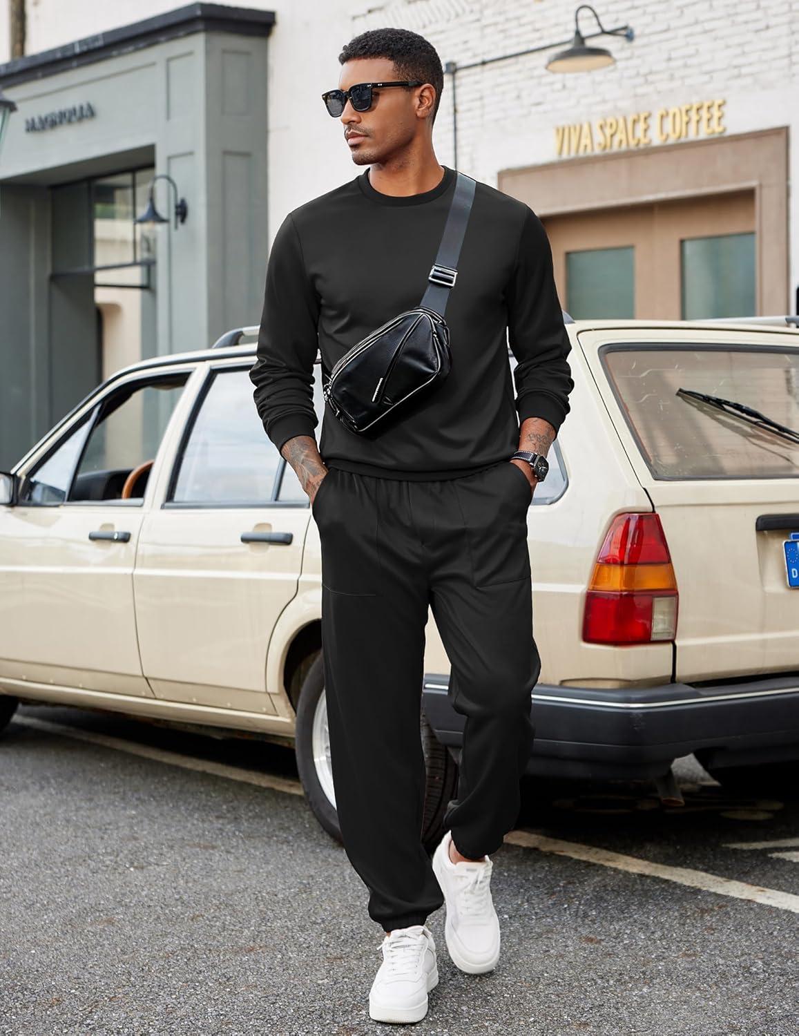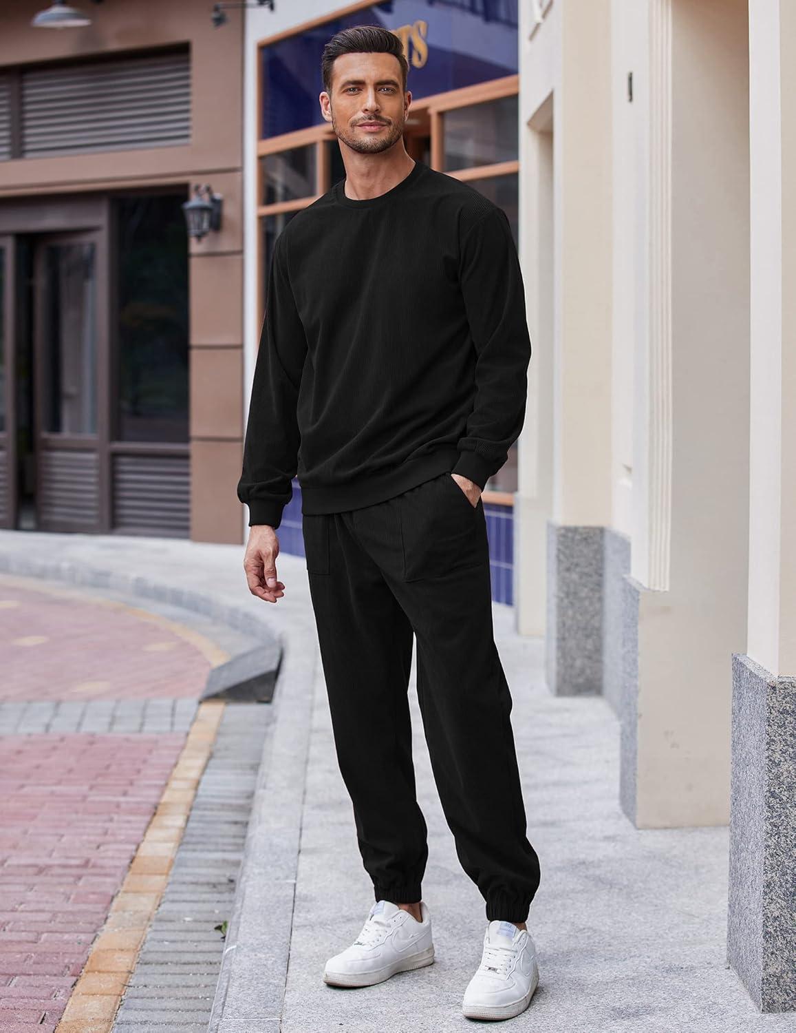 COOFANDY Men’s Tracksuit 2 Piece Sweatsuit Set Long Sleeve Pullover Athletic Suit For Sports Casual Fitness Jogging(Style B-black)