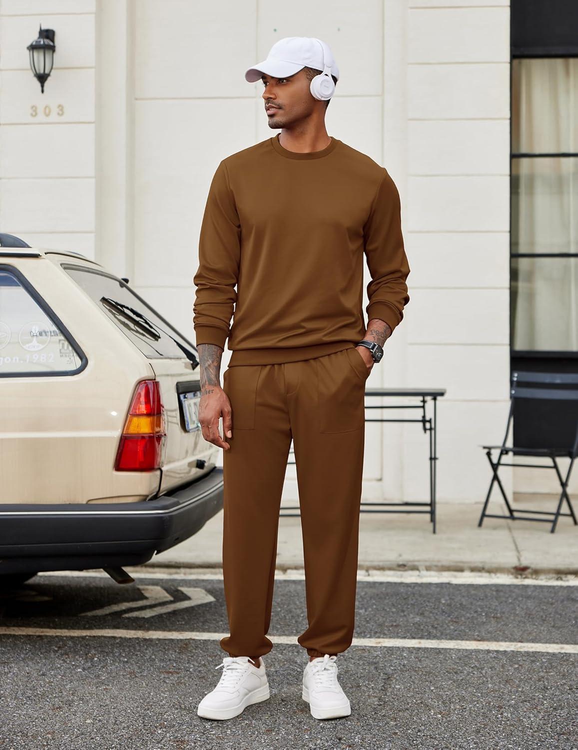 COOFANDY Men’s Tracksuit 2 Piece Sweatsuit Set Long Sleeve Pullover Athletic Suit For Sports Casual Fitness Jogging(Brown)