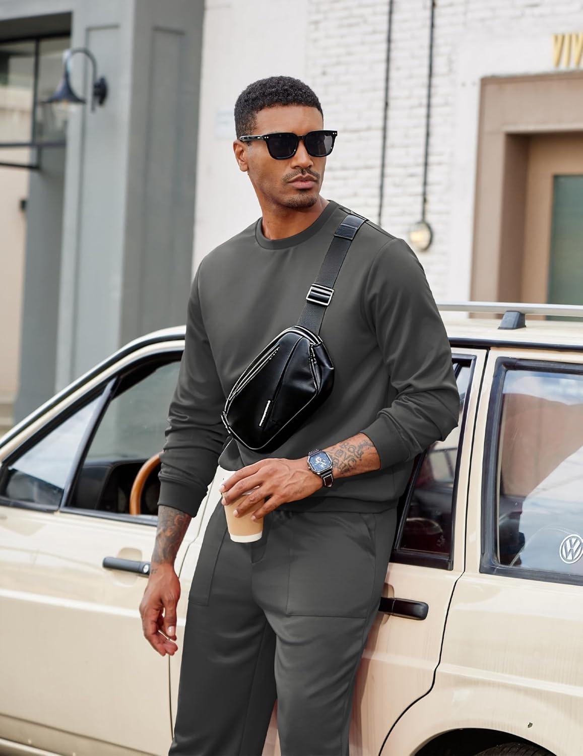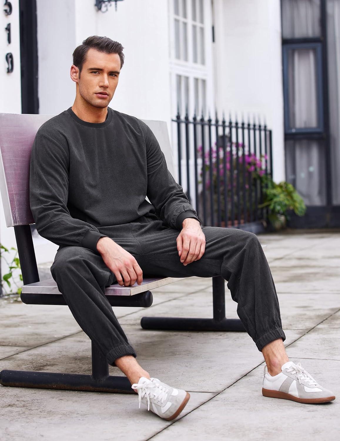 COOFANDY Men’s Tracksuit 2 Piece Sweatsuit Set Long Sleeve Pullover Athletic Suit For Sports Casual Fitness Jogging(Style B-dark Grey)