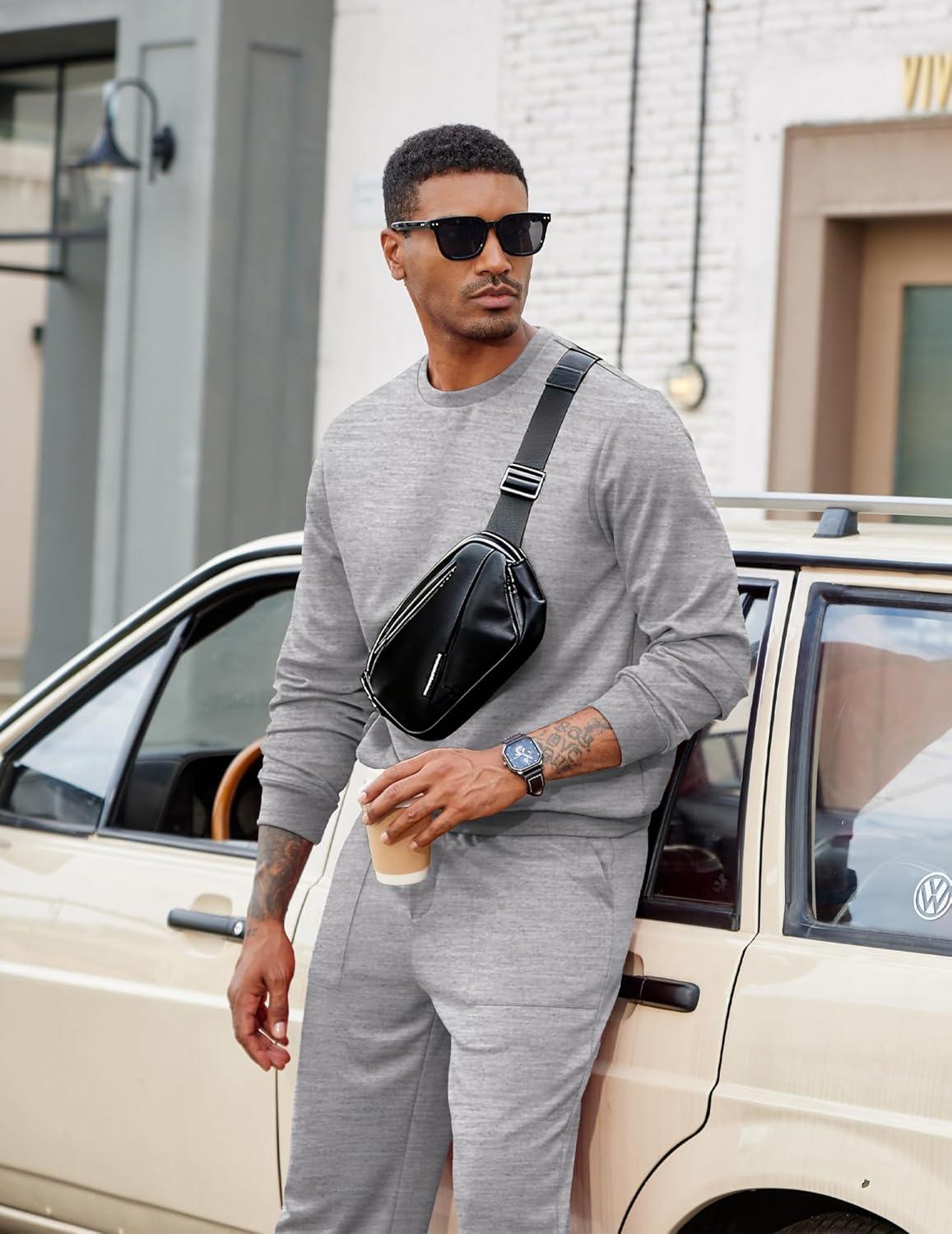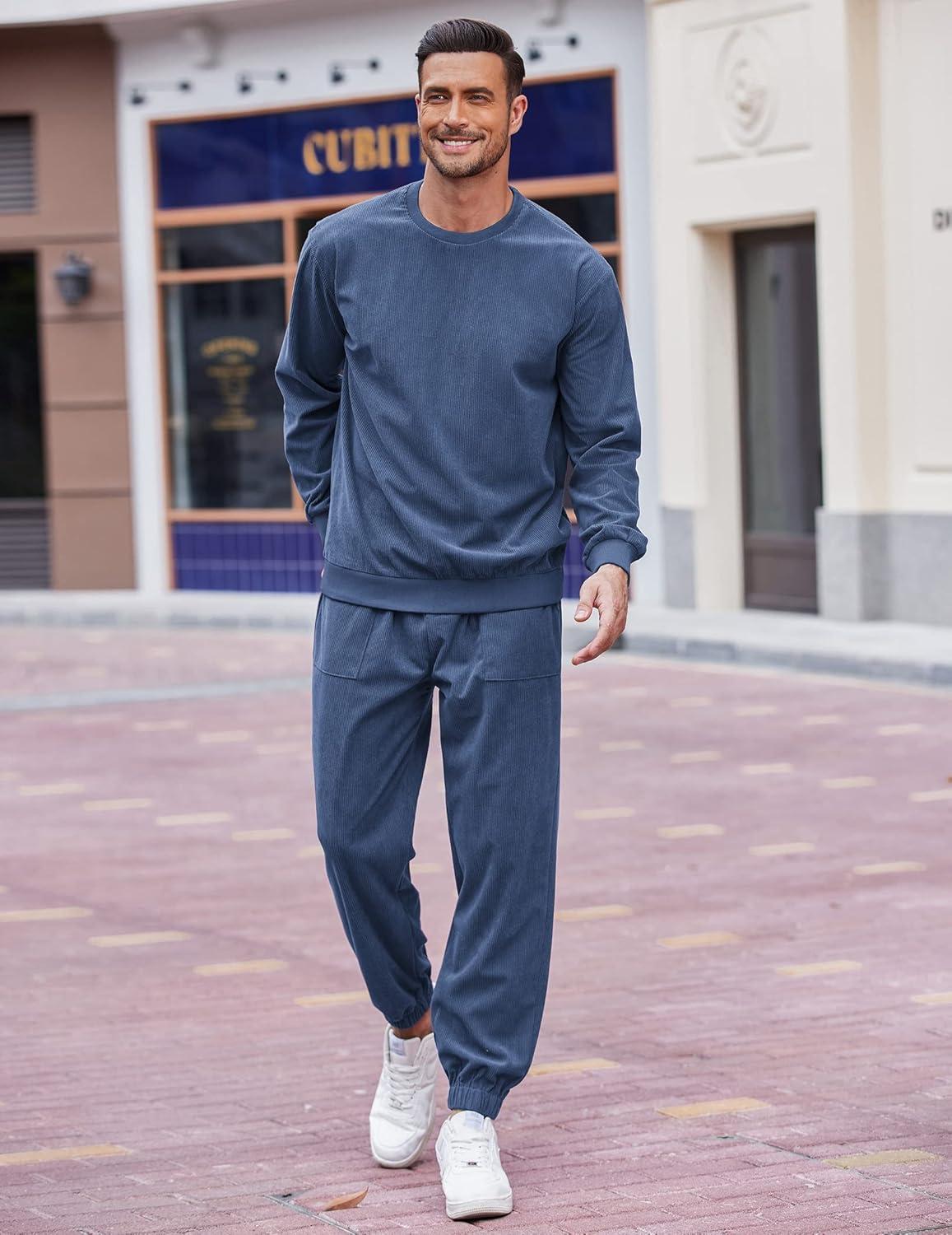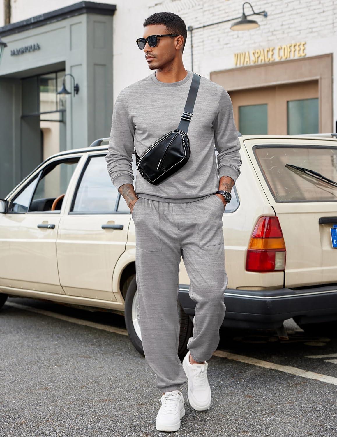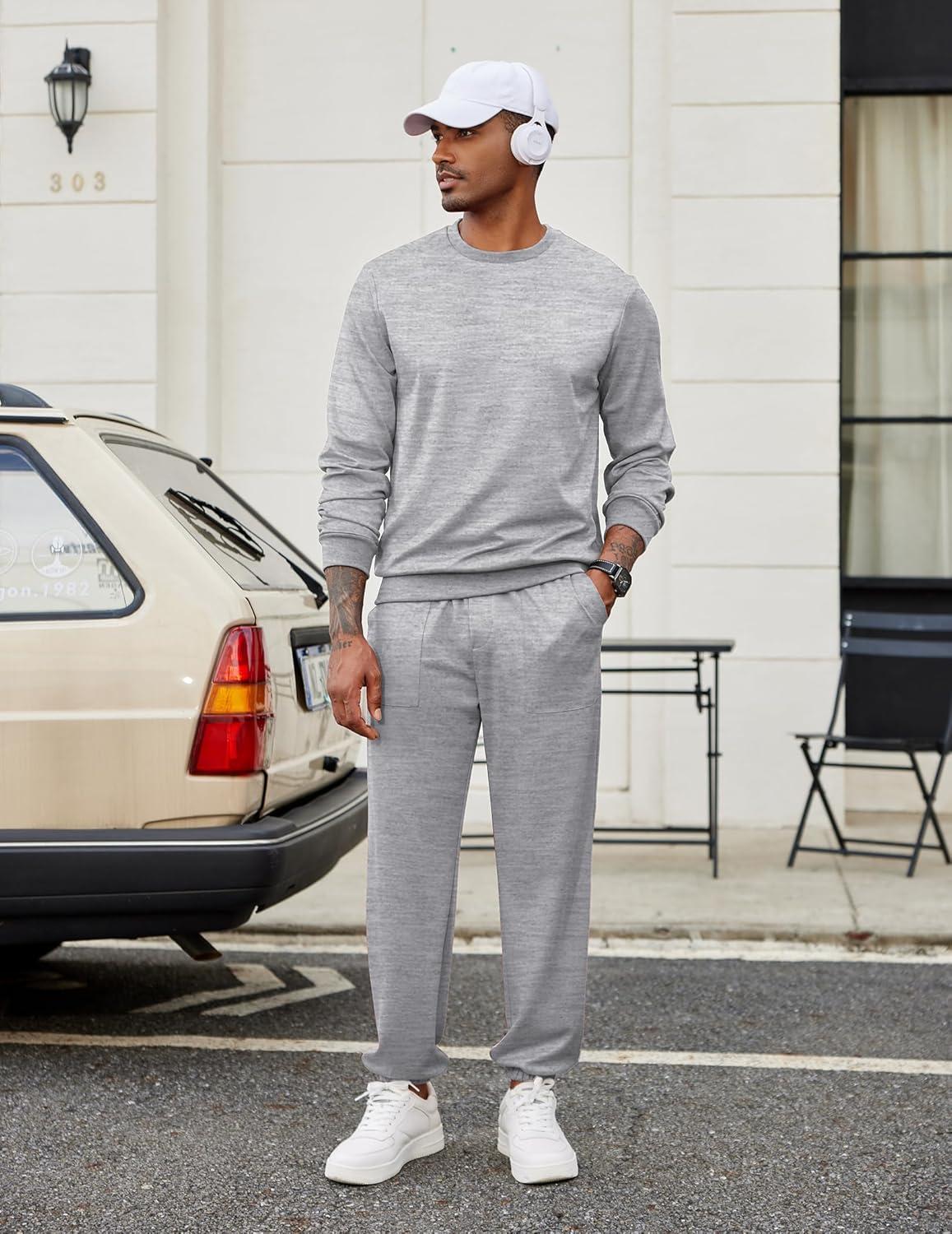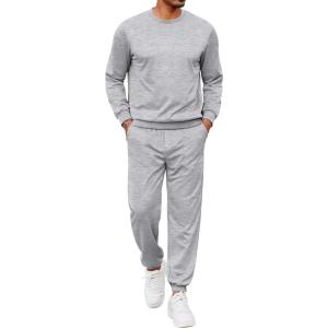 COOFANDY Men’s Tracksuit 2 Piece Sweatsuit Set Long Sleeve Pullover Athletic Suit For Sports Casual Fitness Jogging(Moon Grey)