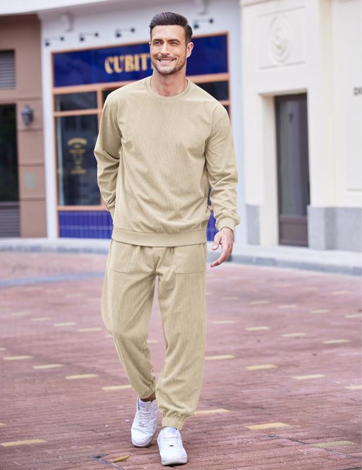 COOFANDY Men’s Tracksuit 2 Piece Sweatsuit Set Long Sleeve Pullover Athletic Suit For Sports Casual Fitness Jogging(Khaki)