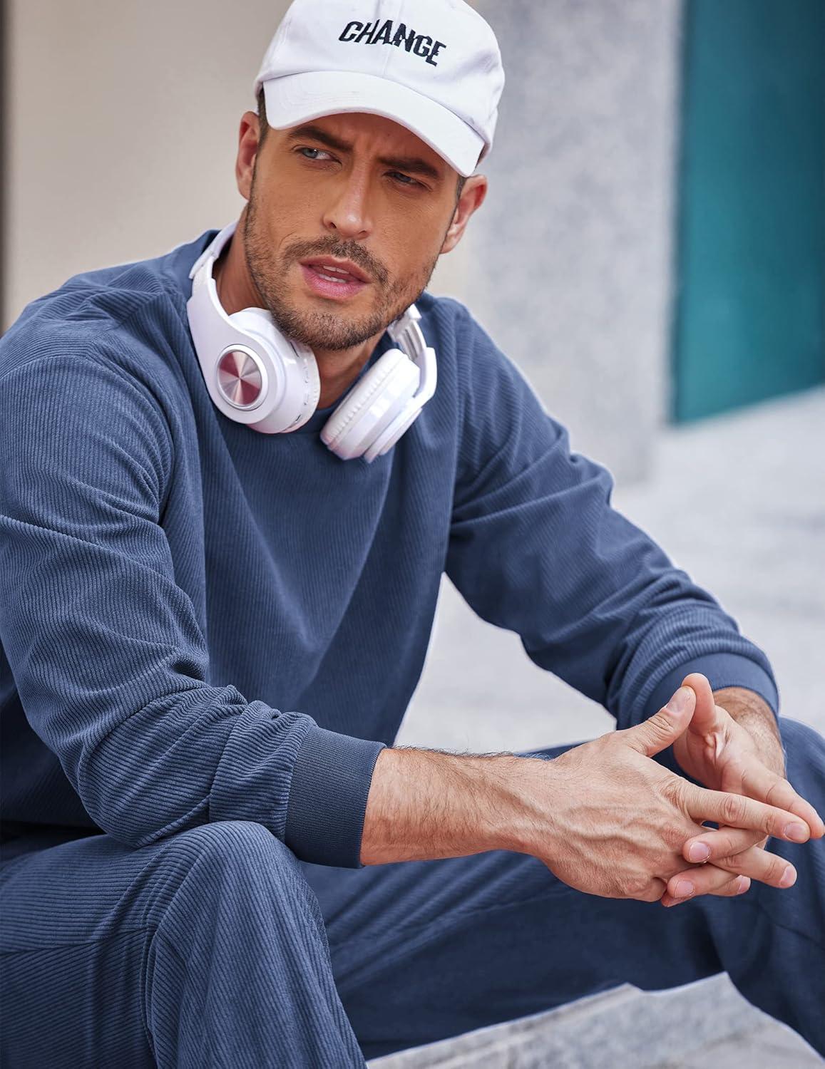 COOFANDY Men’s Tracksuit 2 Piece Sweatsuit Set Long Sleeve Pullover Athletic Suit For Sports Casual Fitness Jogging(Style B-navy Blue)