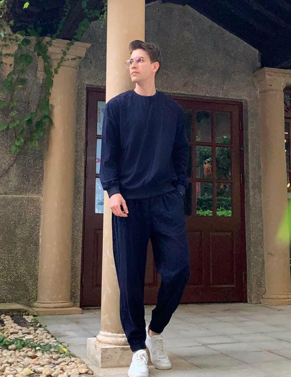 COOFANDY Men’s Tracksuit 2 Piece Sweatsuit Set Long Sleeve Pullover Athletic Suit For Sports Casual Fitness Jogging(Navy Blue)