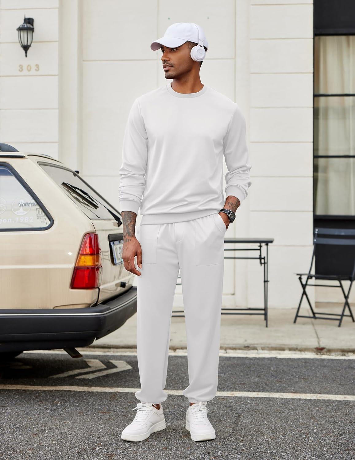 COOFANDY Men’s Tracksuit 2 Piece Sweatsuit Set Long Sleeve Pullover Athletic Suit For Sports Casual Fitness Jogging(White)