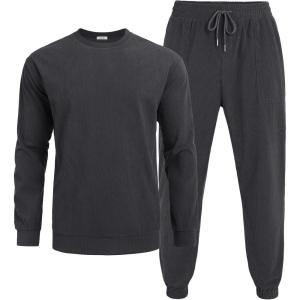 COOFANDY Men’s Tracksuit 2 Piece Sweatsuit Set Long Sleeve Pullover Athletic Suit For Sports Casual Fitness Jogging(Dark Grey)