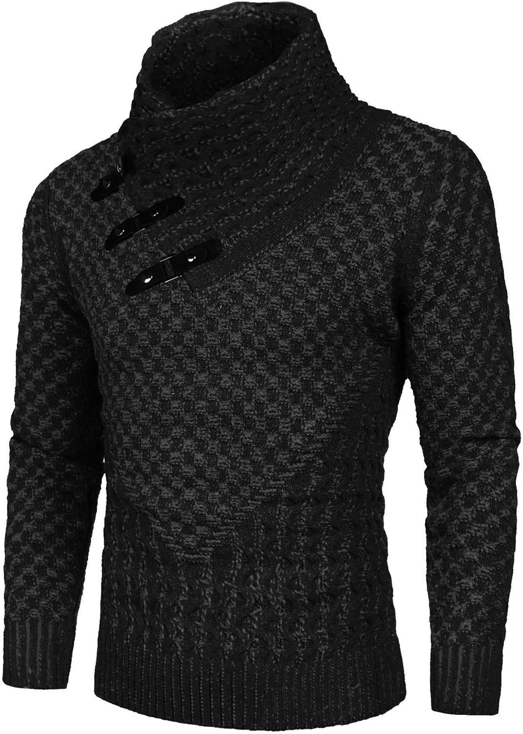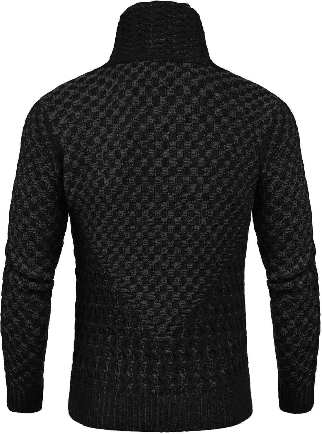COOFANDY Men Knitted Hoodies Pullover Casual Long Sleeve Slim Fit Turtleneck Sweaters(A- Black)
