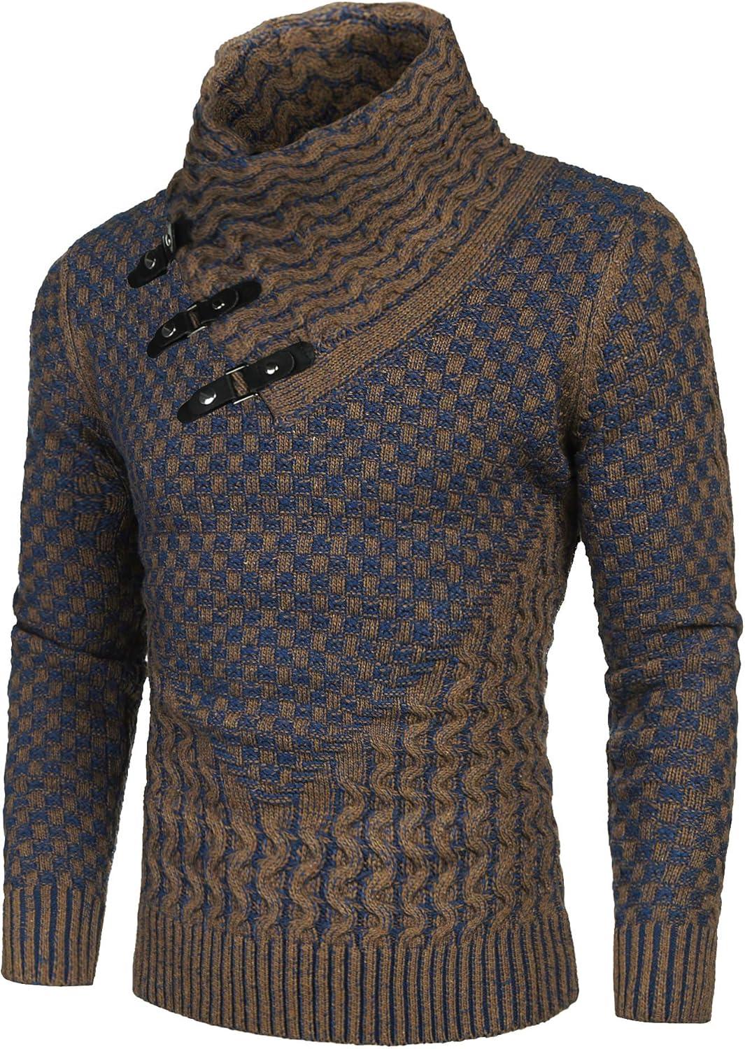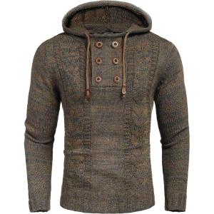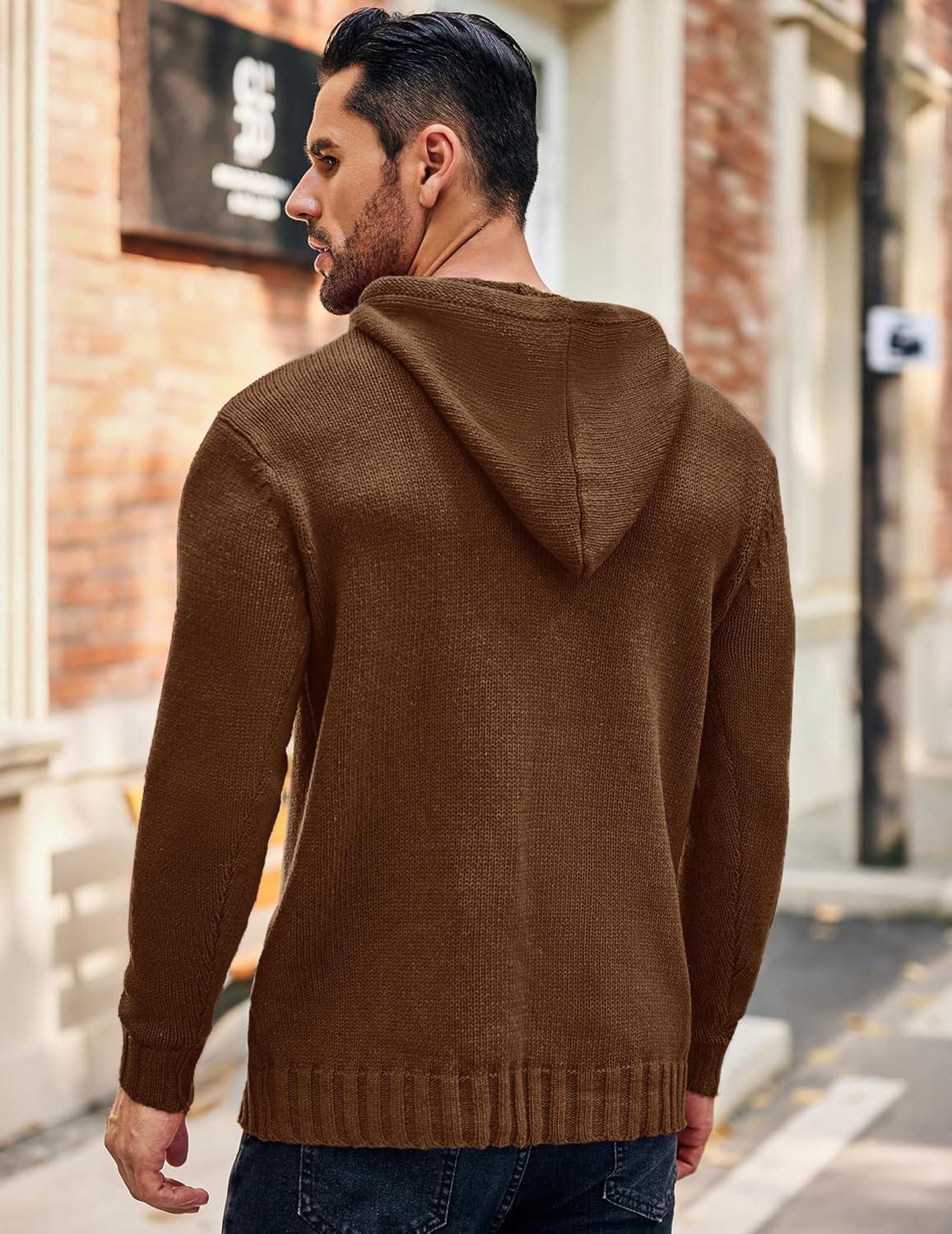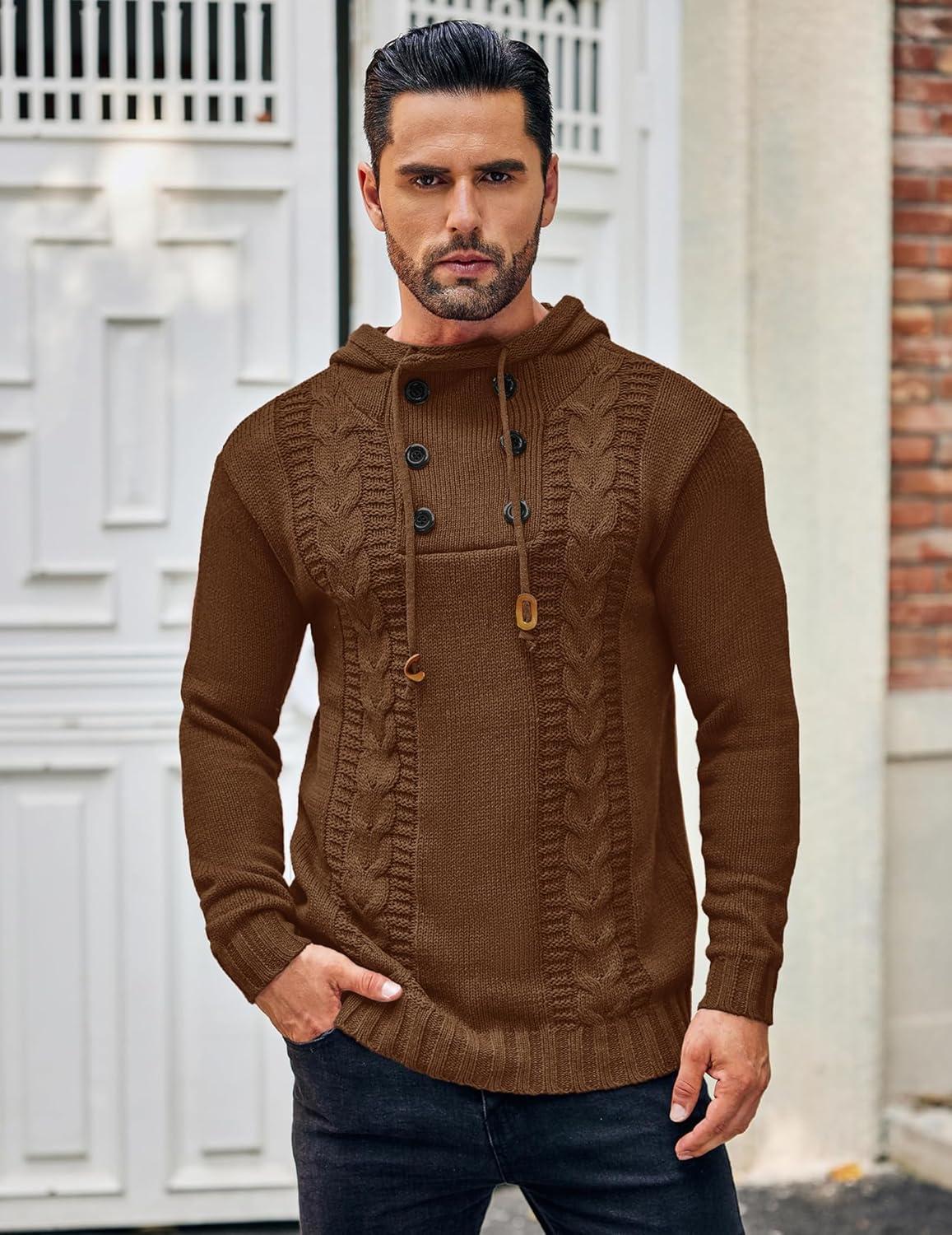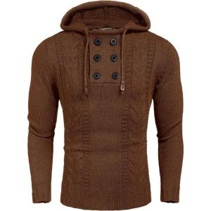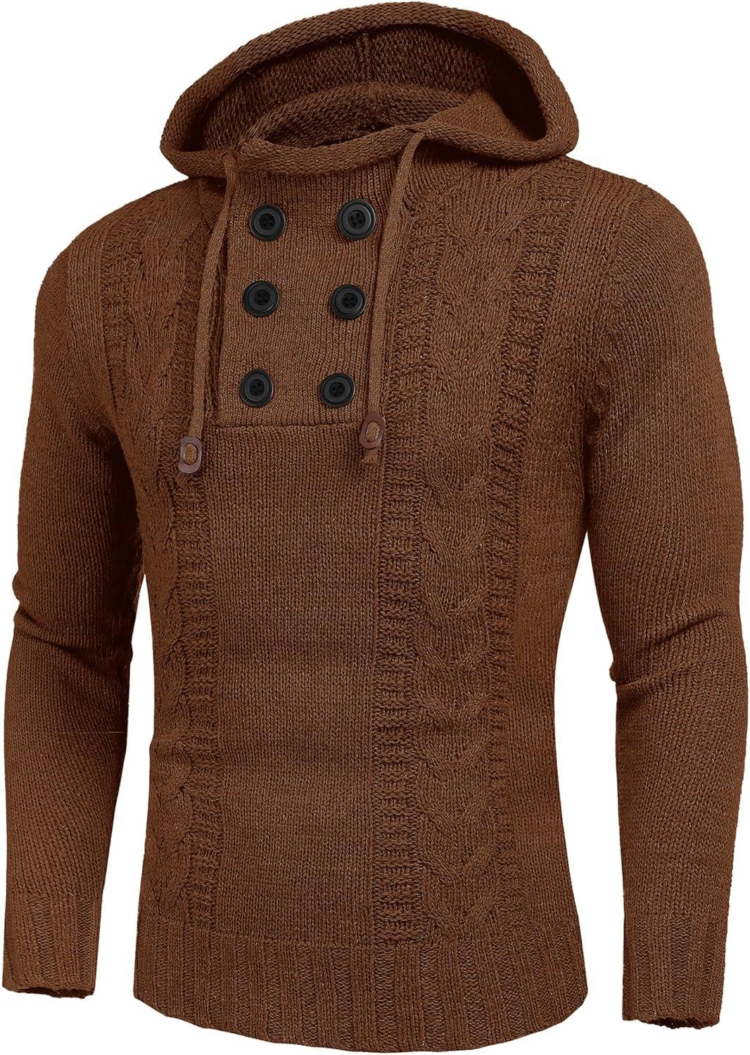 COOFANDY Men Knitted Hoodies Pullover Casual Long Sleeve Slim Fit Turtleneck Sweaters(Coffee)