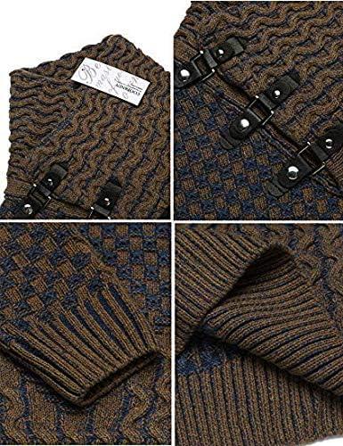 COOFANDY Men Knitted Hoodies Pullover Casual Long Sleeve Slim Fit Turtleneck Sweaters(A- Brown)