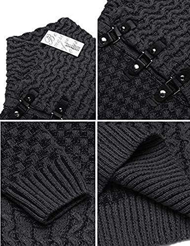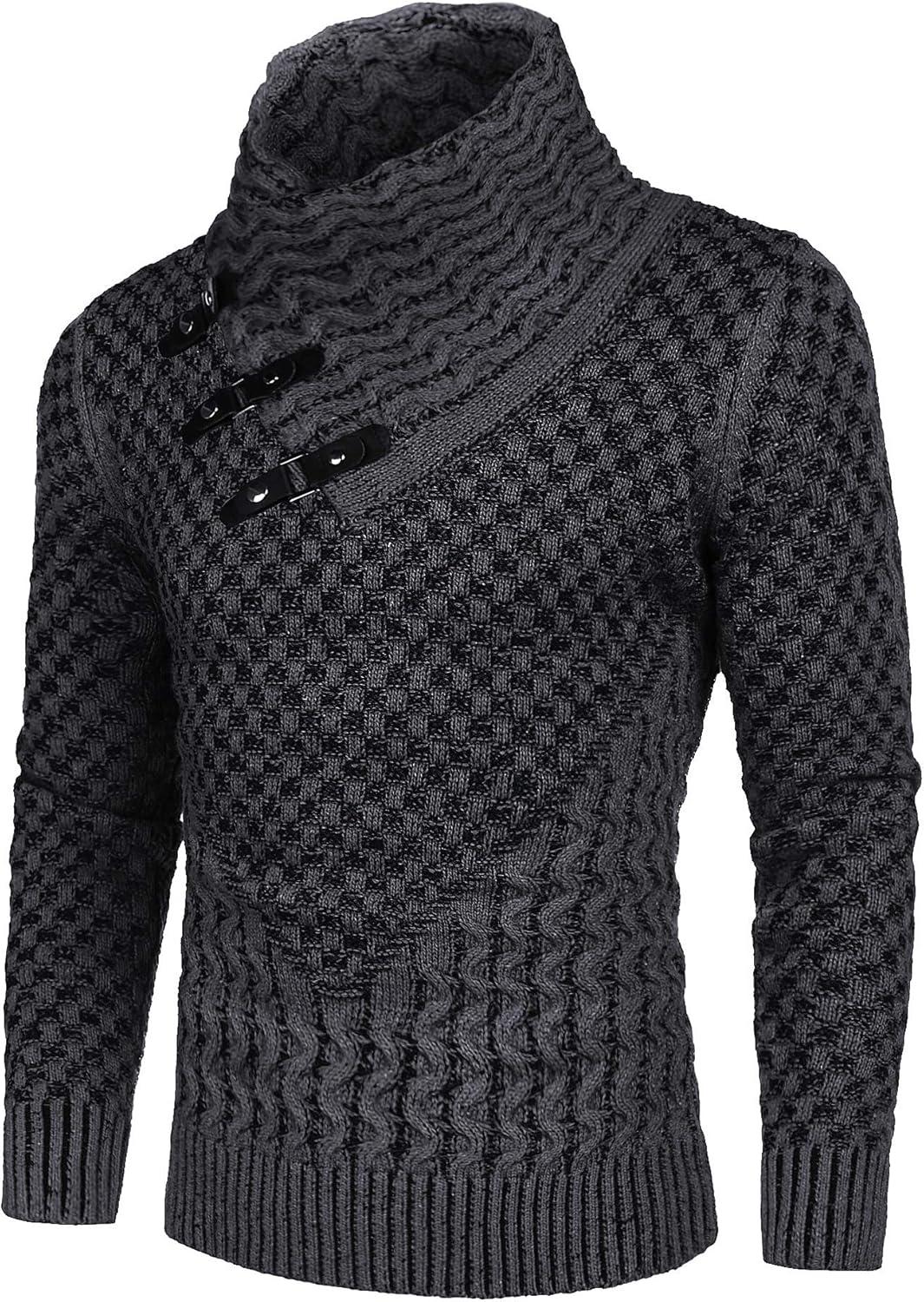 COOFANDY Men Knitted Hoodies Pullover Casual Long Sleeve Slim Fit Turtleneck Sweaters(A- Dark Grey)
