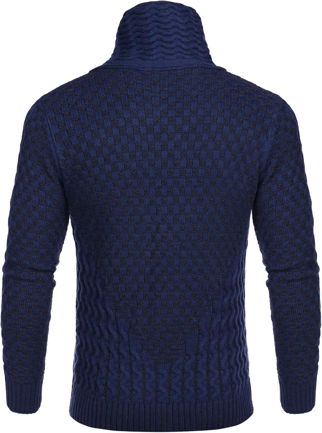 COOFANDY Men Knitted Hoodies Pullover Casual Long Sleeve Slim Fit Turtleneck Sweaters(A- Navy Blue)