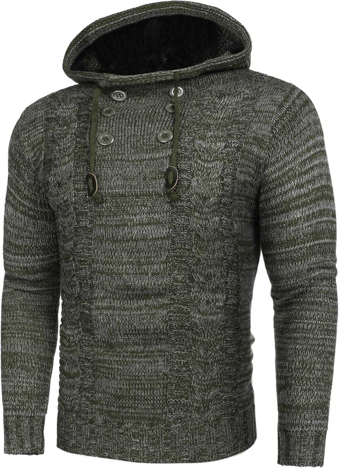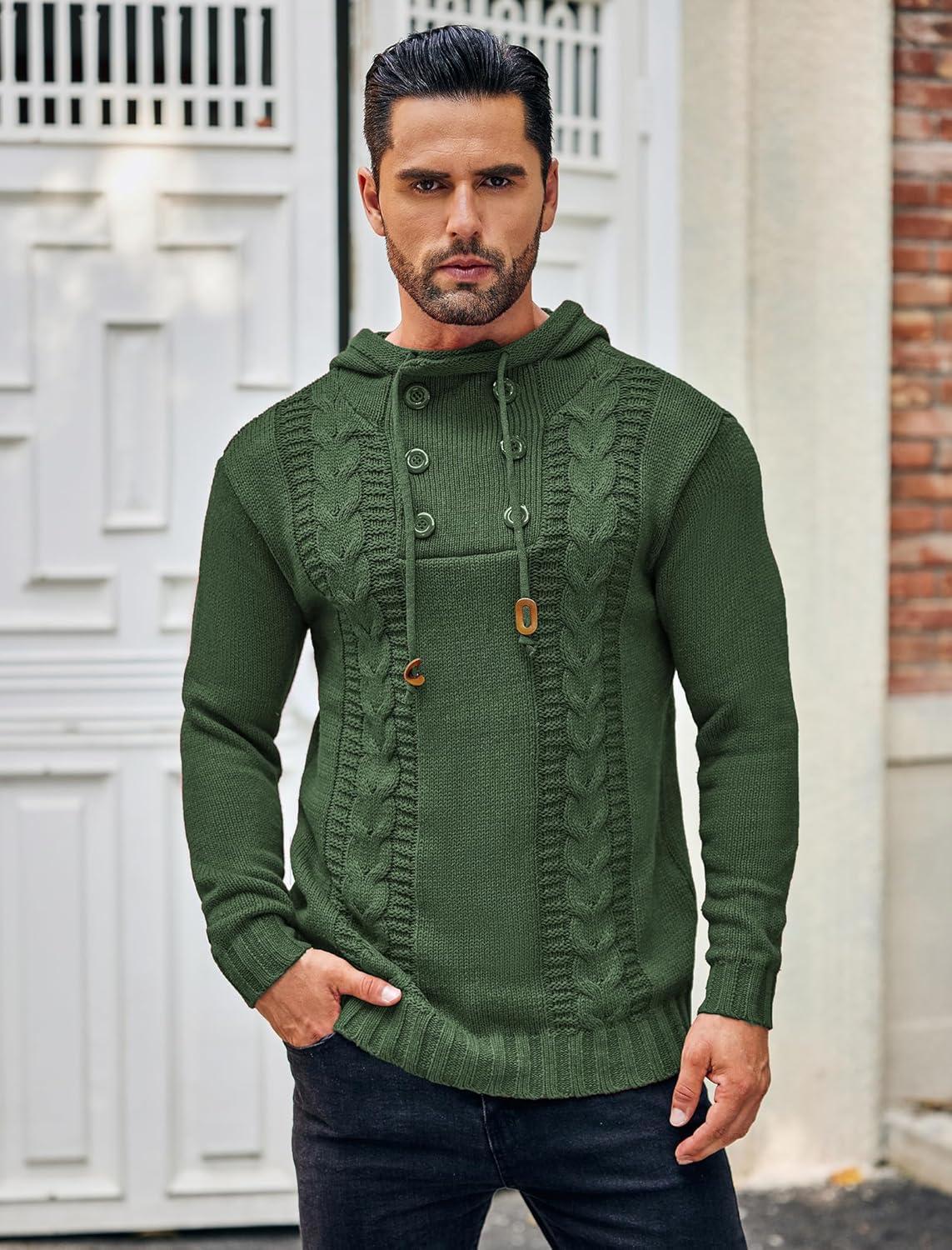 COOFANDY Men Knitted Hoodies Pullover Casual Long Sleeve Slim Fit Turtleneck Sweaters(Army Green)