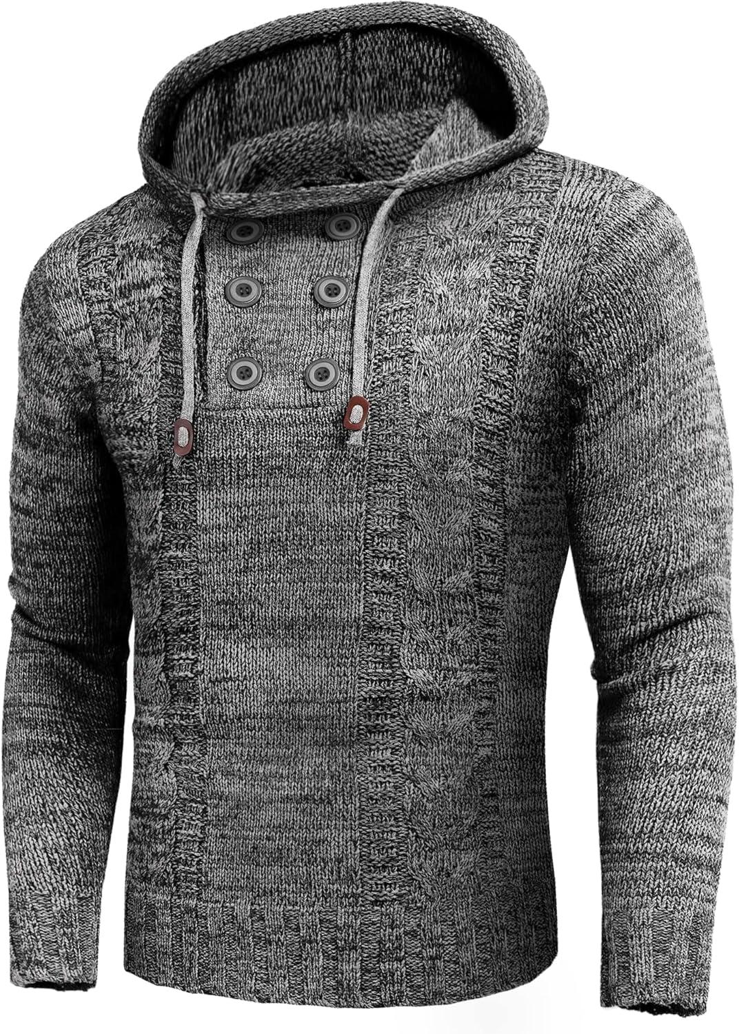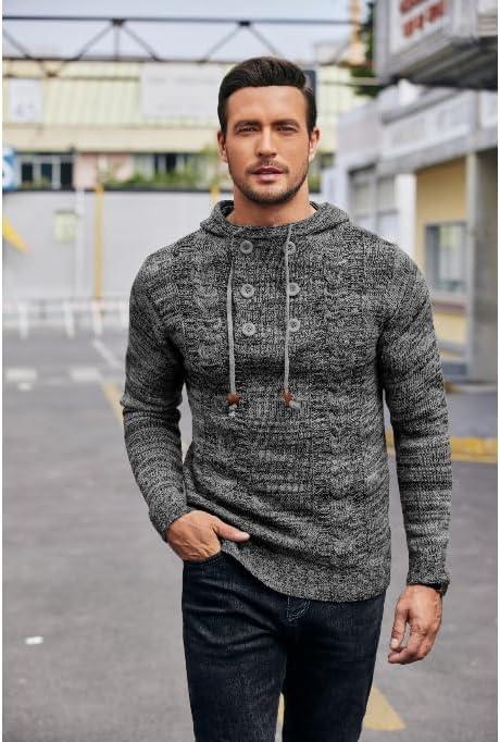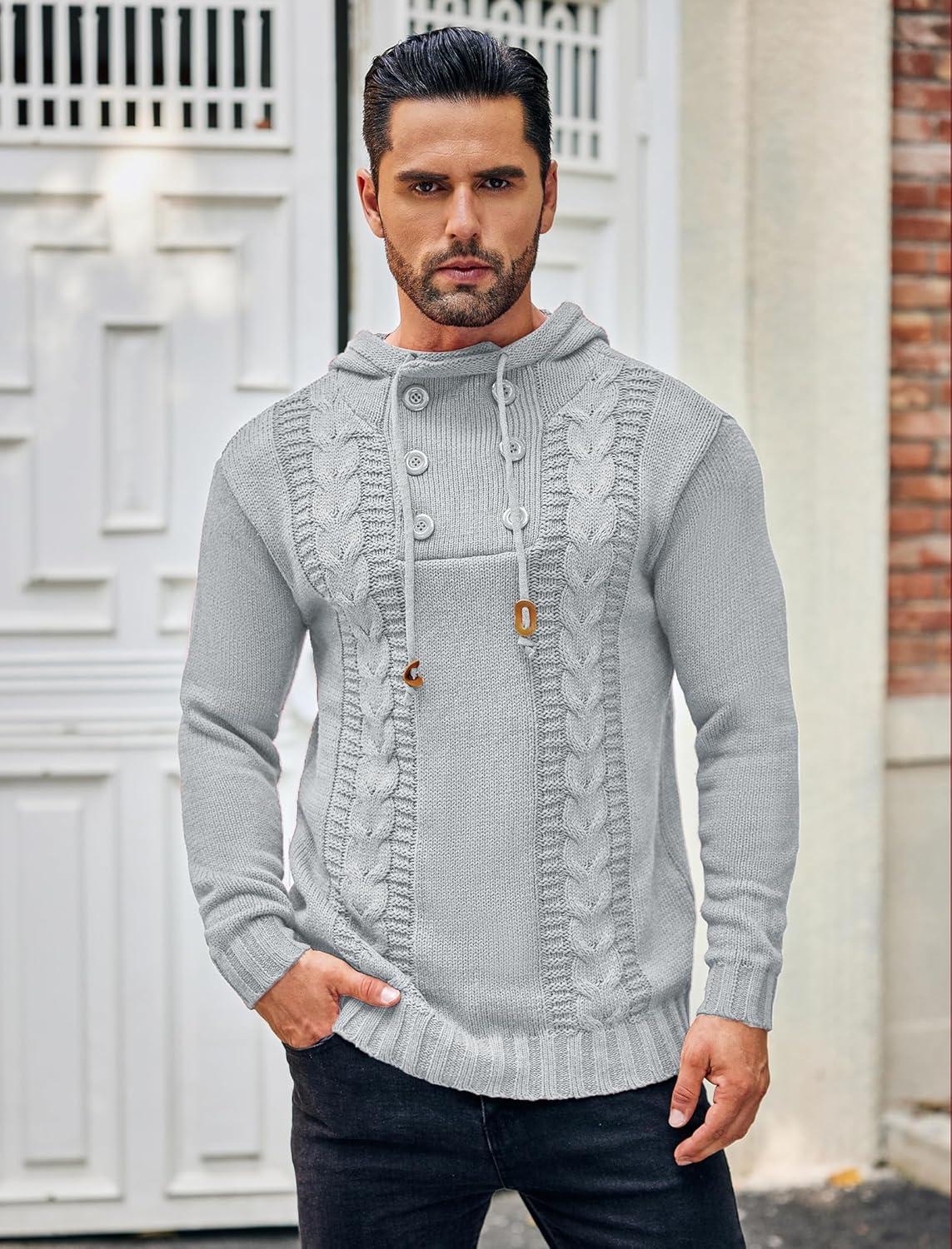 COOFANDY Men Knitted Hoodies Pullover Casual Long Sleeve Slim Fit Turtleneck Sweaters(Grey)