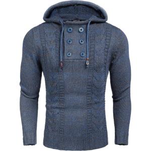 COOFANDY Men Knitted Hoodies Pullover Casual Long Sleeve Slim Fit Turtleneck Sweaters(Blue)