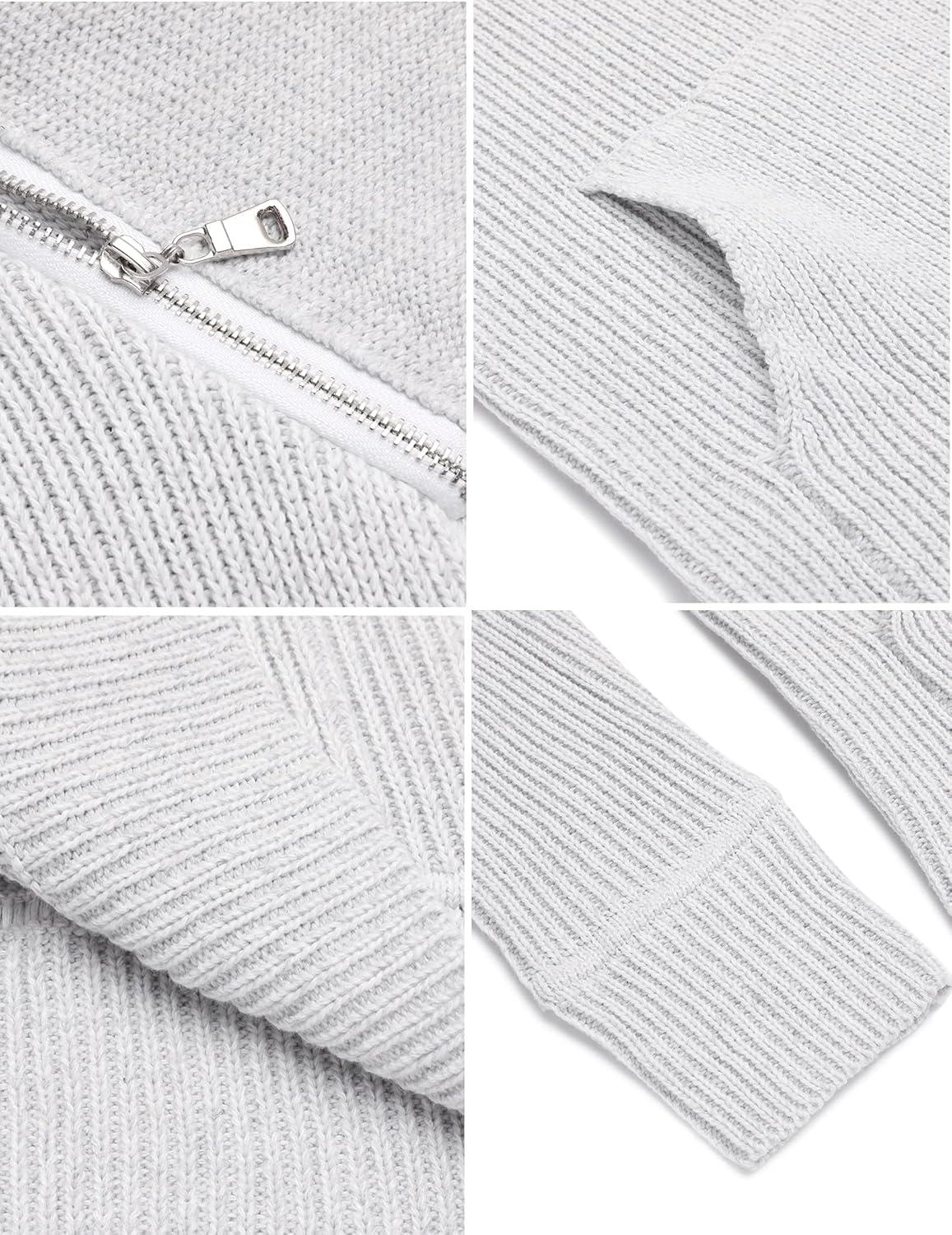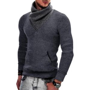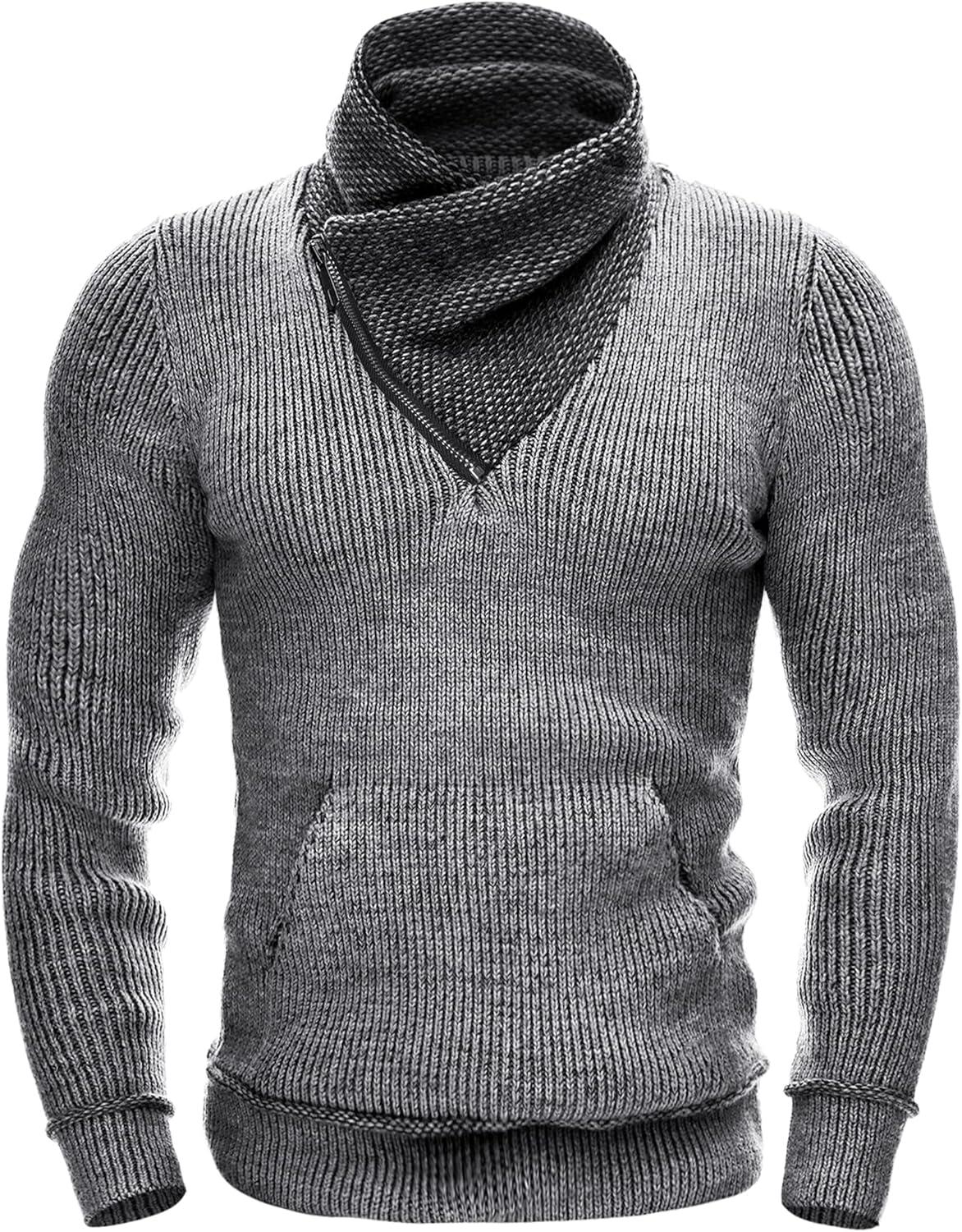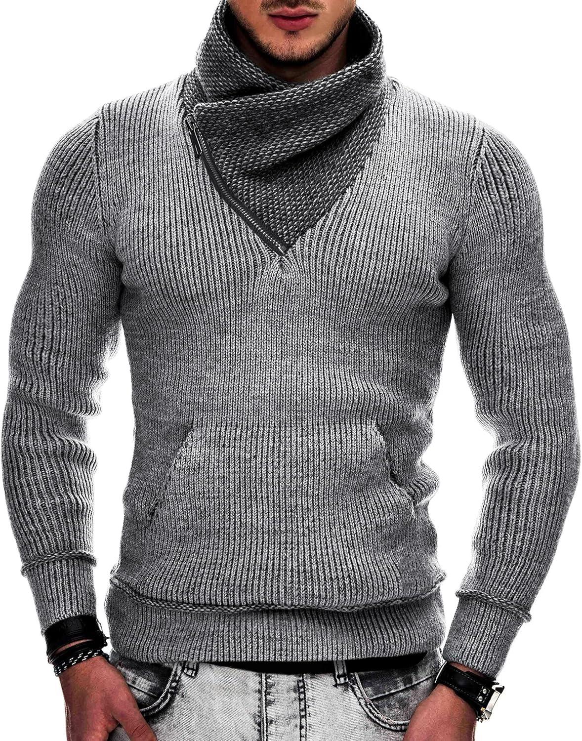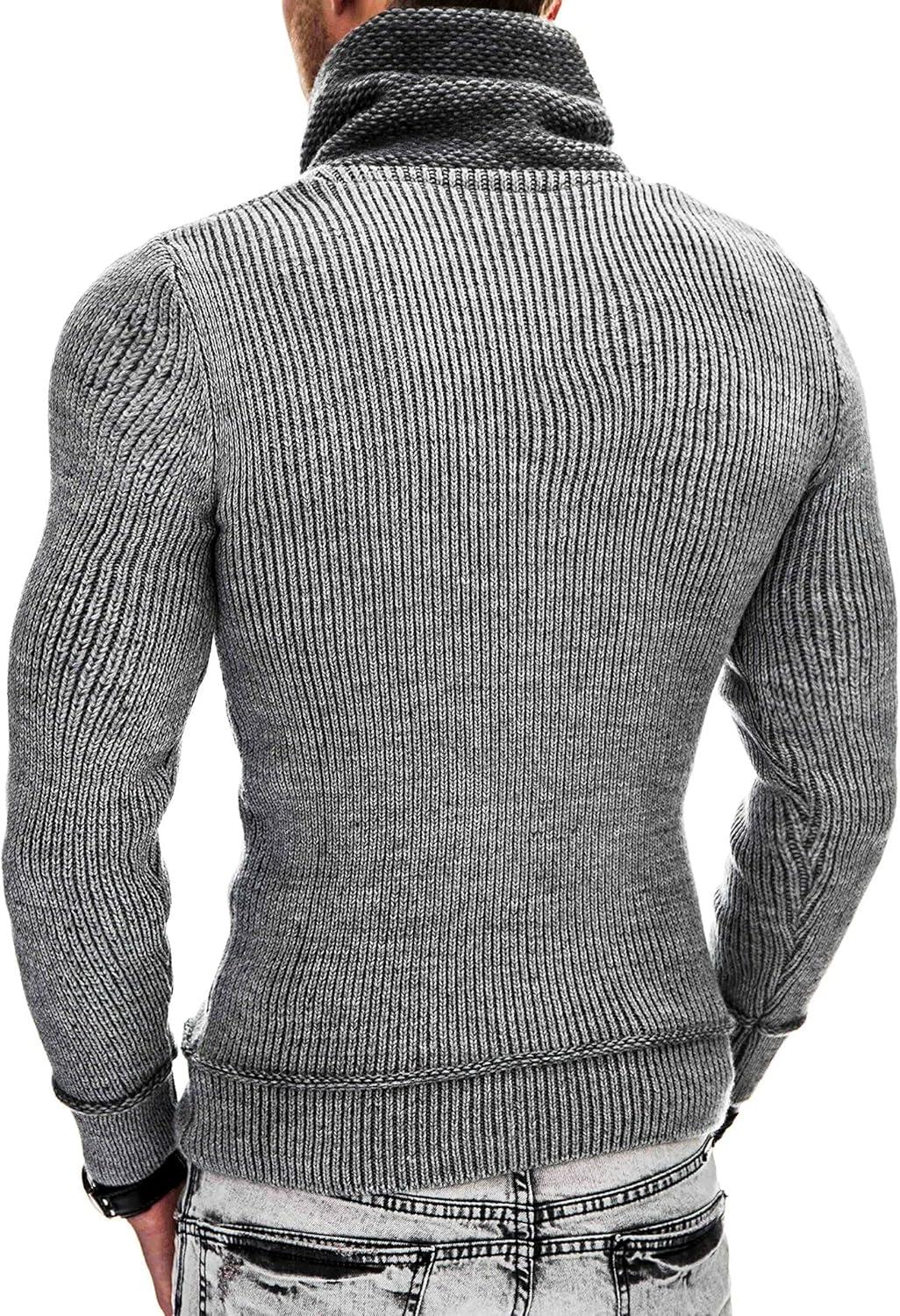 COOFANDY Men’s Knitted Turtleneck Pullover Shawl Collar Sweaters Slim Fit High Neck Hoodies with Pockets(Grey)