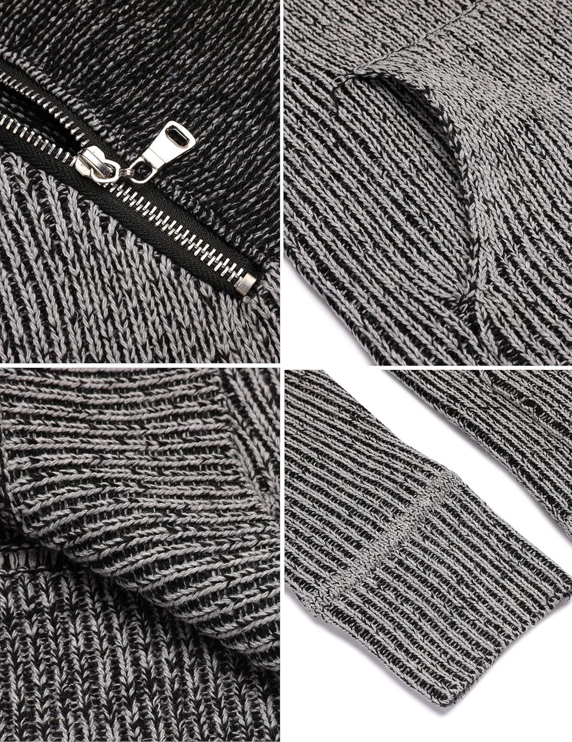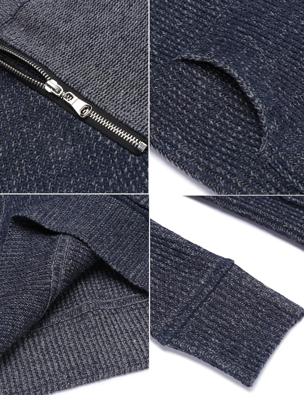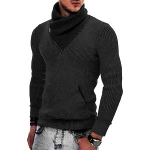 COOFANDY Men’s Knitted Turtleneck Pullover Shawl Collar Sweaters Slim Fit High Neck Hoodies with Pockets(Dark Gray)