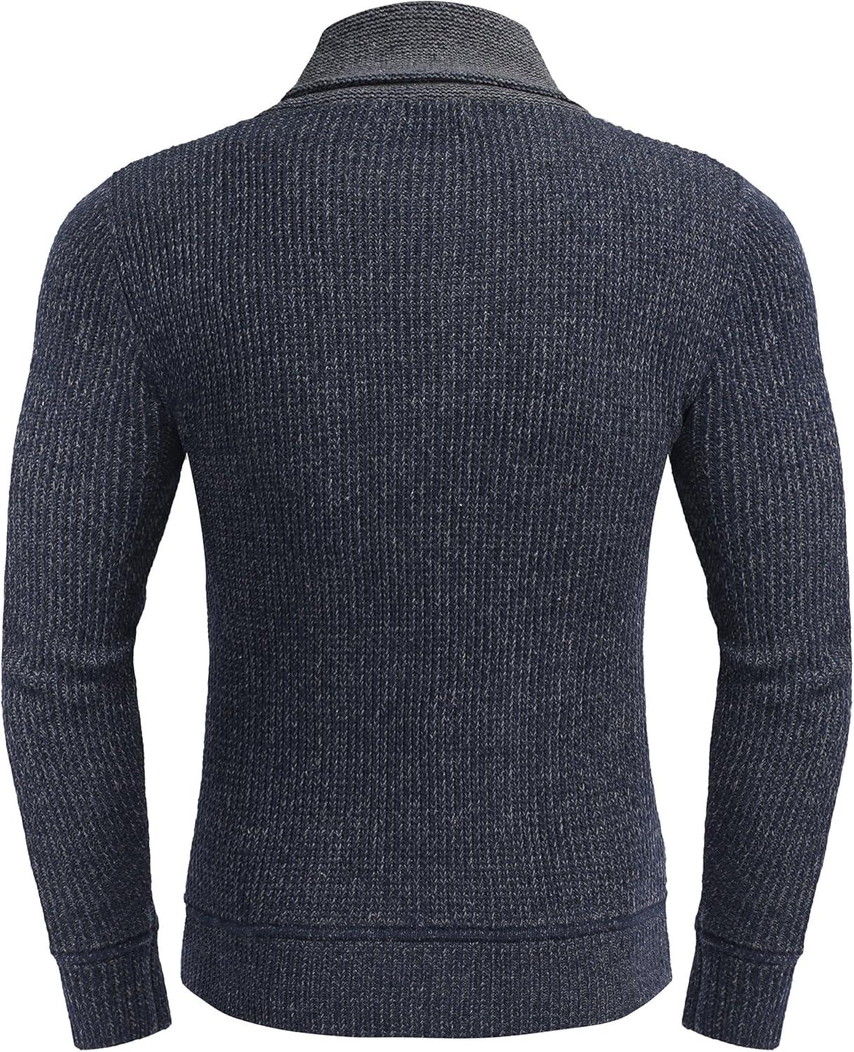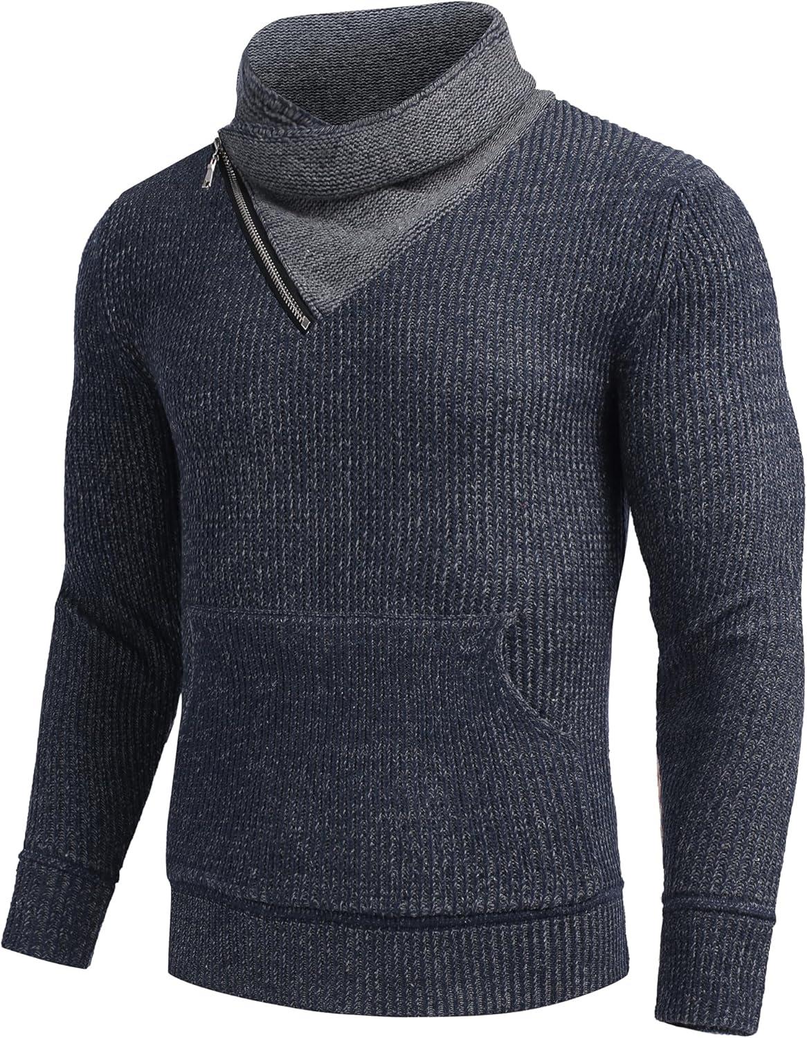 COOFANDY Men’s Knitted Turtleneck Pullover Shawl Collar Sweaters Slim Fit High Neck Hoodies with Pockets(Navy Blue)
