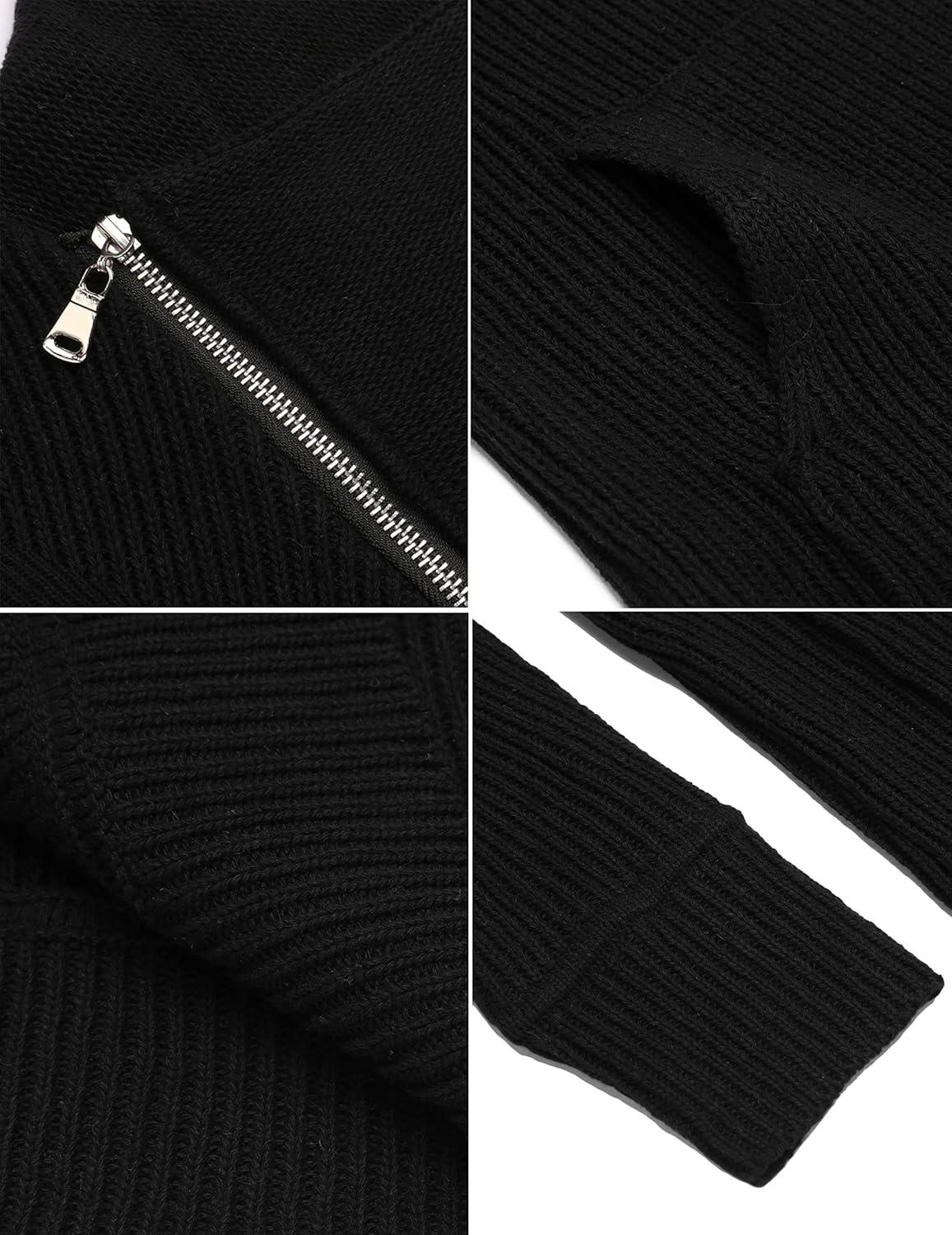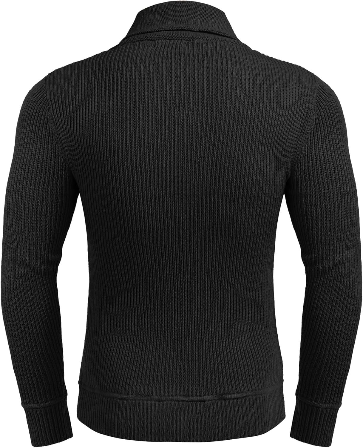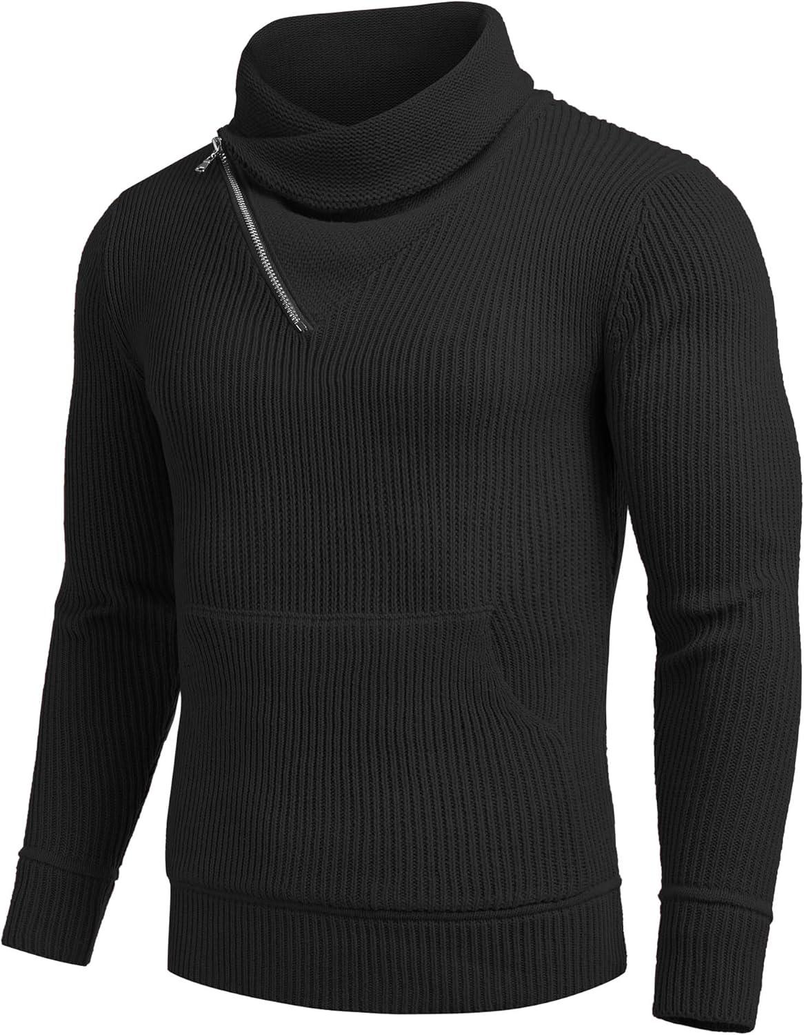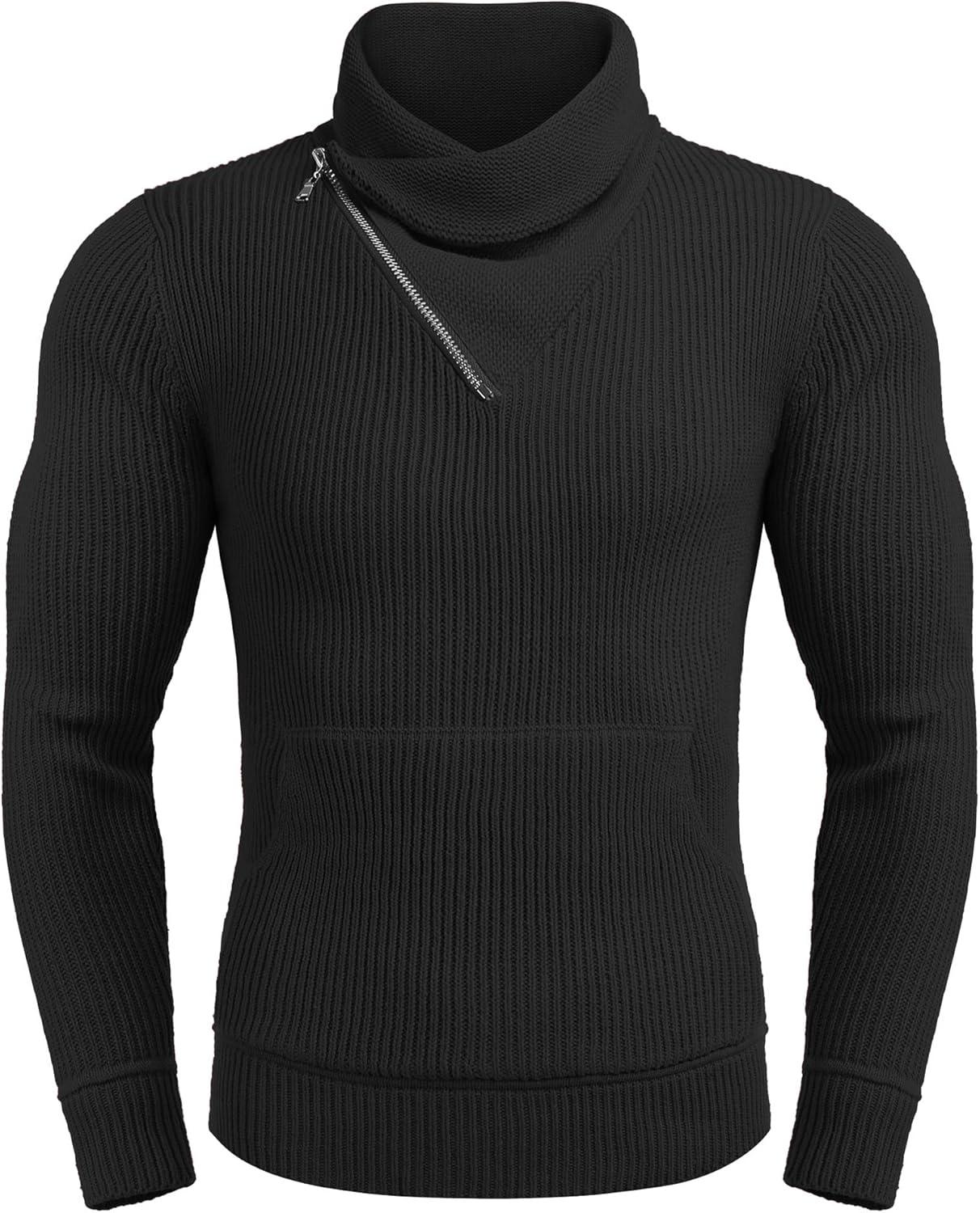COOFANDY Men’s Knitted Turtleneck Pullover Shawl Collar Sweaters Slim Fit High Neck Hoodies with Pockets(Black)
