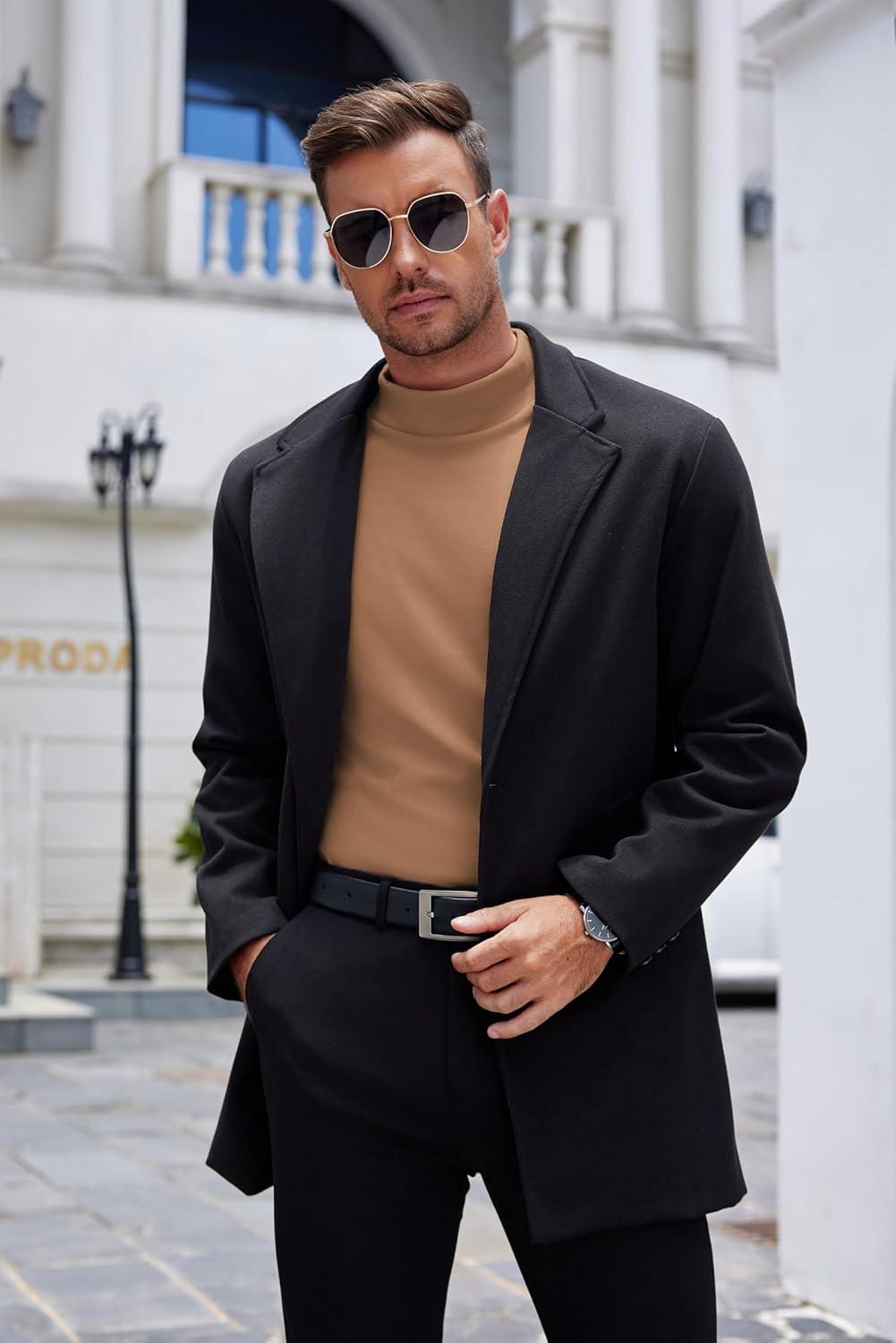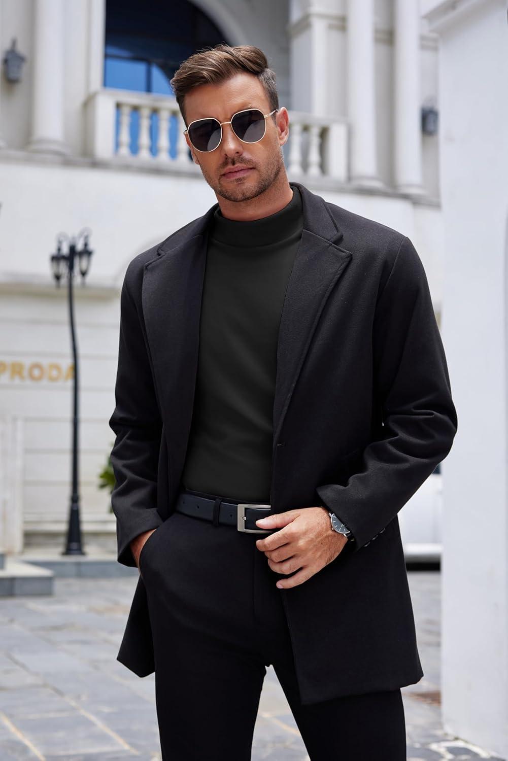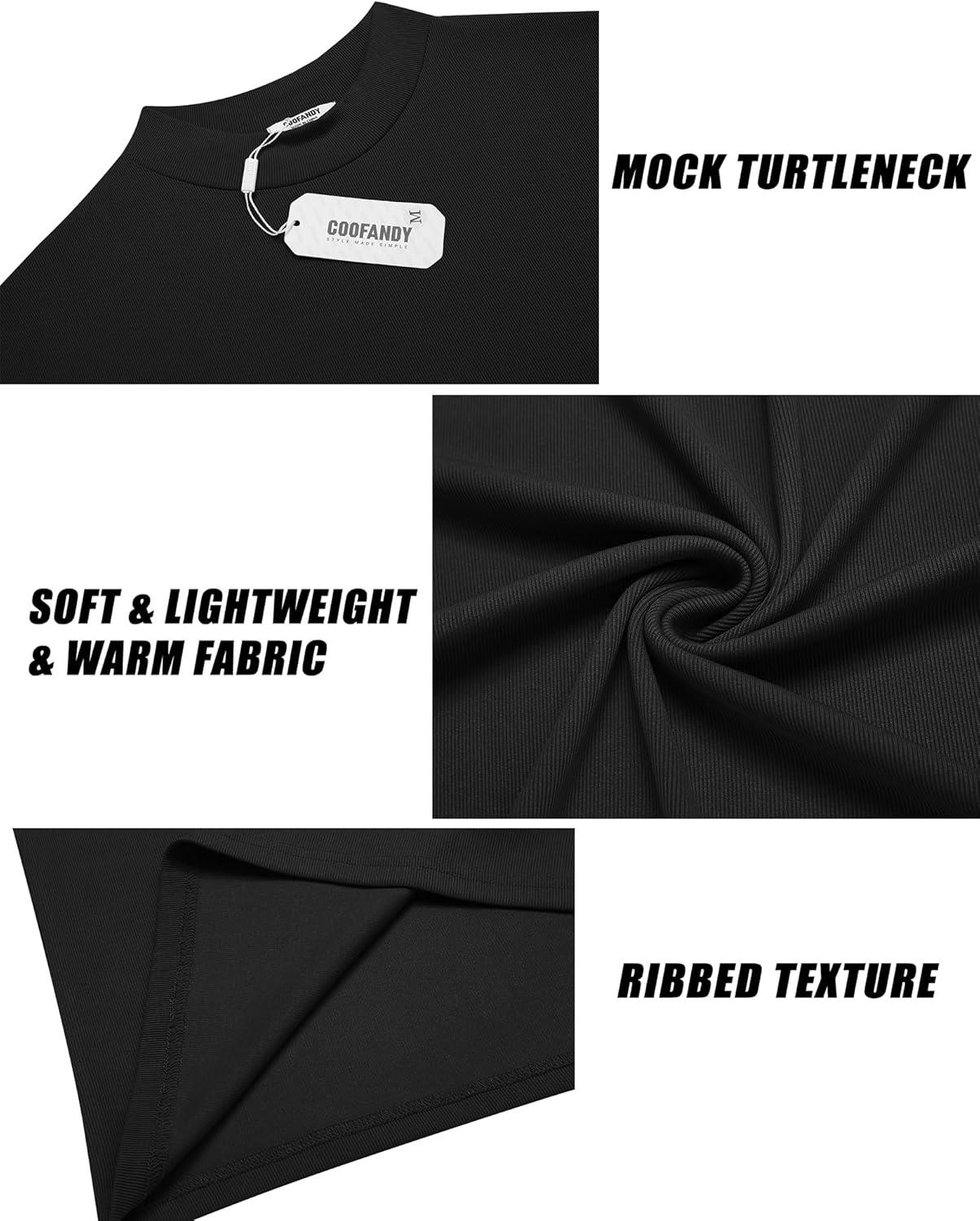 COOFANDY Mens Mock Turtleneck Long Sleeve Shirts Basic Thermal Turtle Neck Undershirt Lightweight Pullover Sweaters Top(Black)