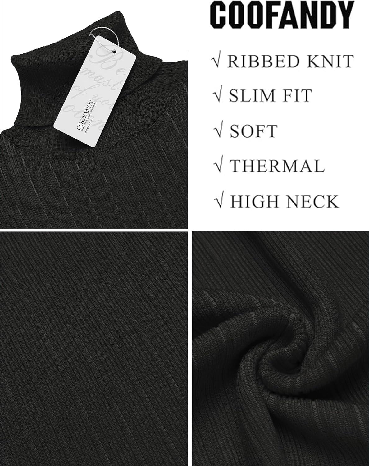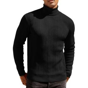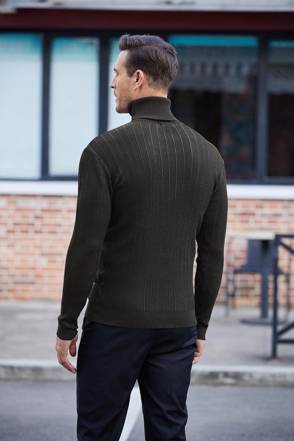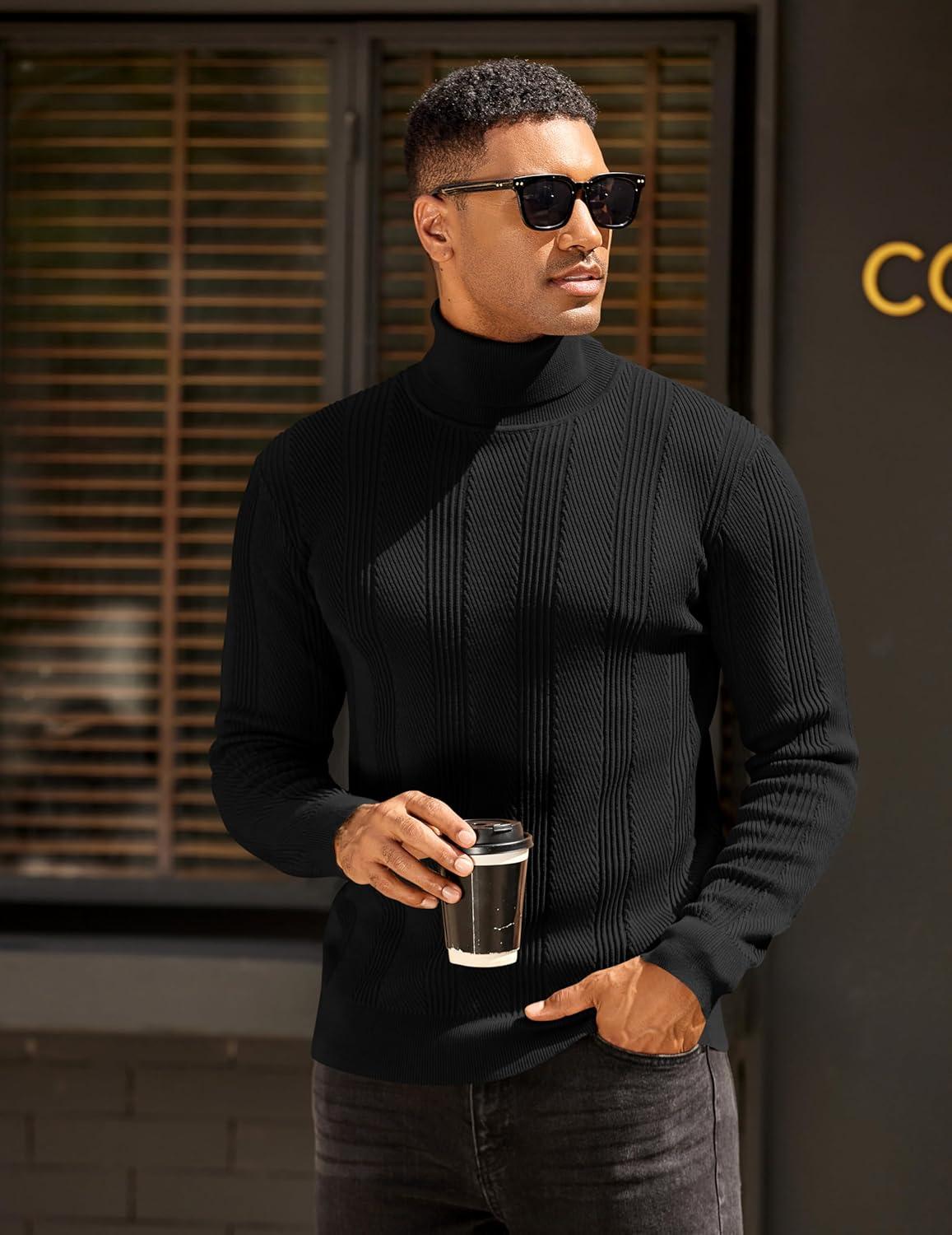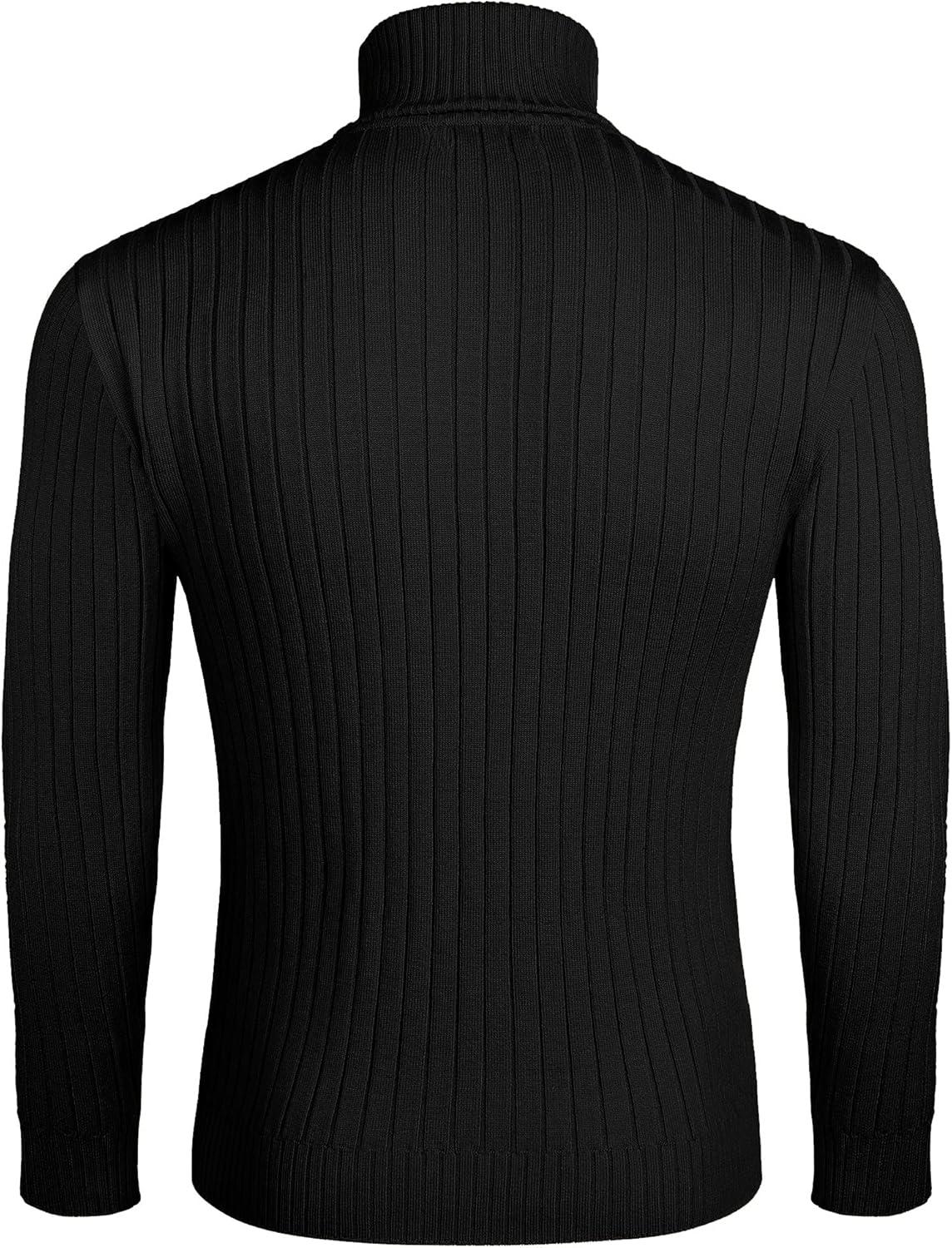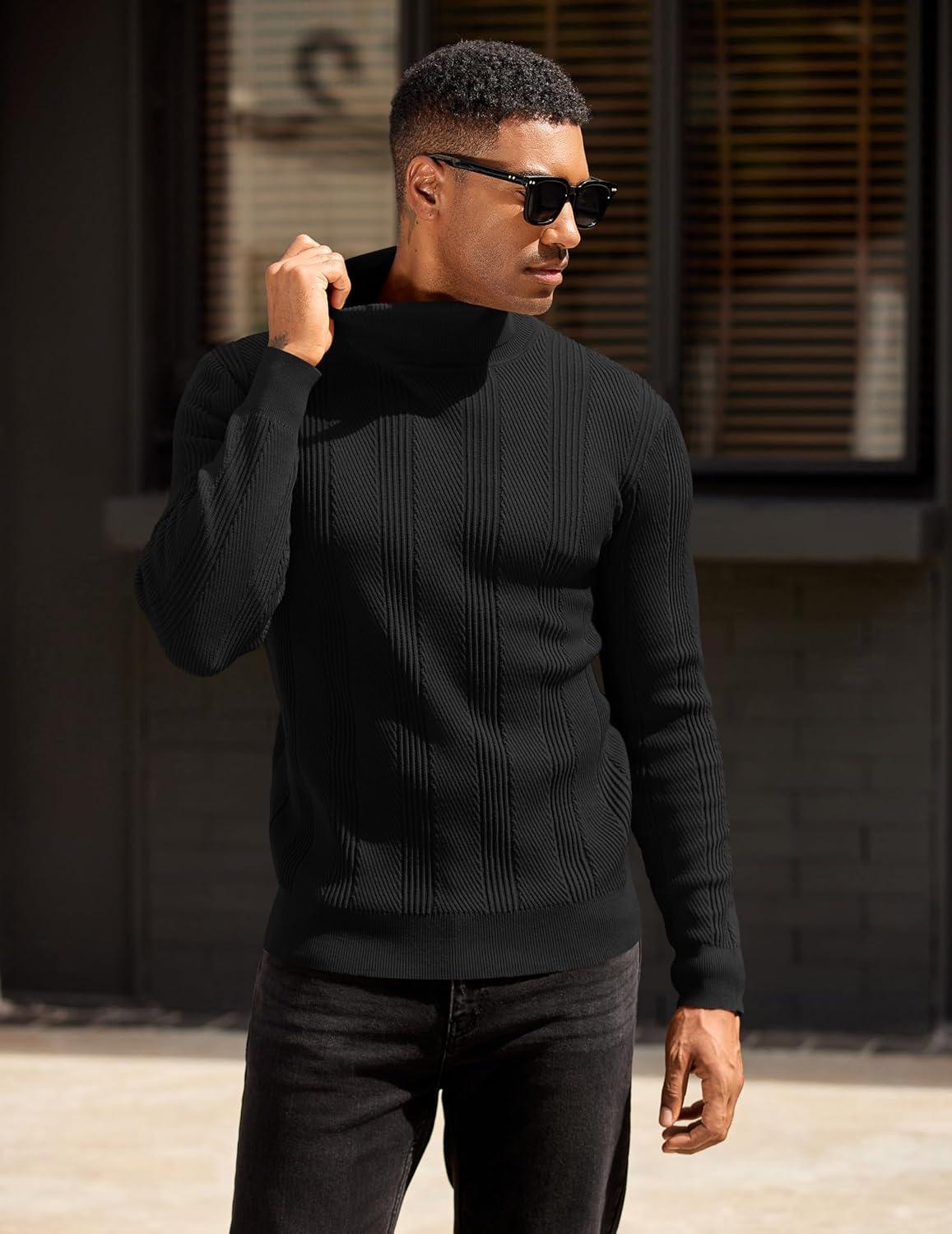 COOFANDY Mens Ribbed Slim Fit Knitted Pullover Casual Turtleneck Sweater(01-black)