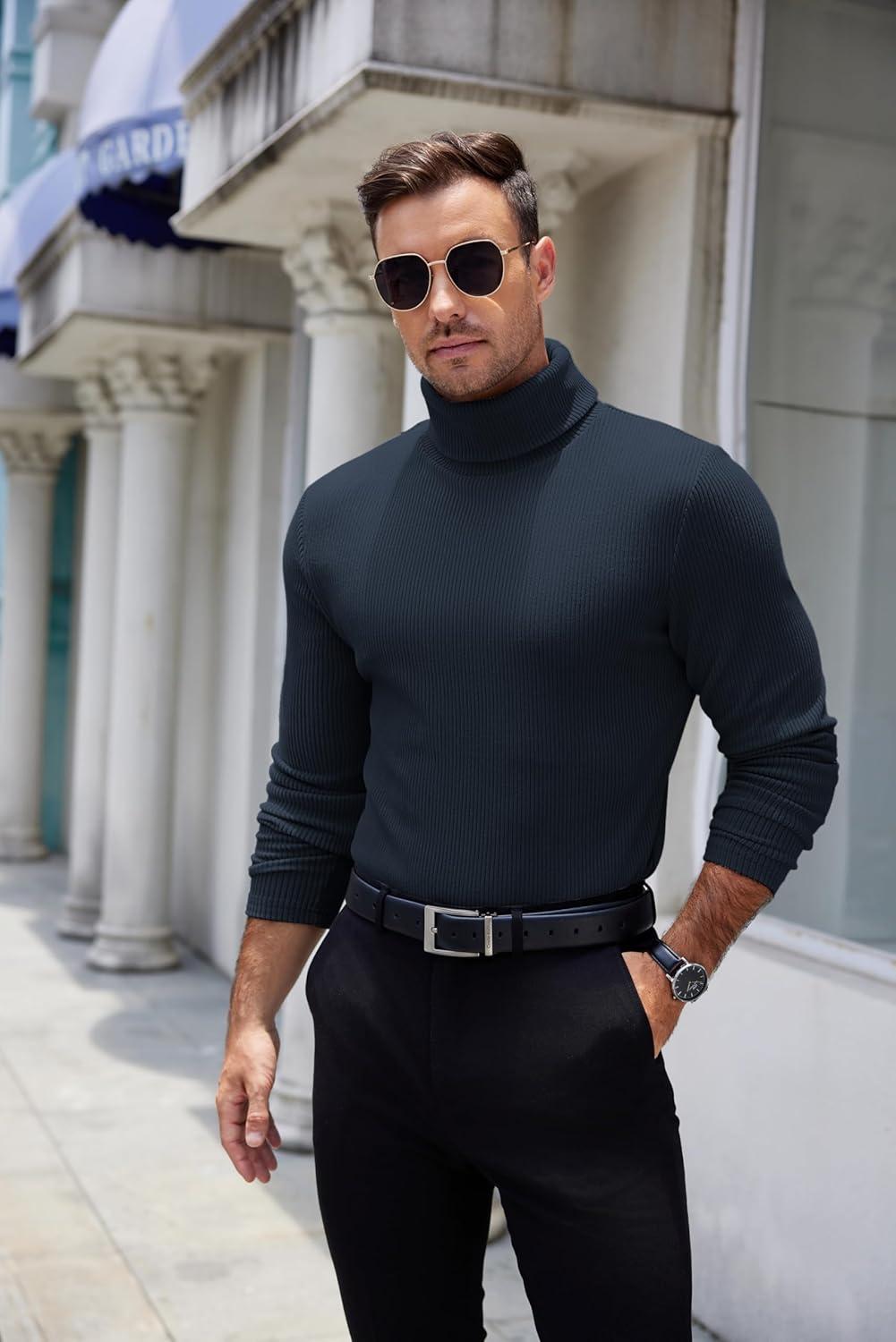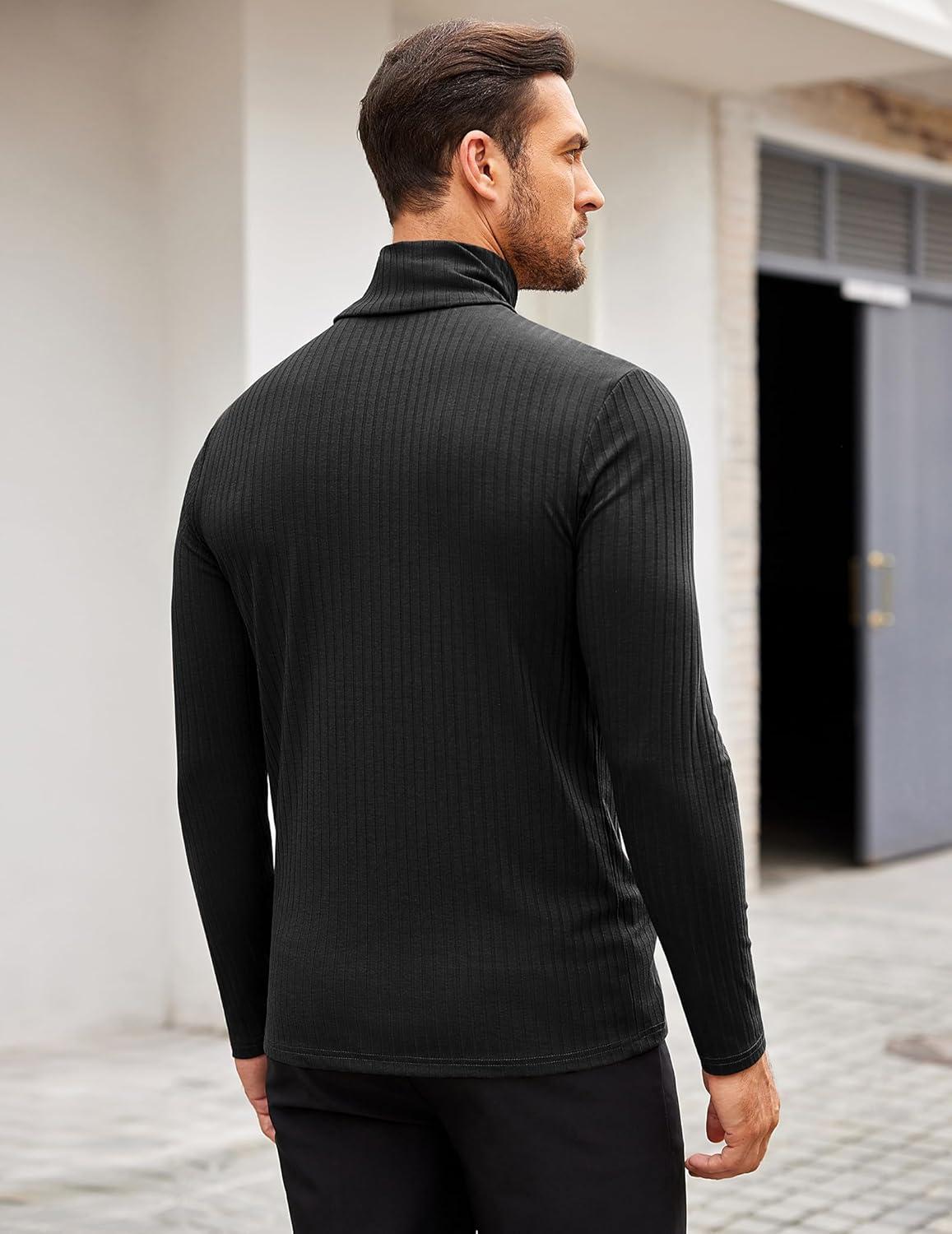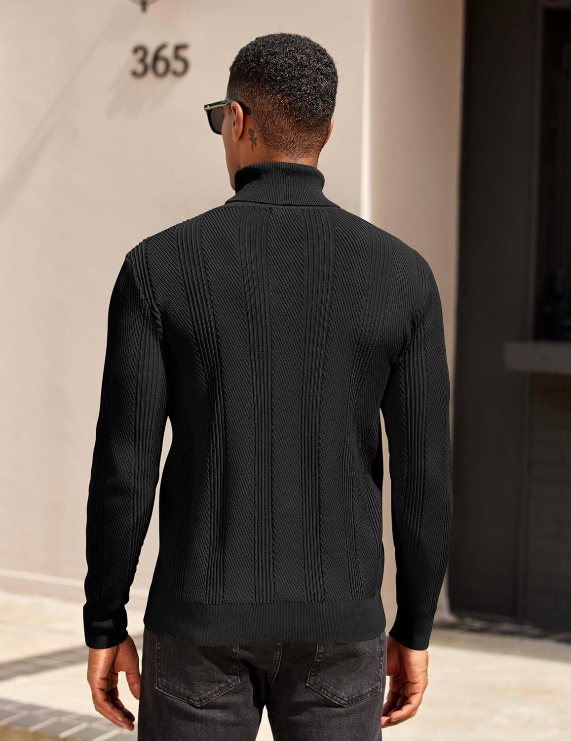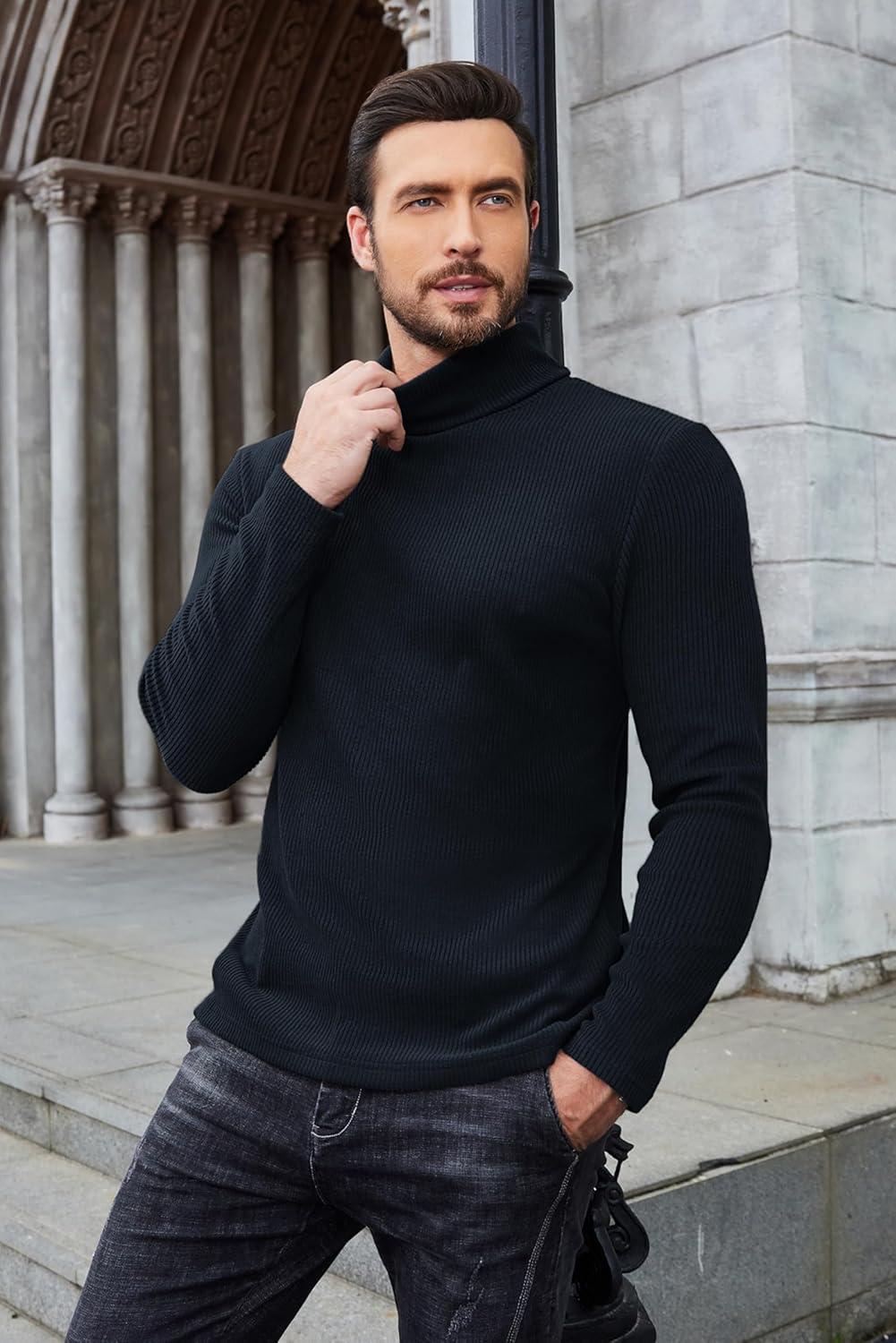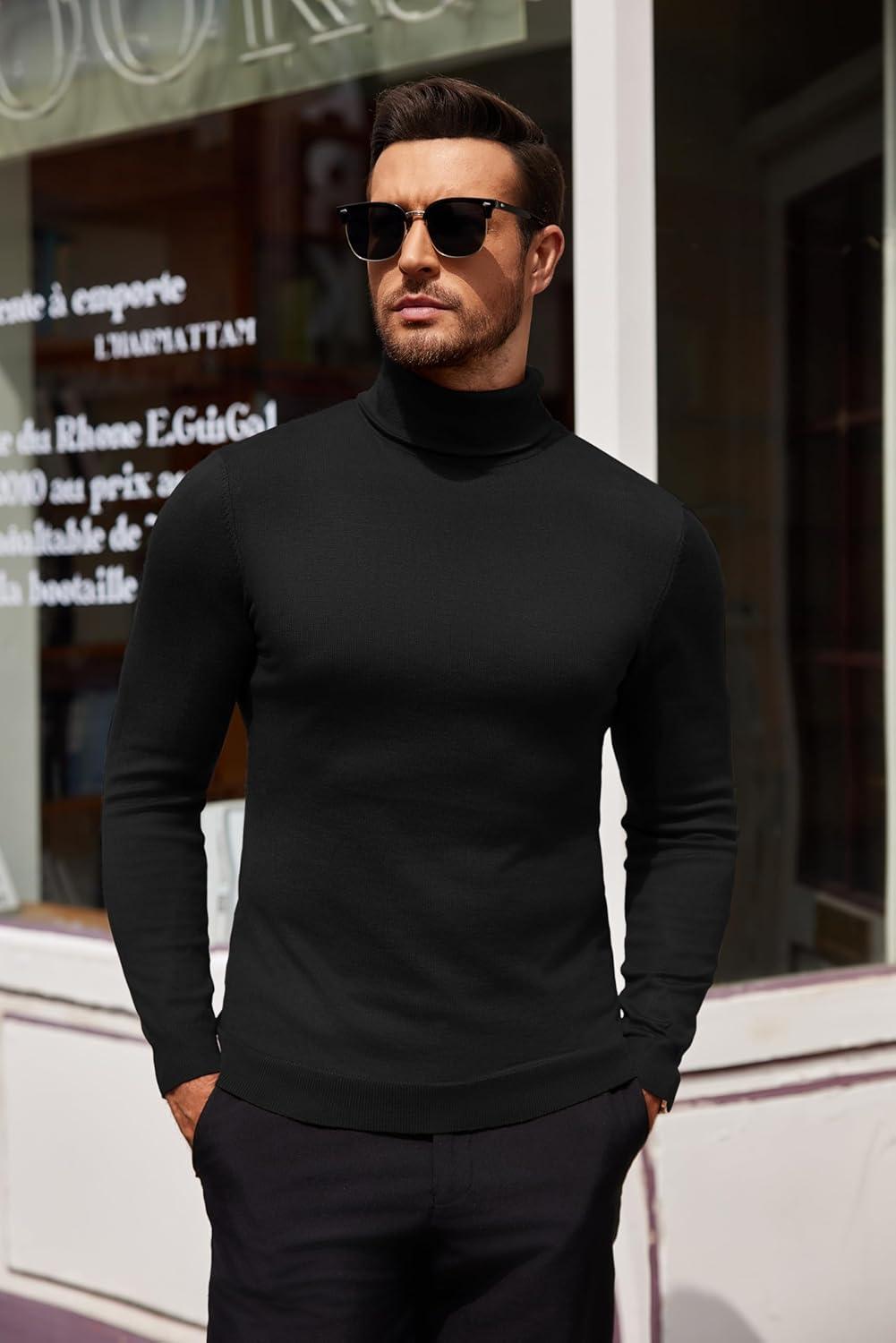 COOFANDY Men’s Turtleneck Sweater Slim Fit Lightweight Basic Ribbed Sweaters(01-black)