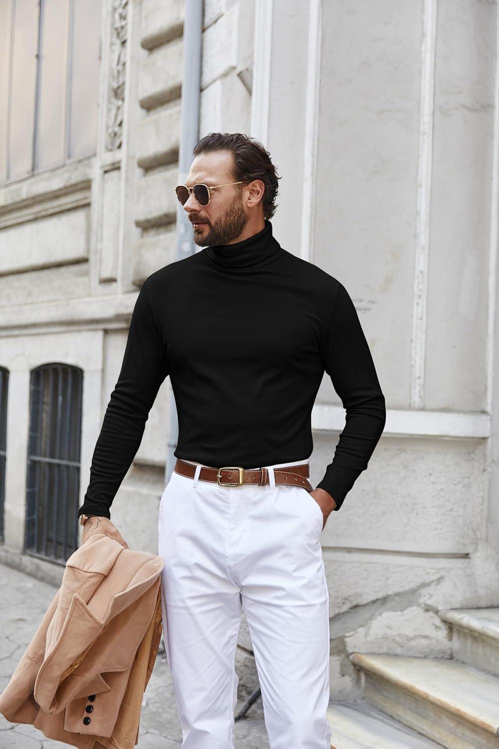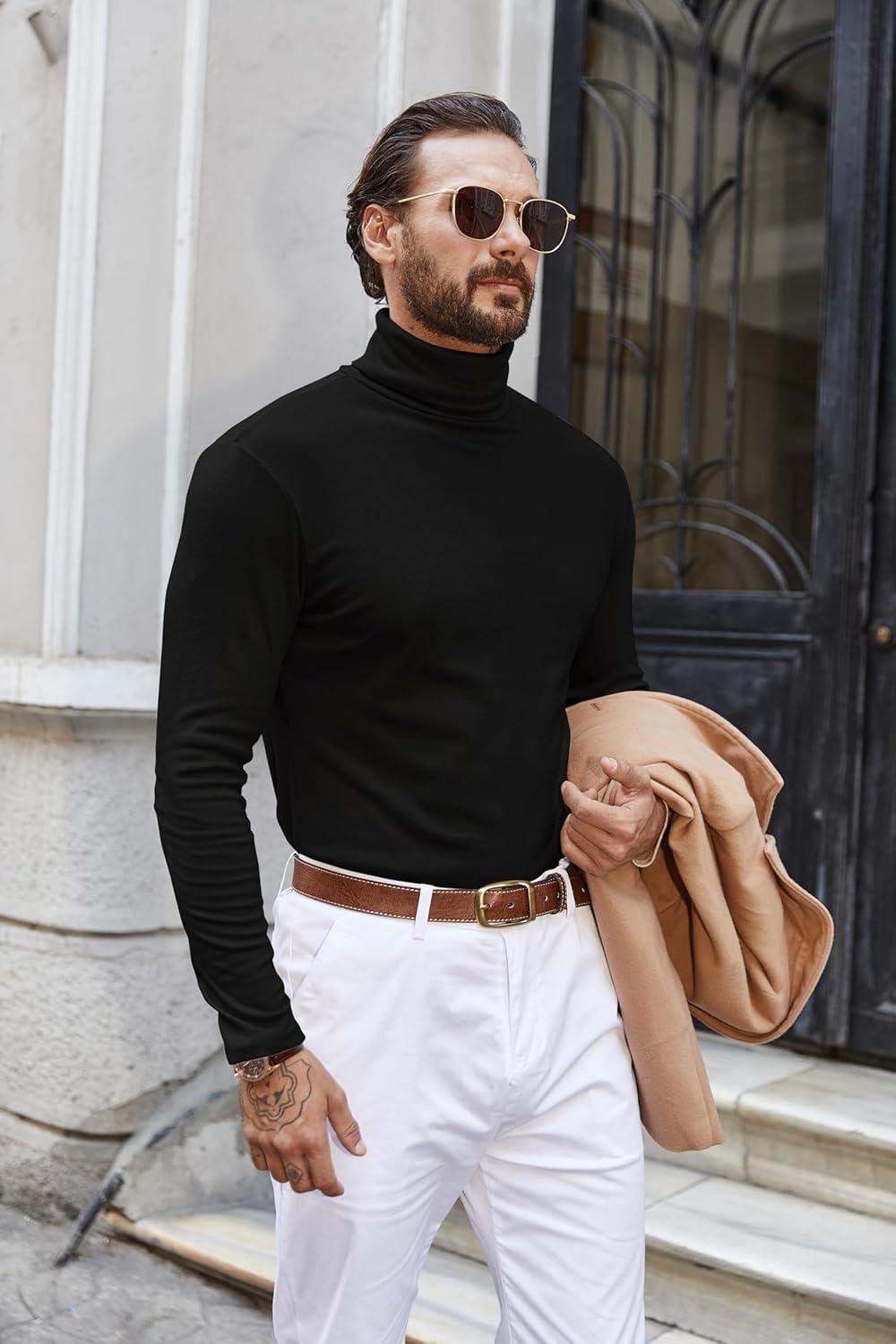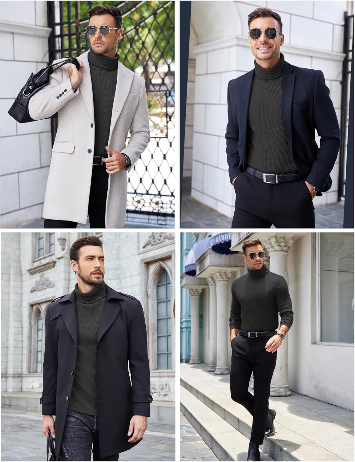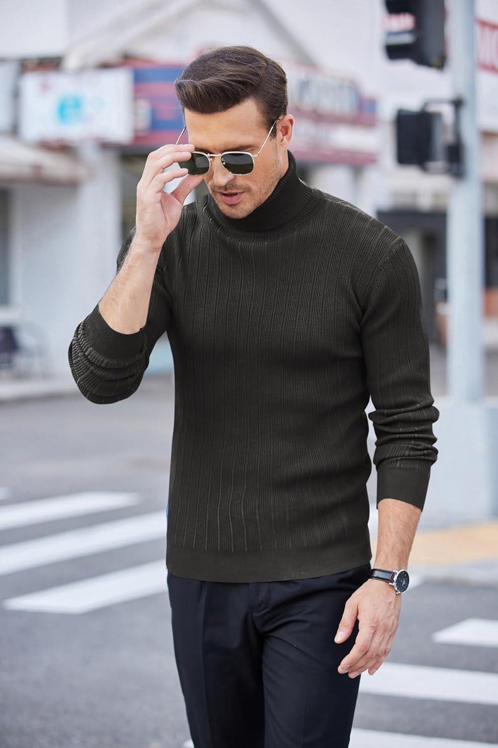 COOFANDY Men’s Turtleneck Sweater Slim Fit Lightweight Basic Ribbed Sweaters(01-black)