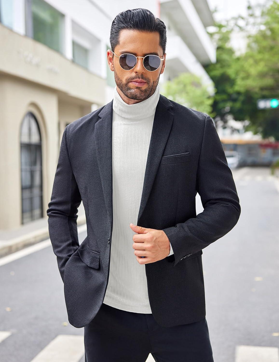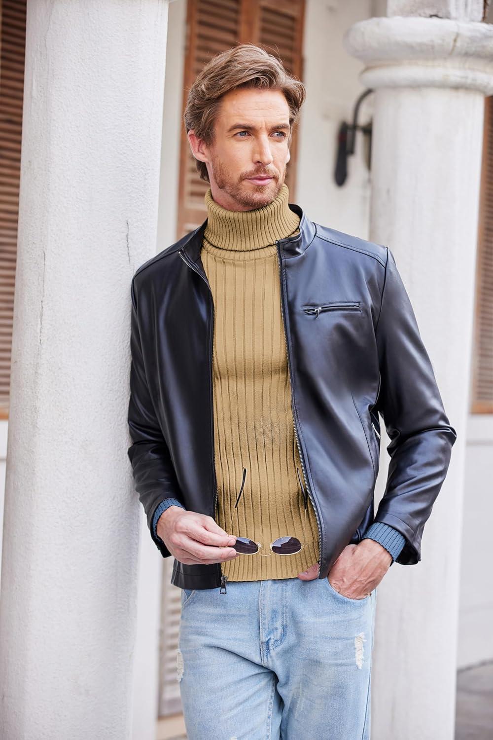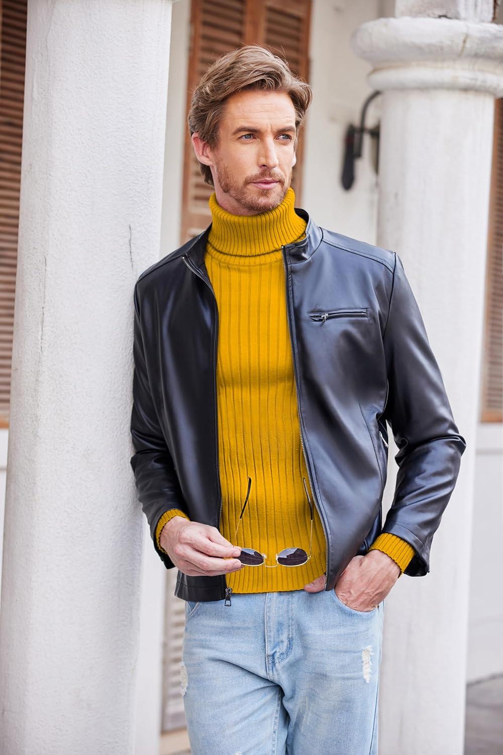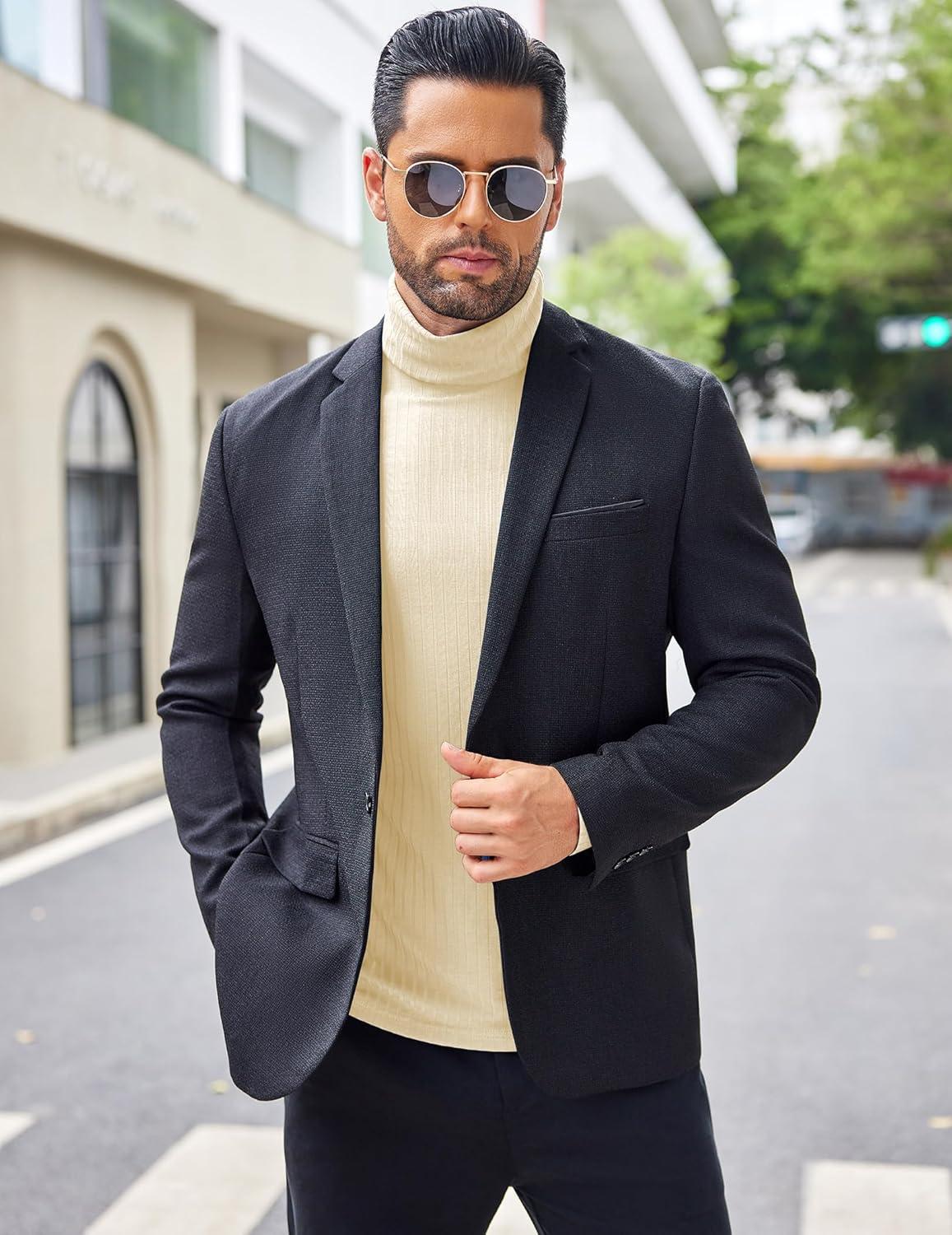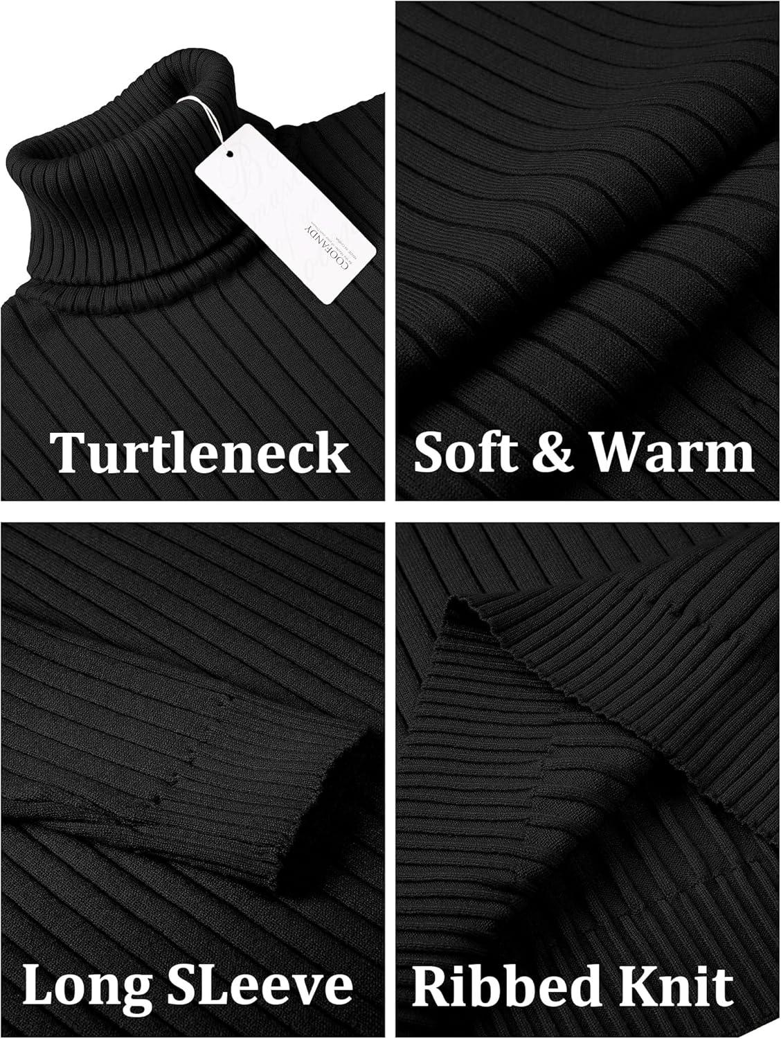 COOFANDY Men’s Turtleneck Sweater Slim Fit Lightweight Basic Ribbed Sweaters(01-black)