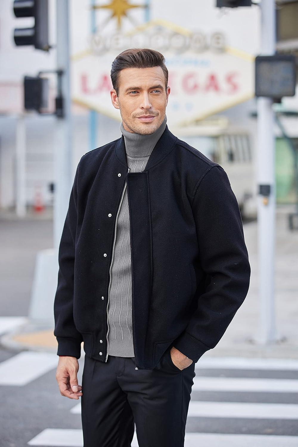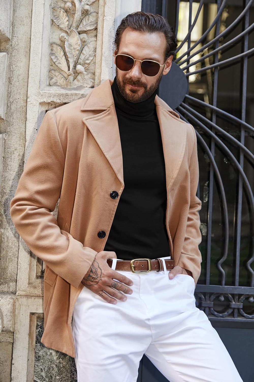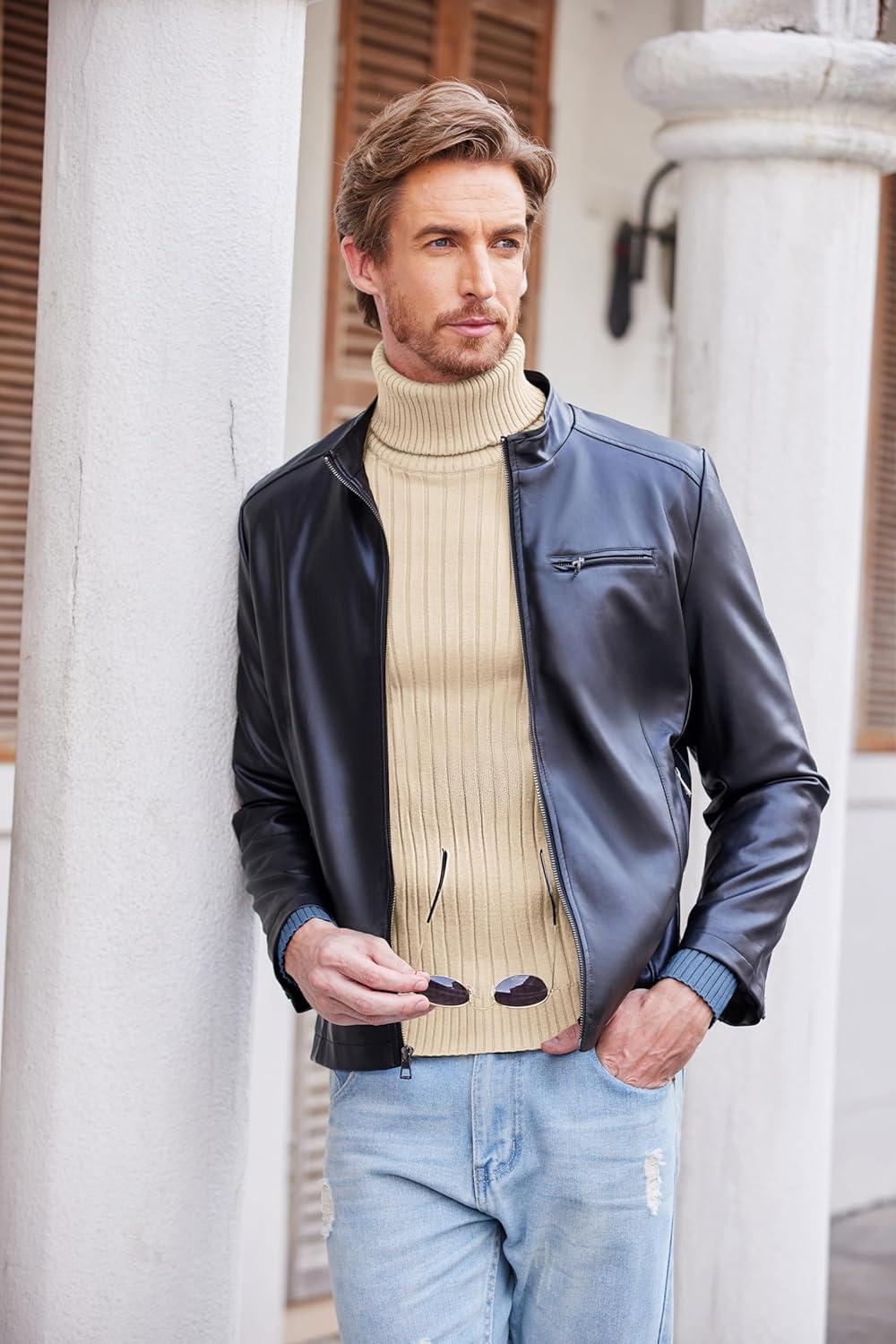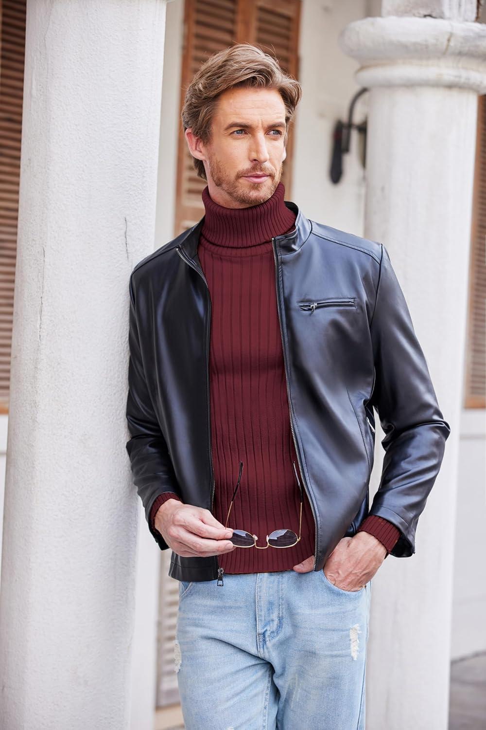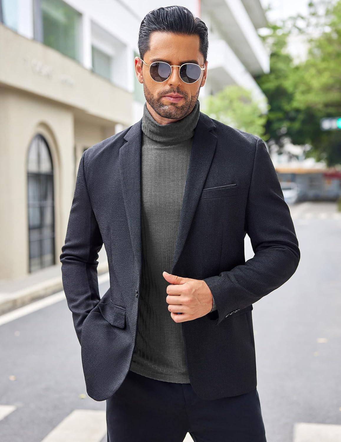 COOFANDY Men’s Turtleneck Sweater Slim Fit Lightweight Basic Ribbed Sweaters(01-black)