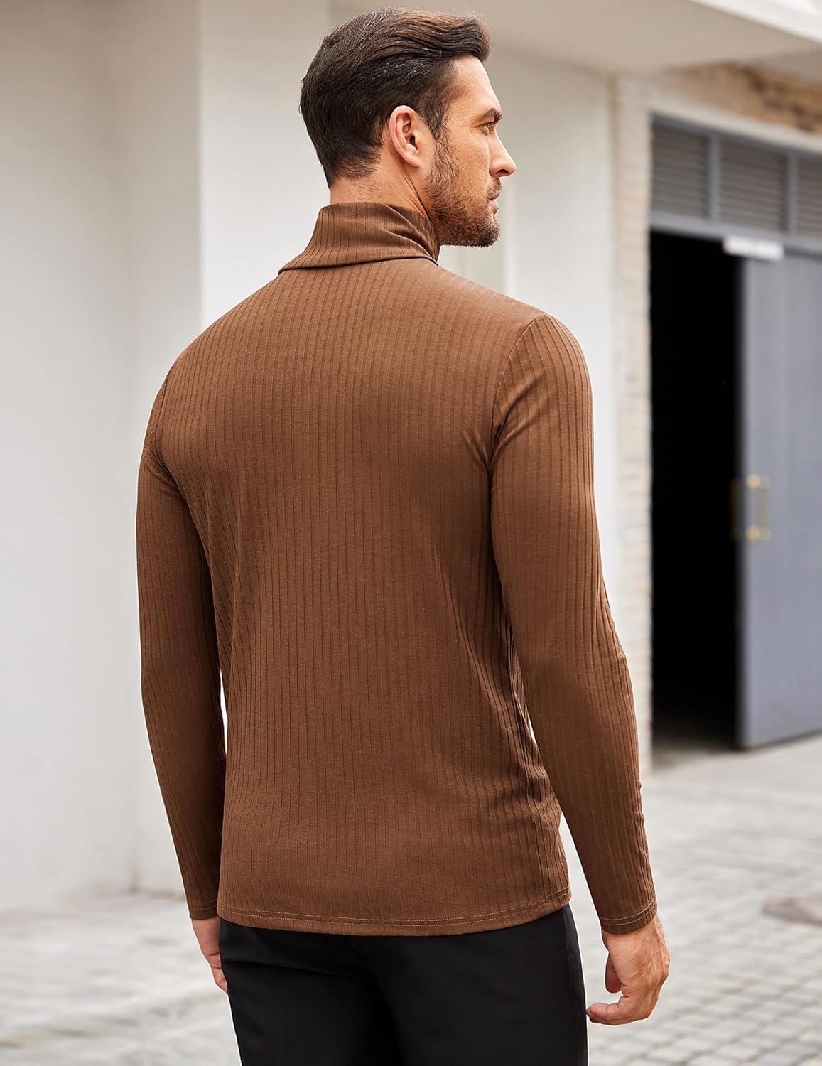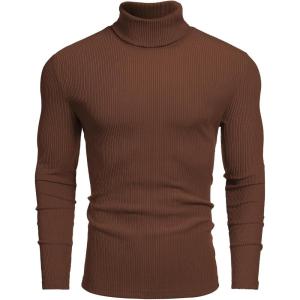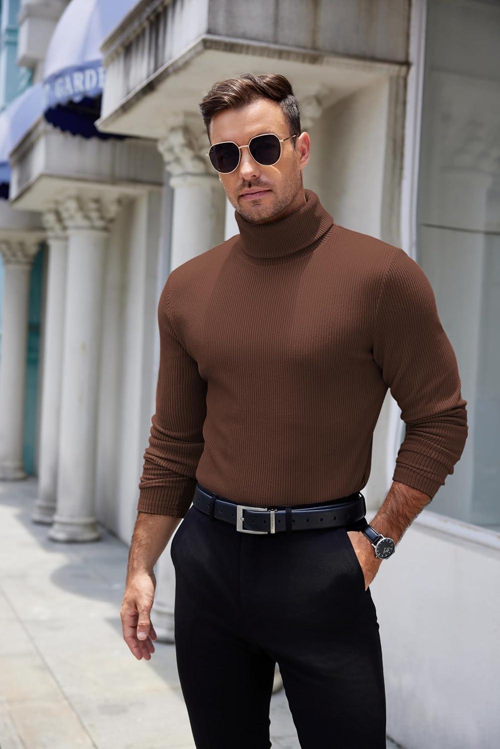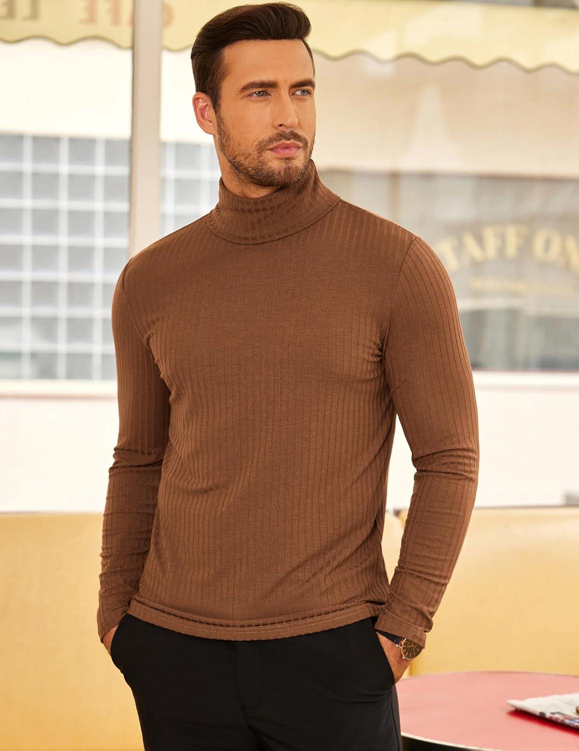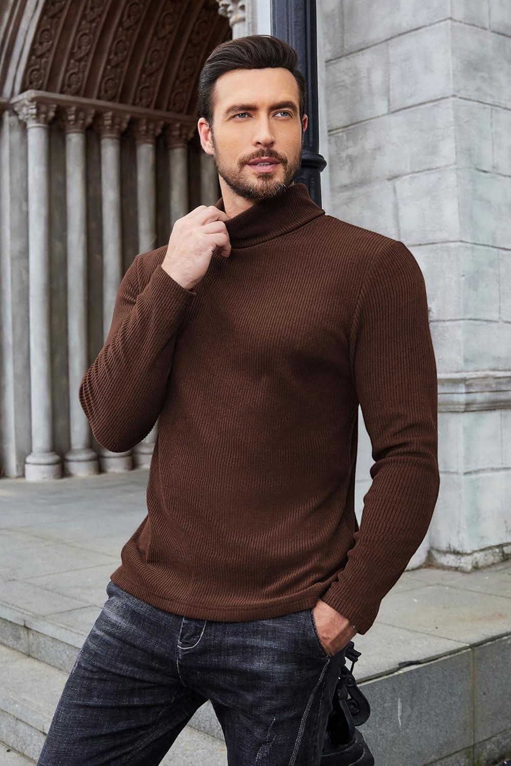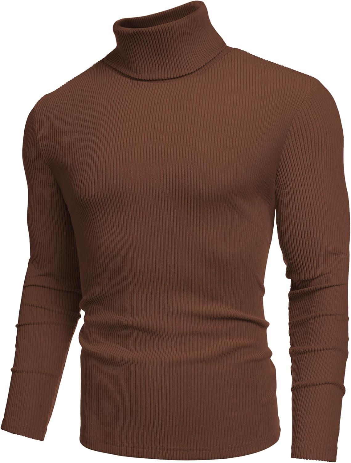 COOFANDY Men’s Turtleneck Sweater Slim Fit Lightweight Basic Ribbed Sweaters(Brown)