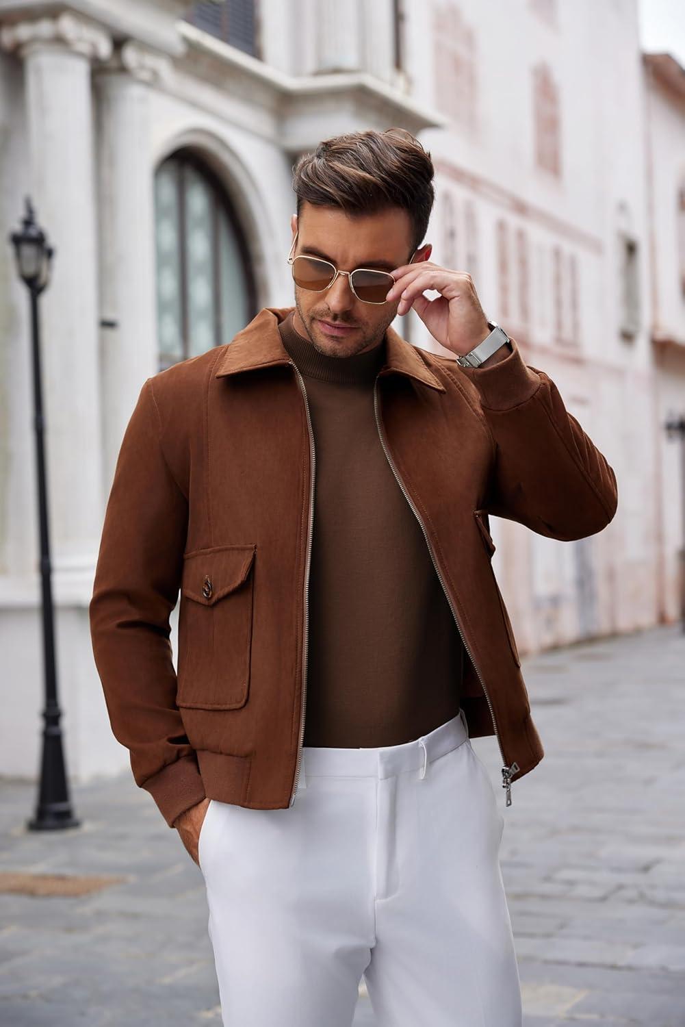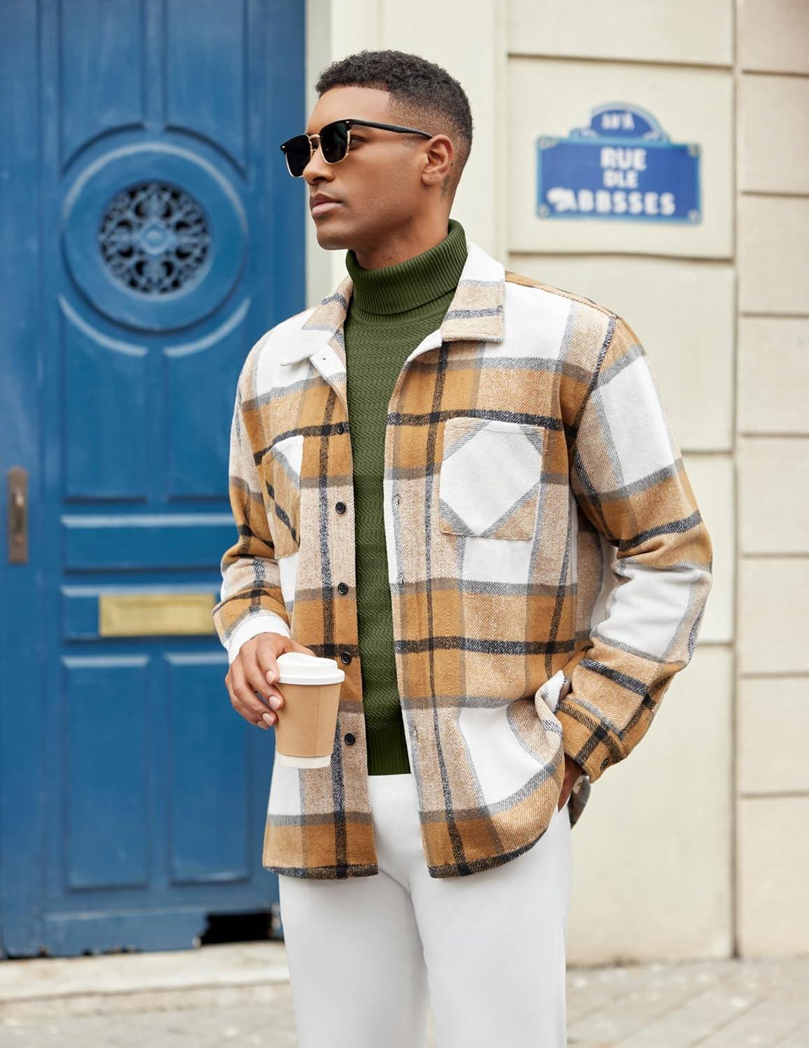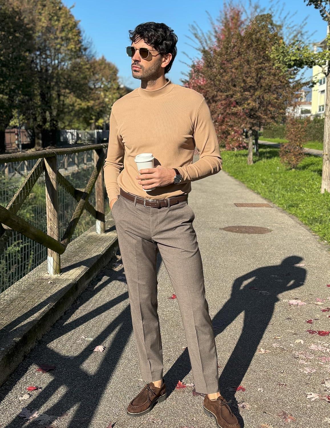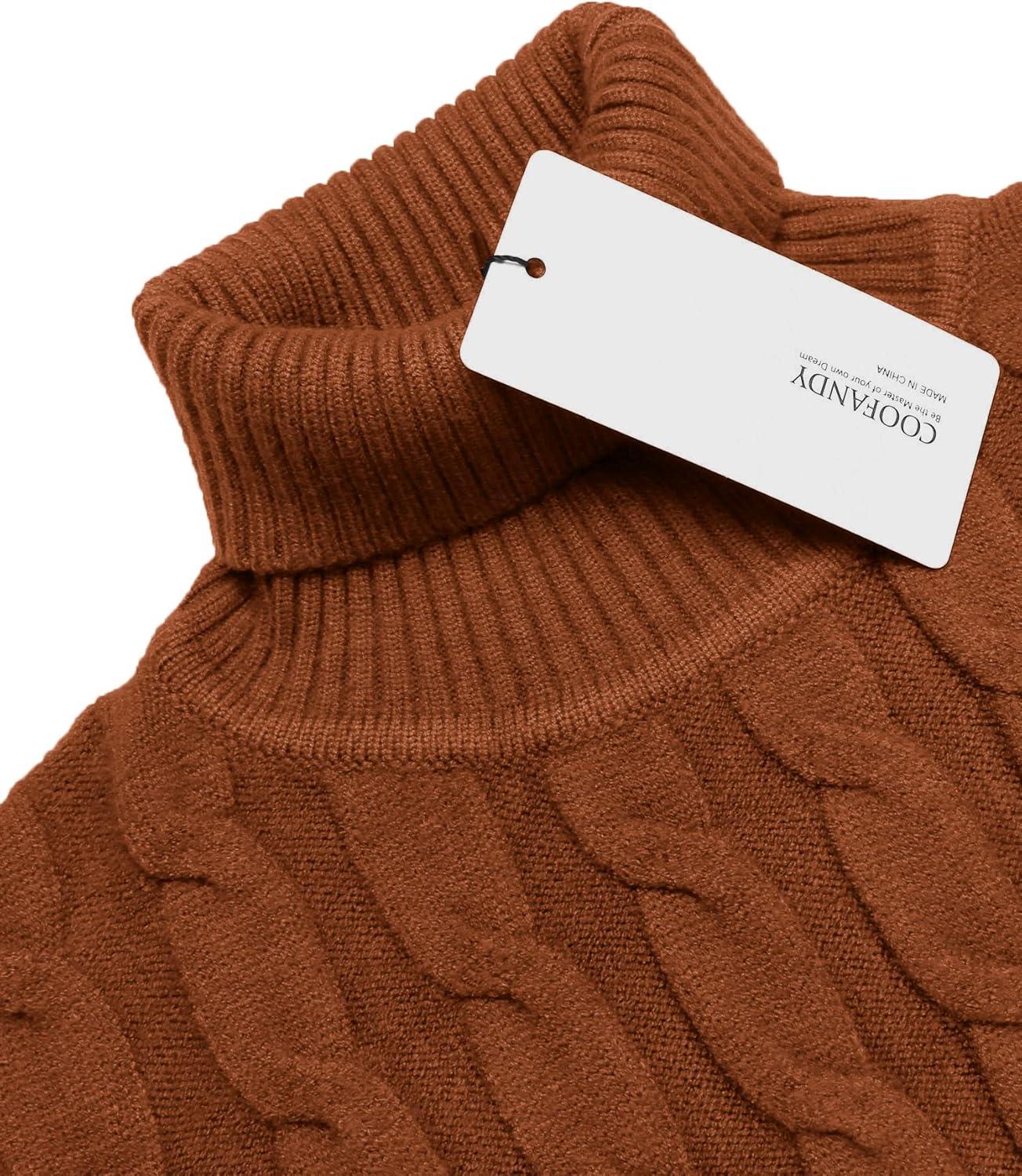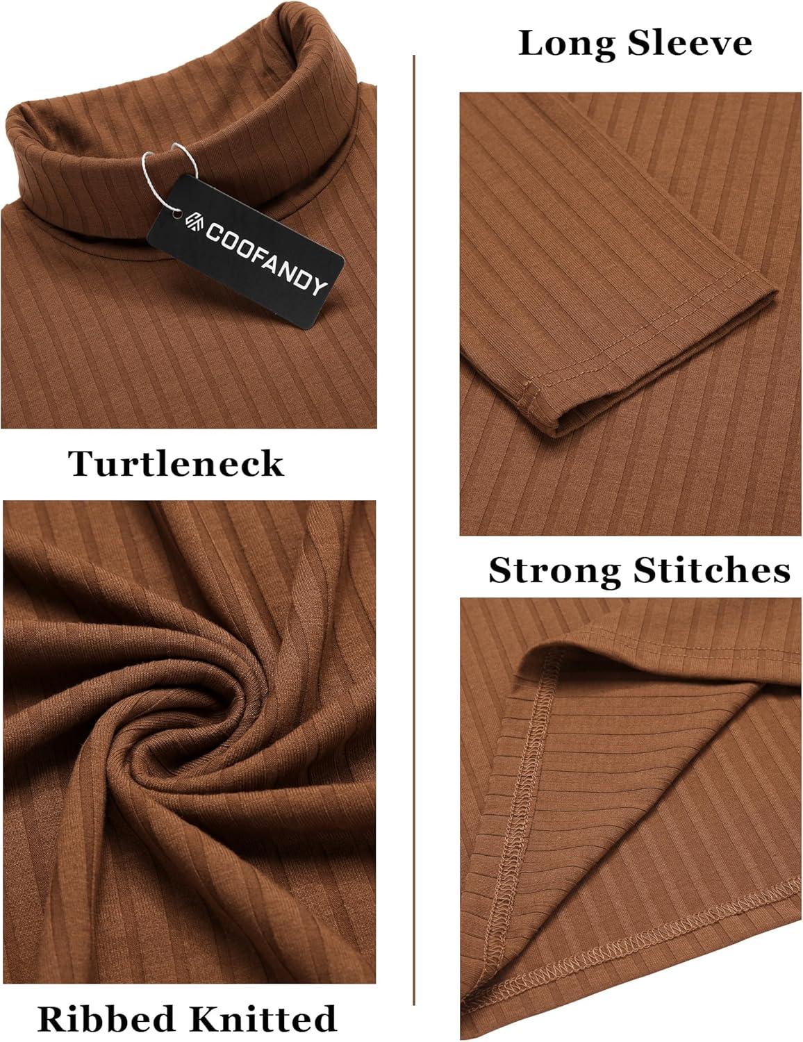 COOFANDY Men’s Turtleneck Sweater Slim Fit Lightweight Basic Ribbed Sweaters(Brown)