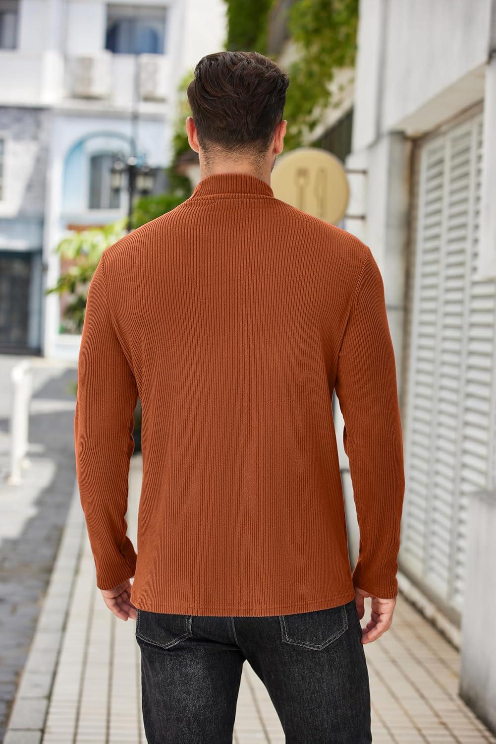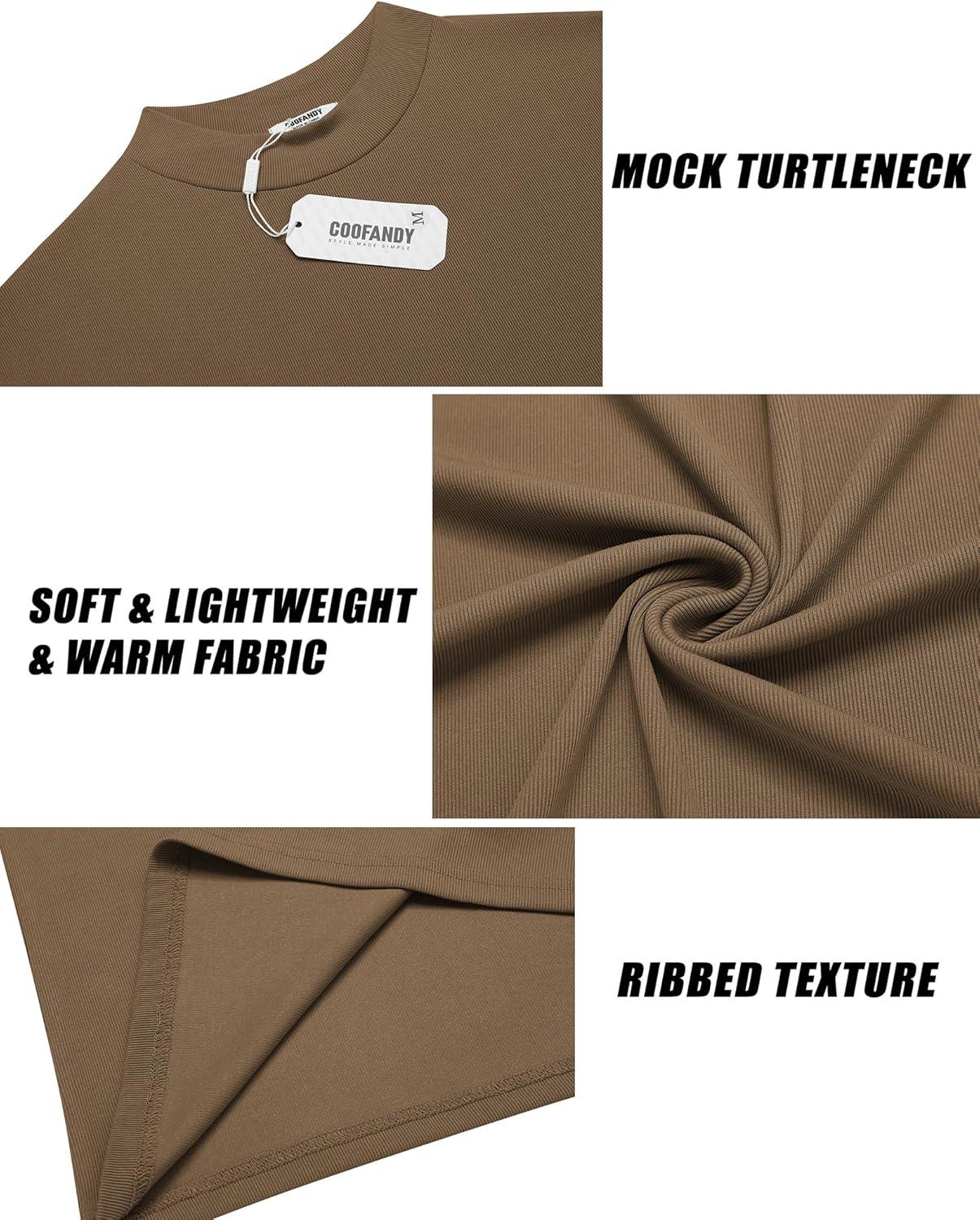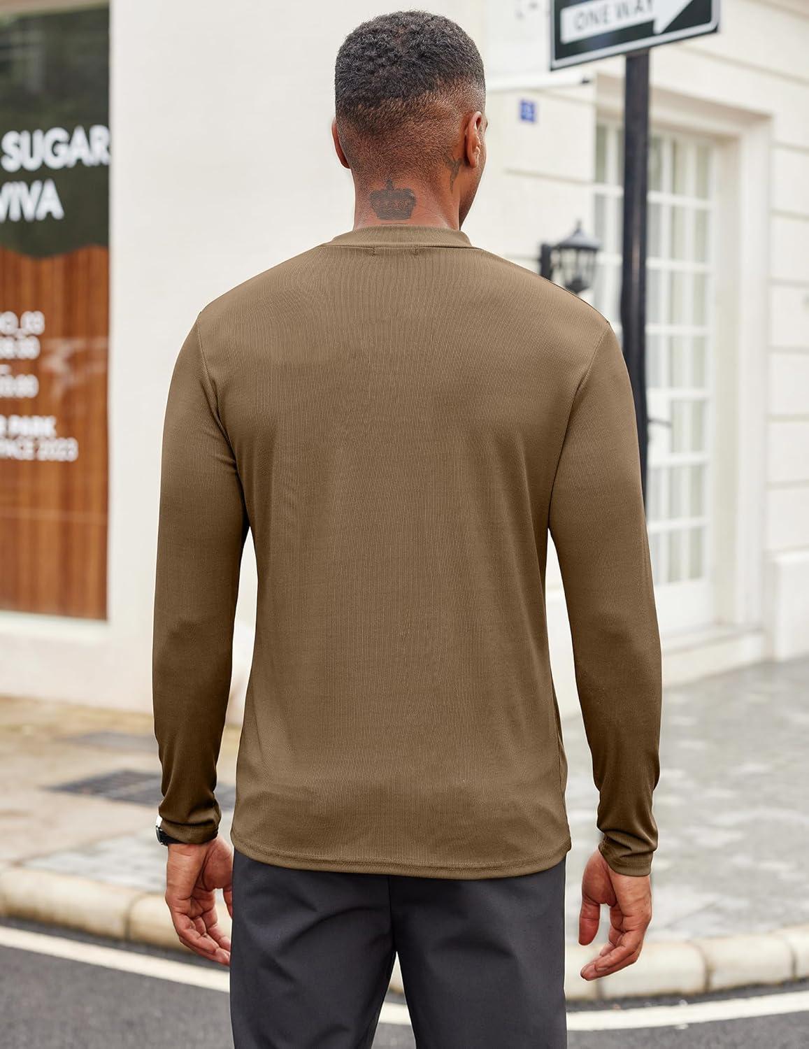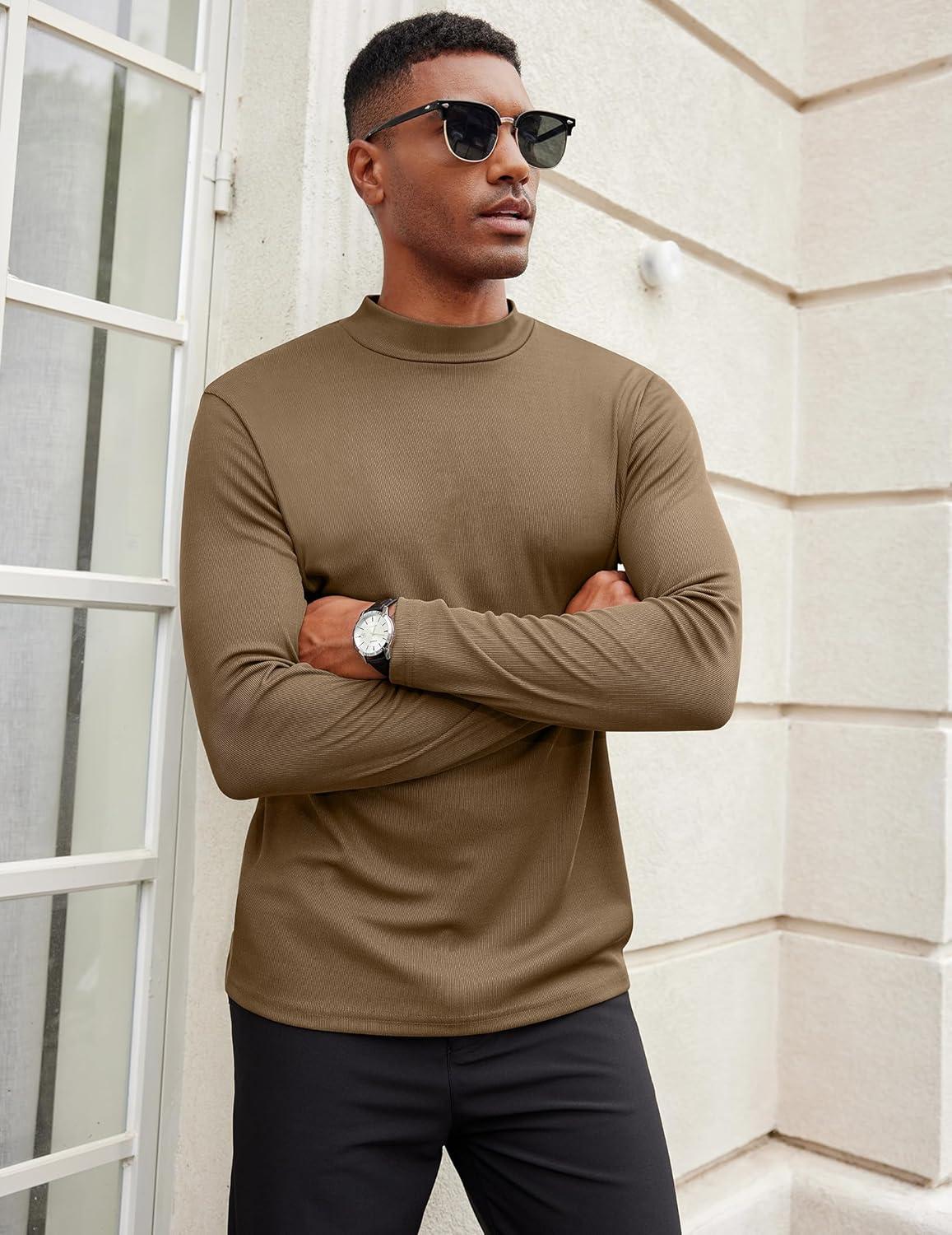 COOFANDY Men’s Mock Turtleneck Long Sleeve Shirts Slim Fit Basic T-Shirt Lightweight Ribbed Pullover Sweater(1 Pack-brown)