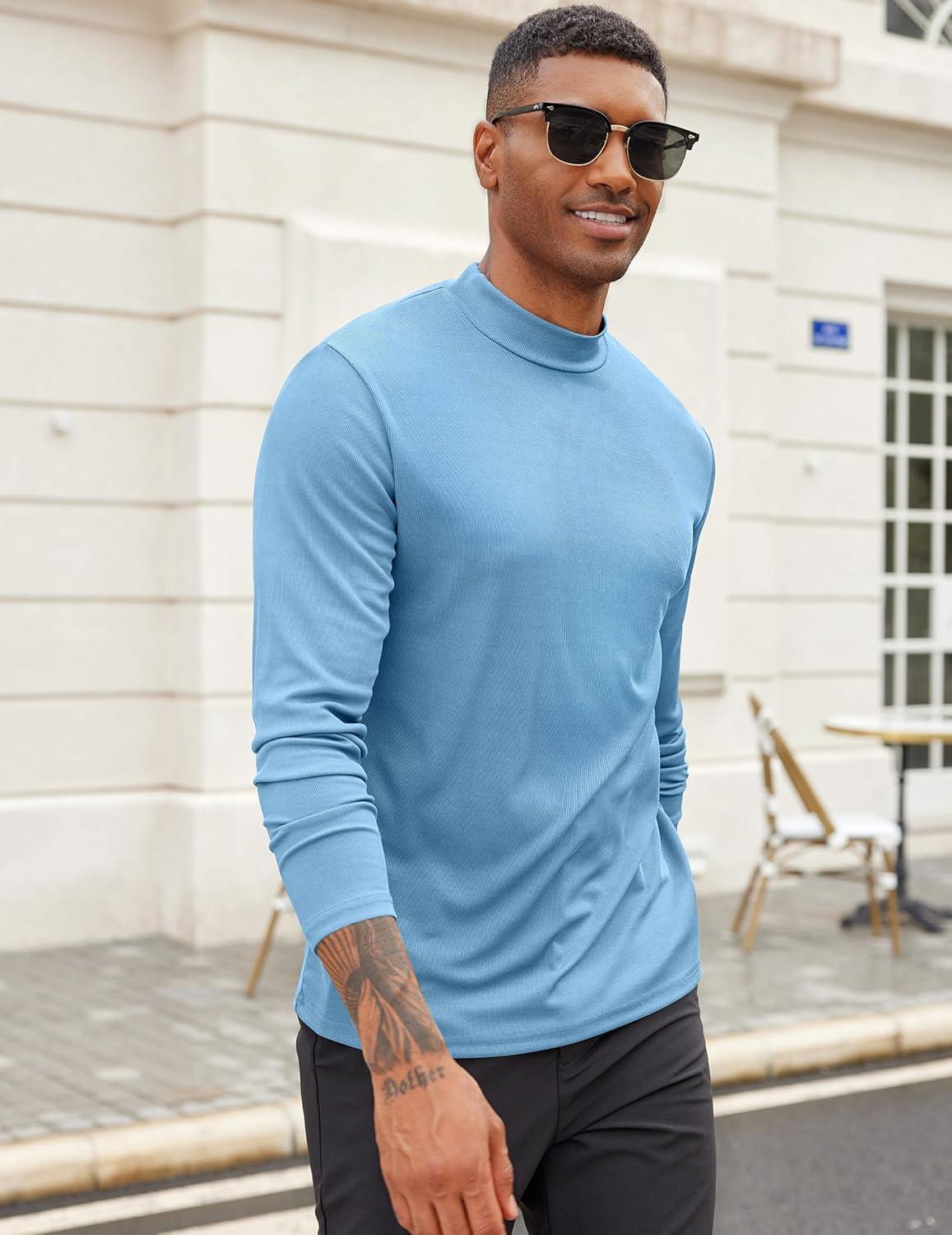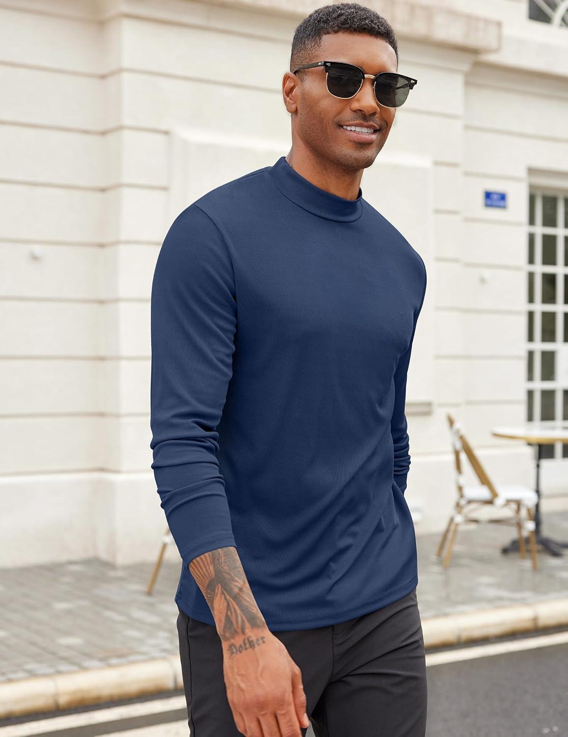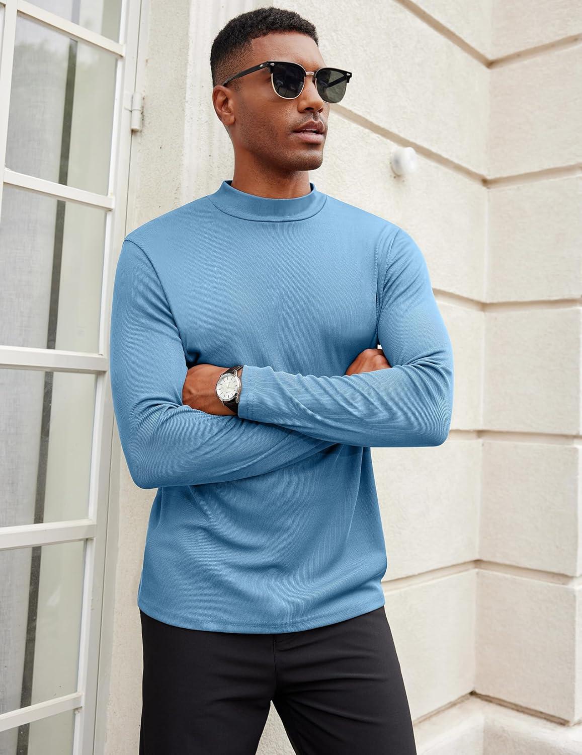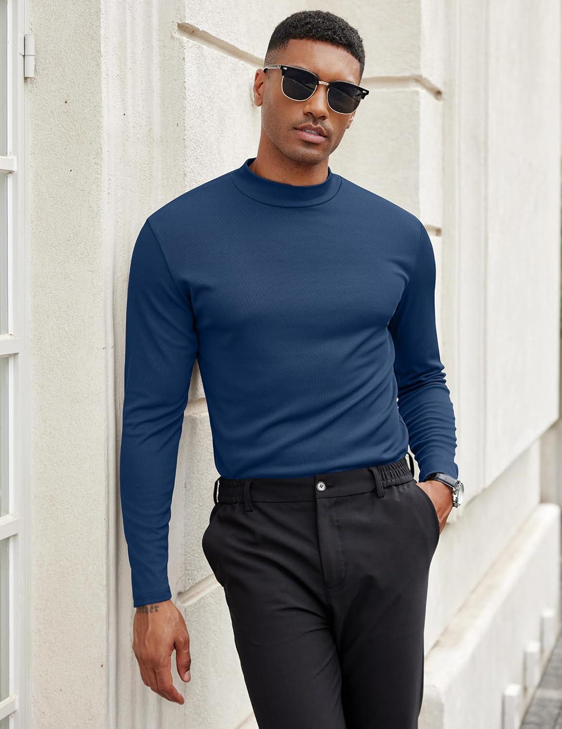 COOFANDY Men’s Mock Turtleneck Long Sleeve Shirts Slim Fit Basic T-Shirt Lightweight Ribbed Pullover Sweater(1 Pack-blue)