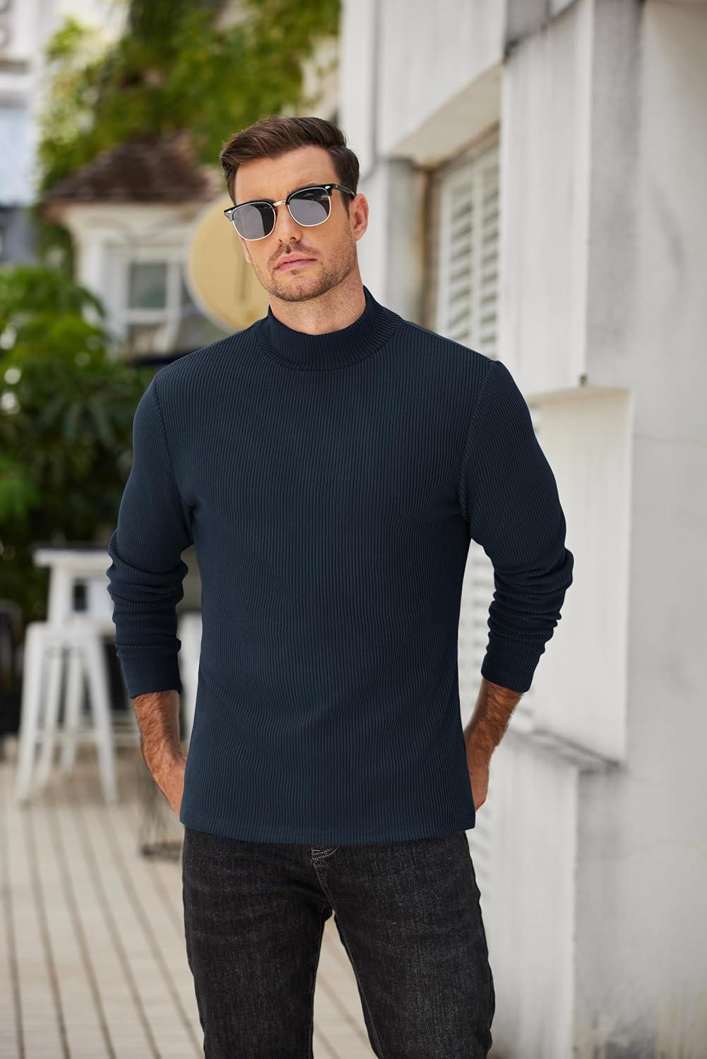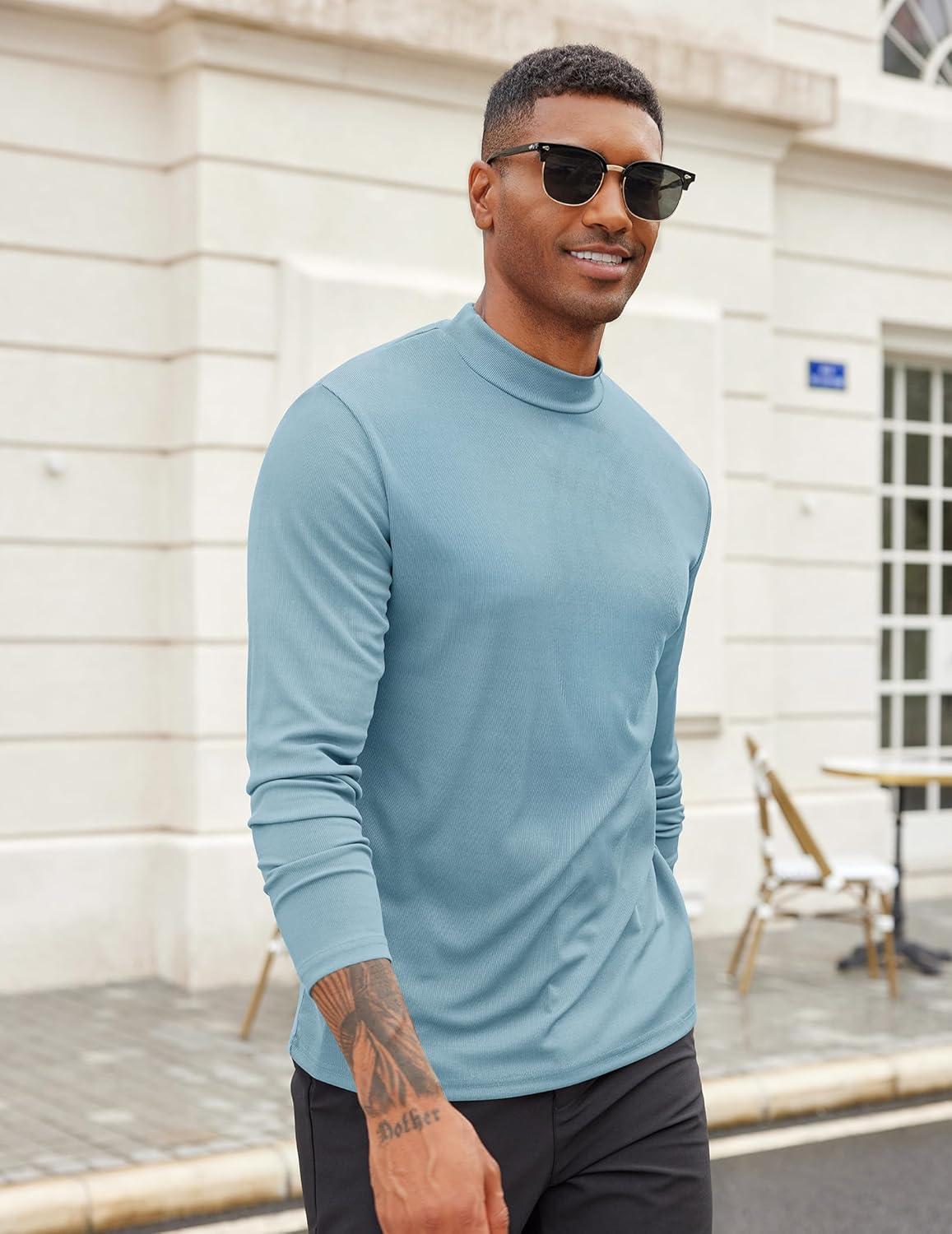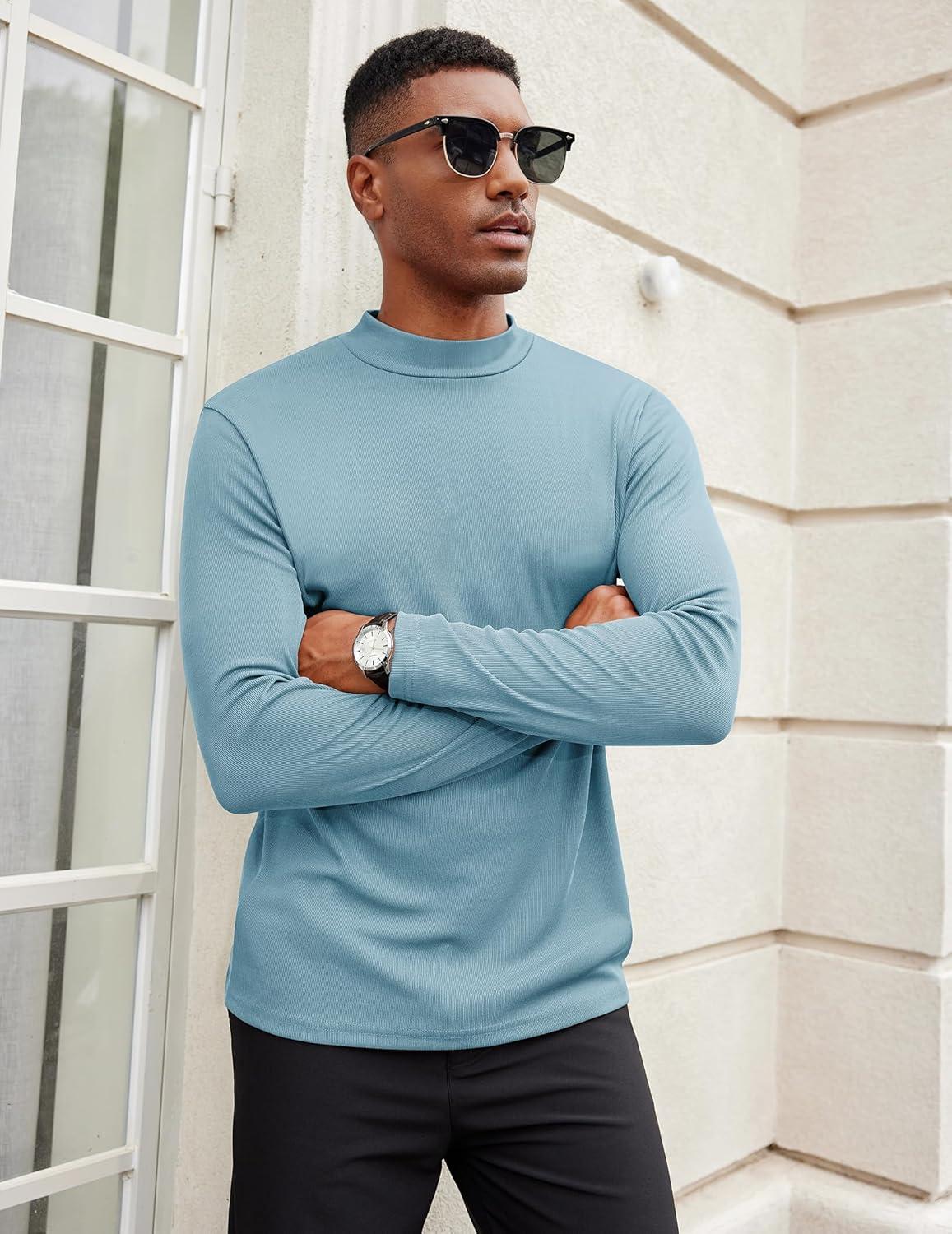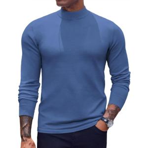 COOFANDY Men’s Mock Turtleneck Long Sleeve Shirts Slim Fit Basic T-Shirt Lightweight Ribbed Pullover Sweater(1 Pack-blue)
