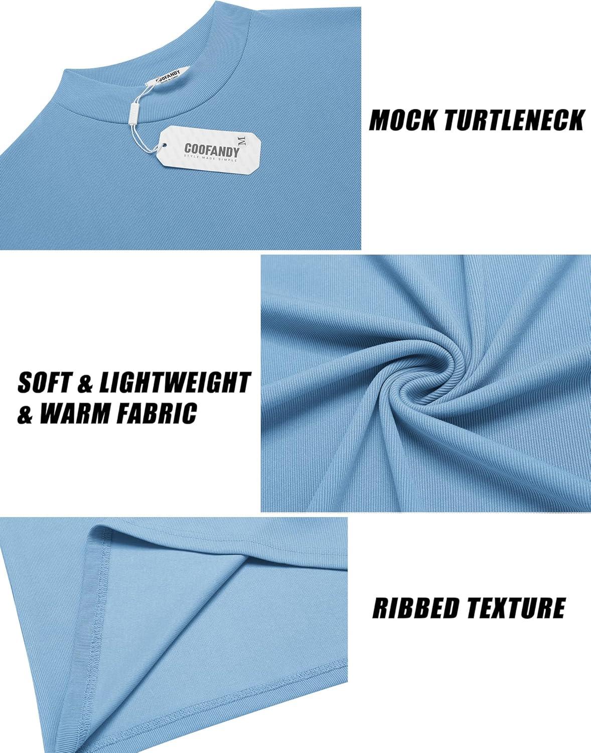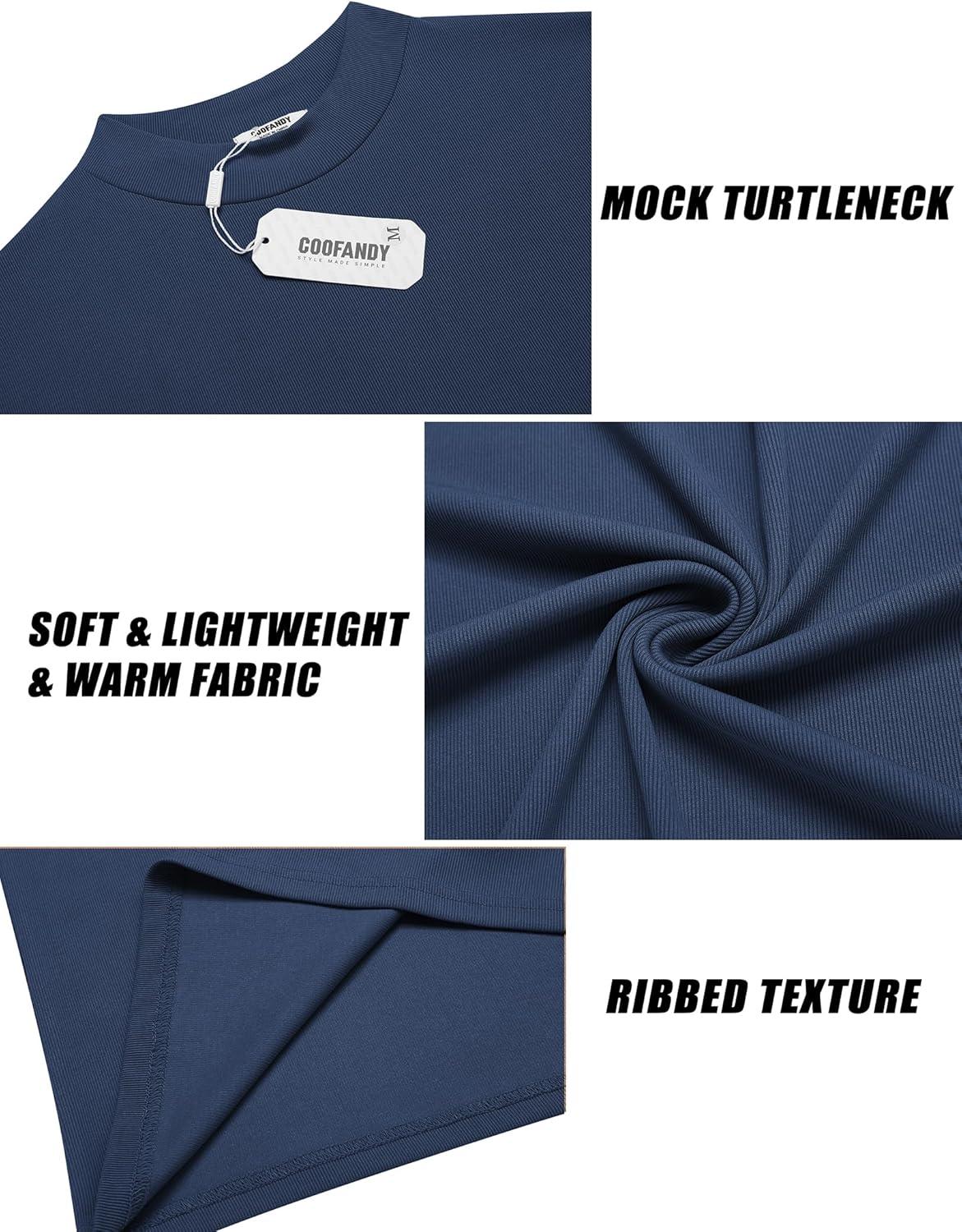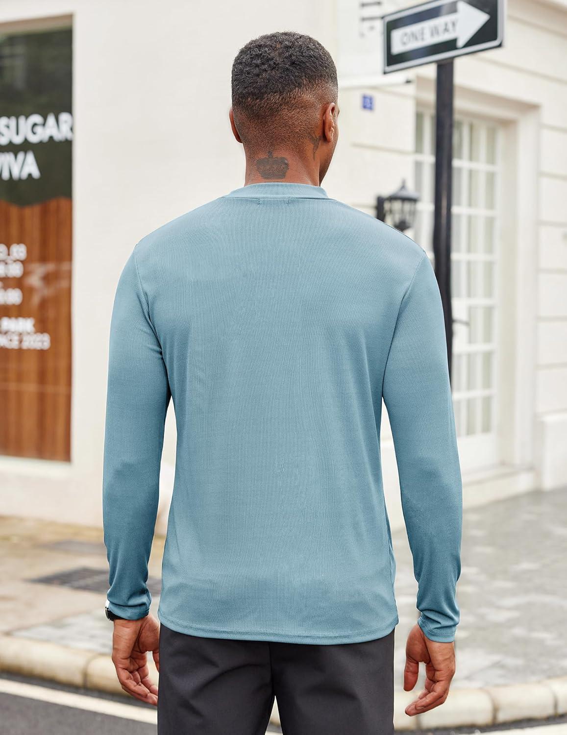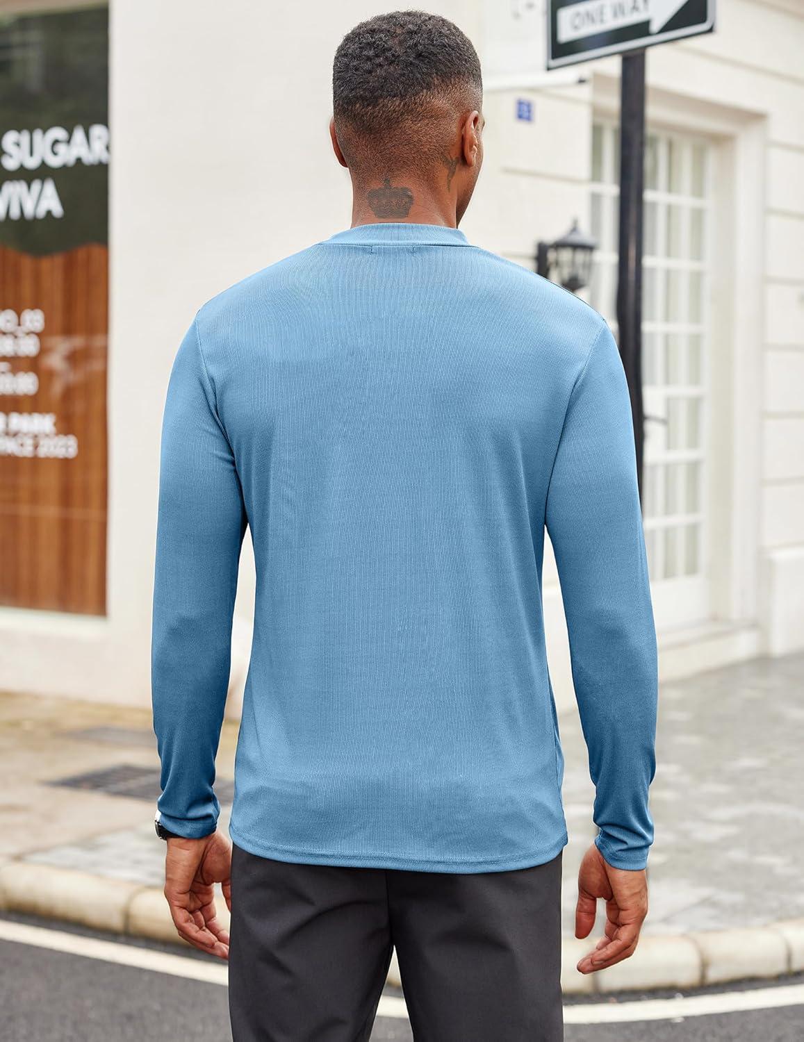 COOFANDY Men’s Mock Turtleneck Long Sleeve Shirts Slim Fit Basic T-Shirt Lightweight Ribbed Pullover Sweater(1 Pack-blue)