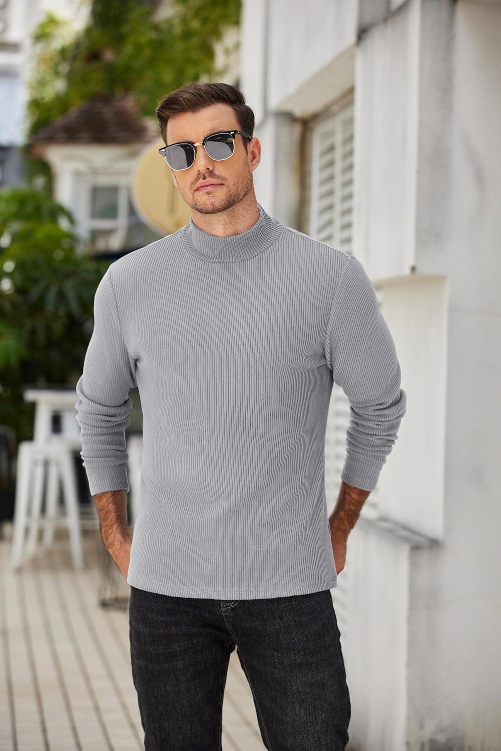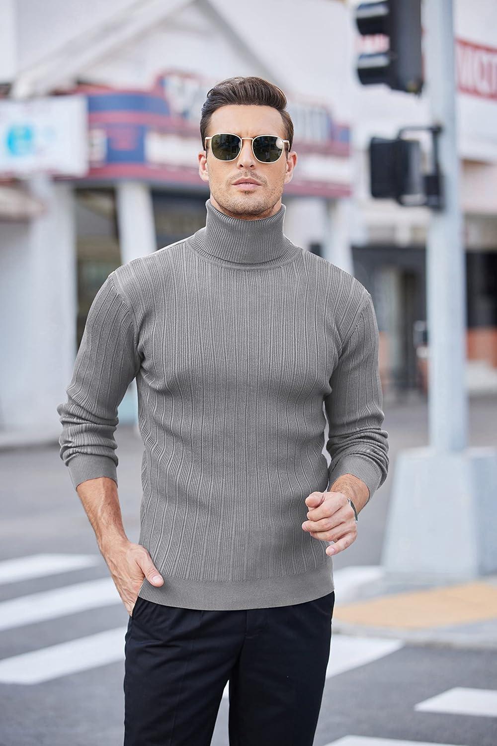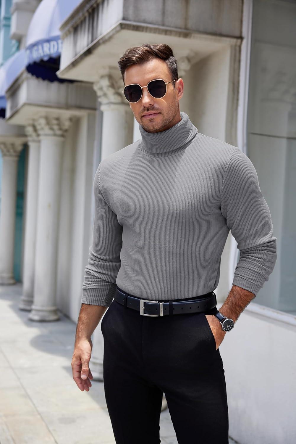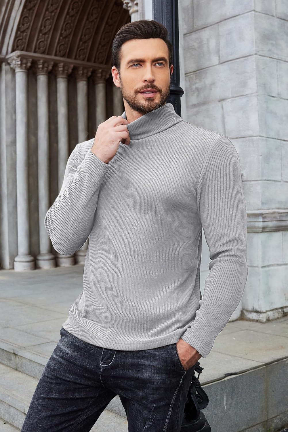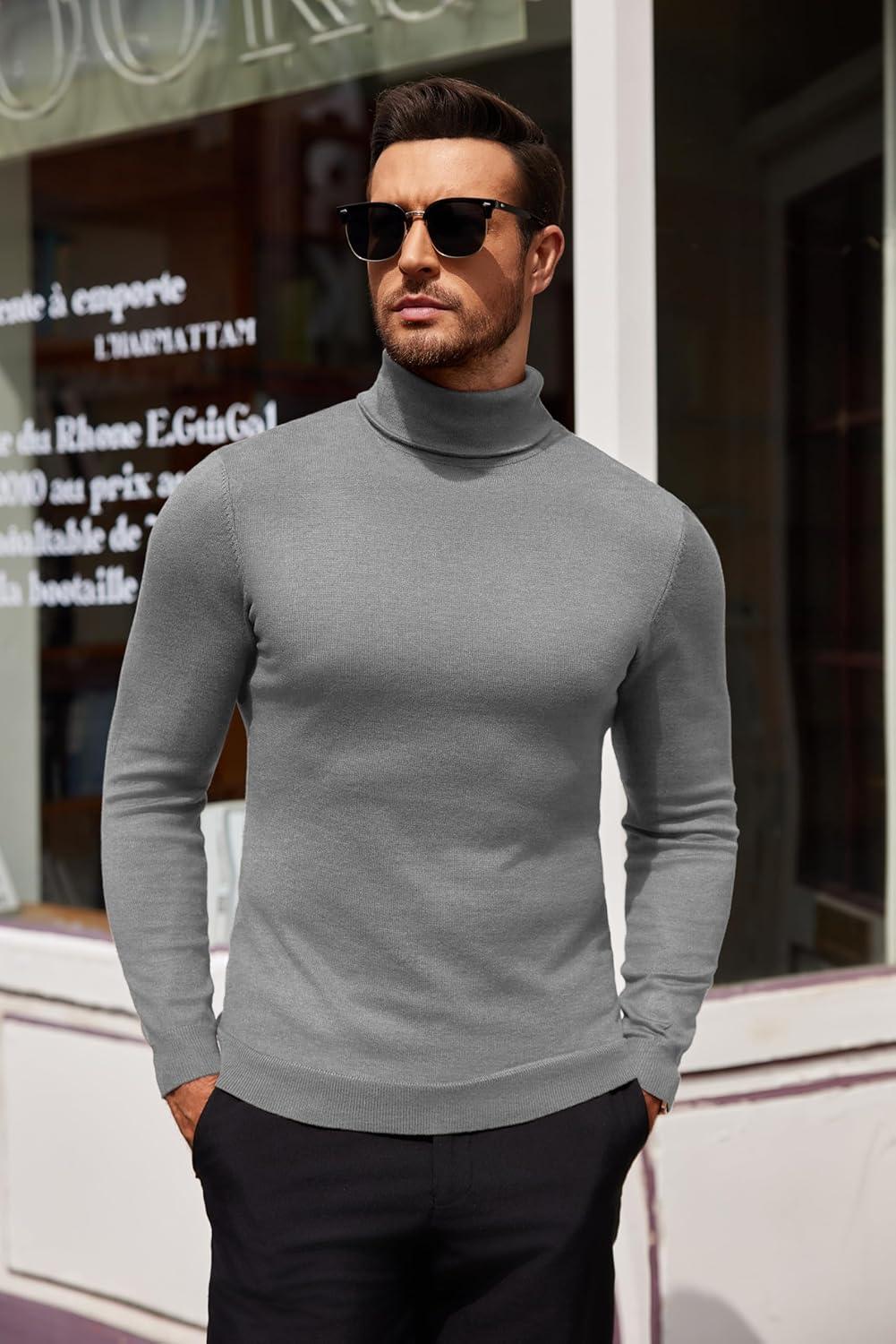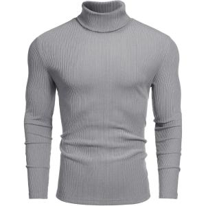 COOFANDY Men’s Slim Fit Turtleneck Sweater Casual Pullover Sweater Lightweight Ribbed Sweater(01_gray)